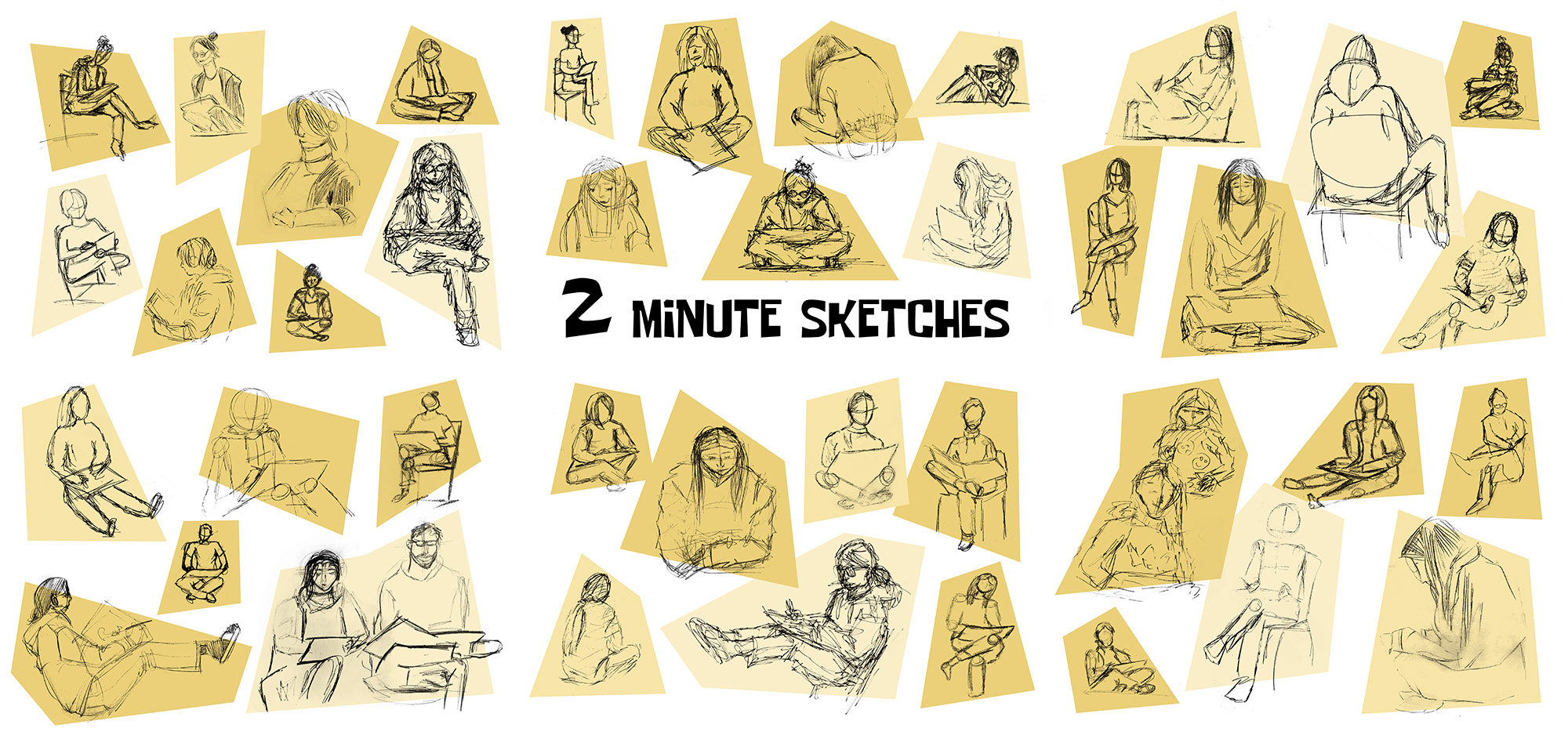 Nach eingehendem Studium der menschlichen Anatomie, stellten sich die Schülerinnen der 5C der Herausforderung Skizzen gegen die Uhr zu erstellen. Innerhalb von zwei Minuten sollte eine beliebige Klassenkameradin abgebildet werden, bevor es weiter mit der nächsten Figurdarstellung ging. Die gesammelten Ergebnisse dieser Schnellzeichen-Challenge präsentierten wir auf einem großen Plakat.