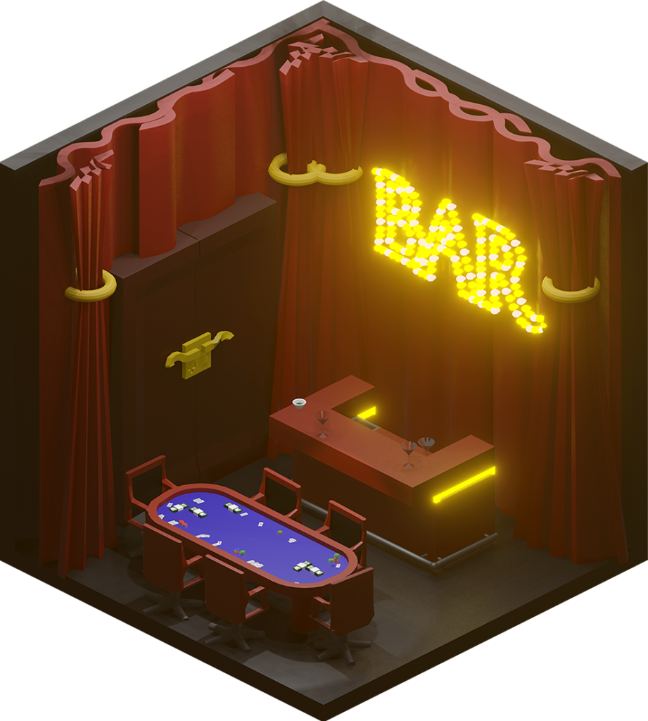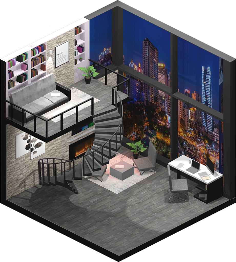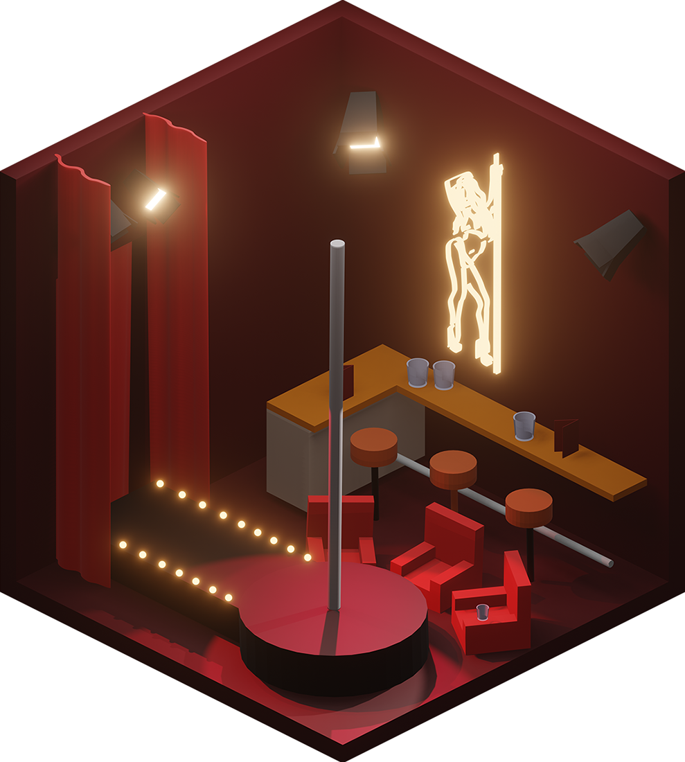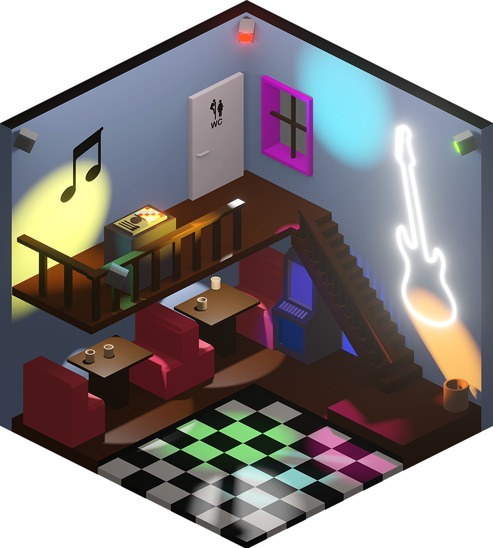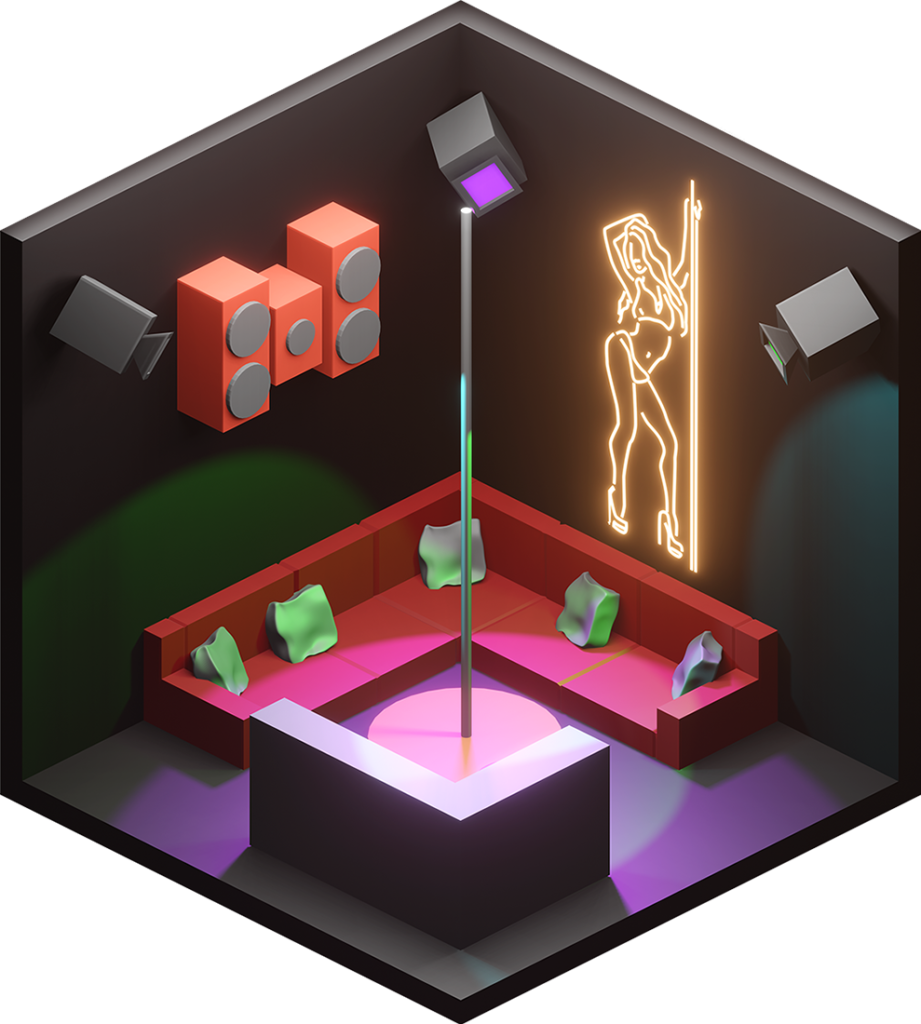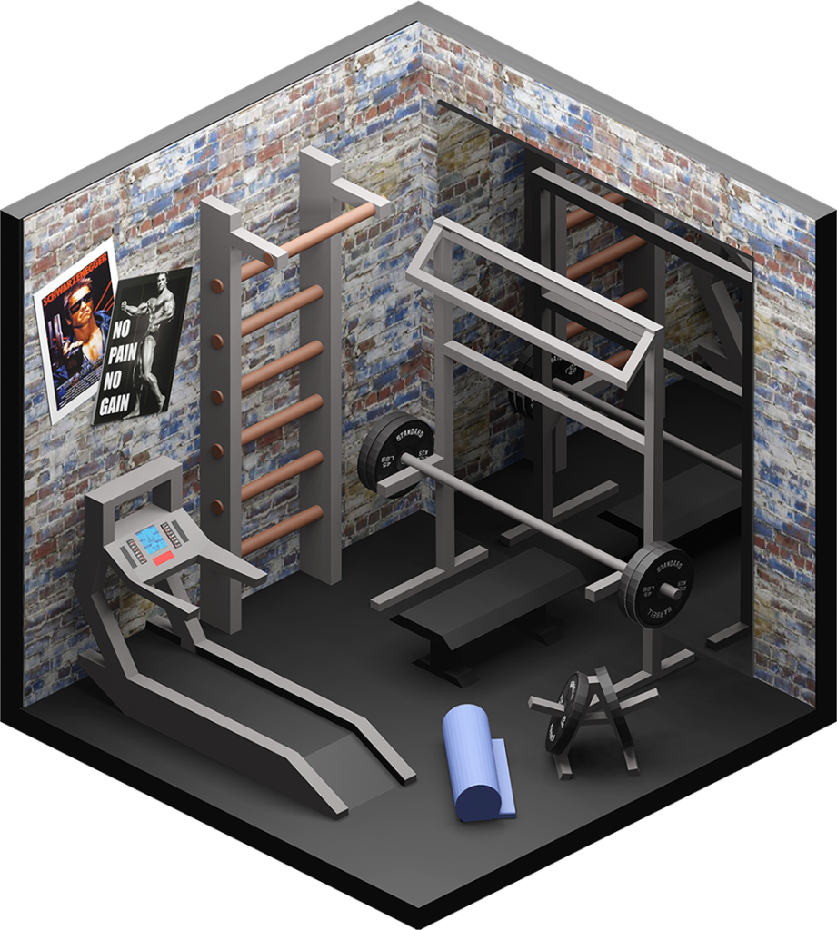 Inhaltlich kamen dabei viele unterschiedliche Ideen zum Vorschein, vom Fitnesscenter, über Bars und Cafés bis hin zur Sauna. Formal renderten wir die Ergebnisse in Parallelperspektive, wodurch einheitliche Hexagone entstanden, die wir wie Bienenwaben an der Wand arrangieren konnten.