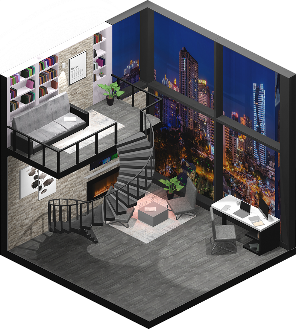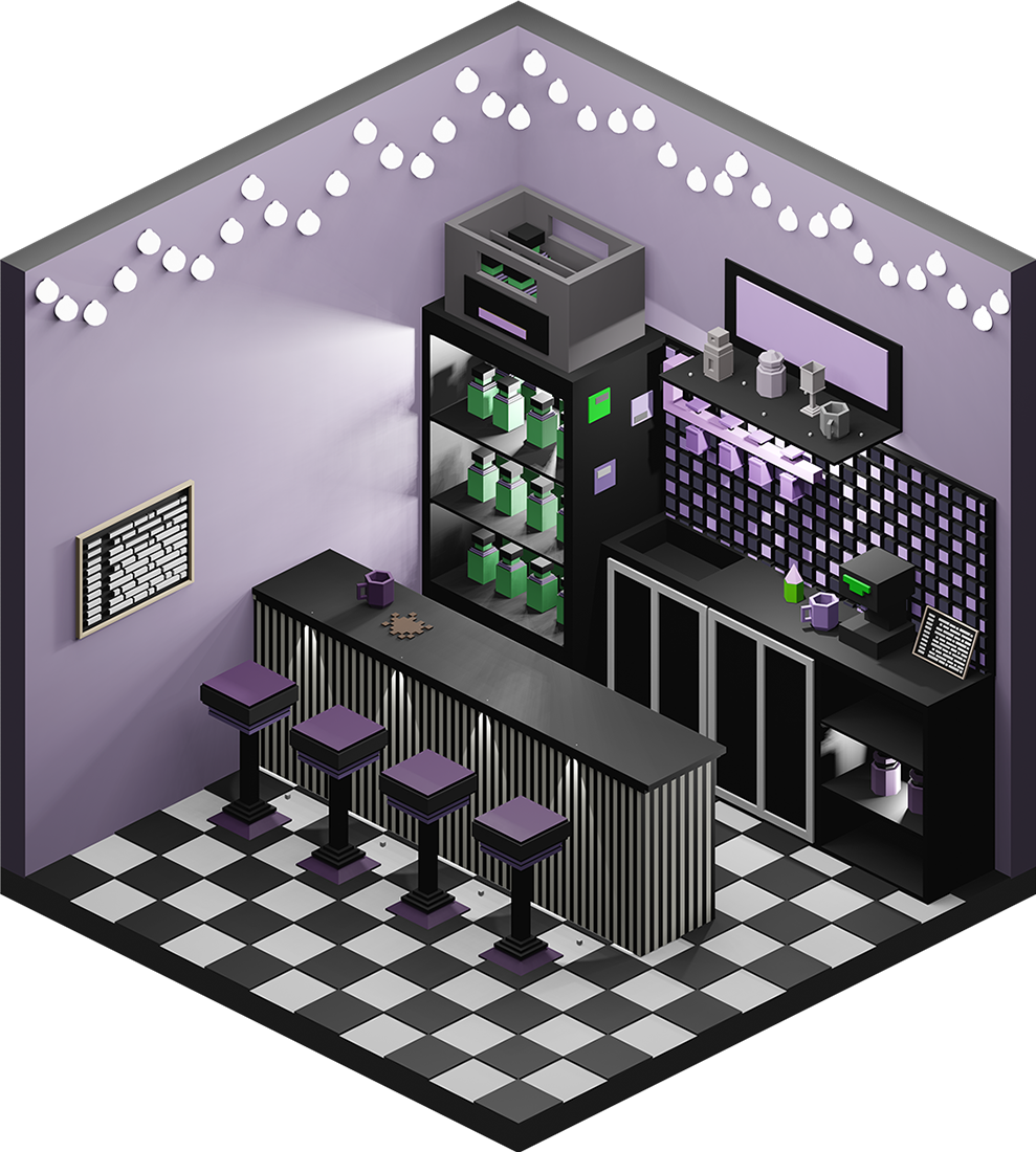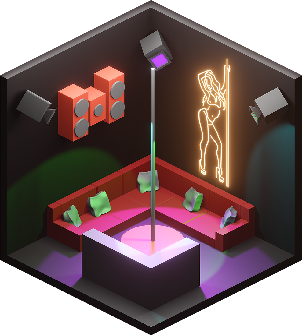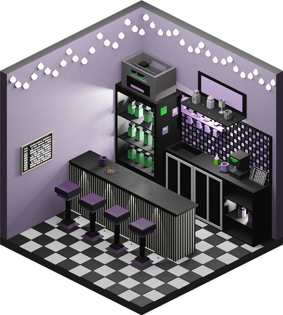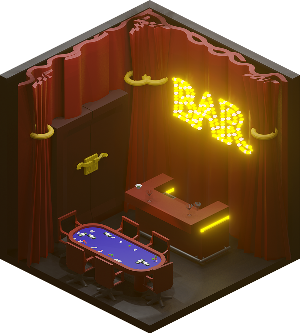 Inhaltlich kamen dabei viele unterschiedliche Ideen zum Vorschein, vom Fitnesscenter, über Bars und Cafés bis hin zur Sauna. Formal renderten wir die Ergebnisse in Parallelperspektive, wodurch einheitliche Hexagone entstanden, die wir wie Bienenwaben an der Wand arrangieren konnten.