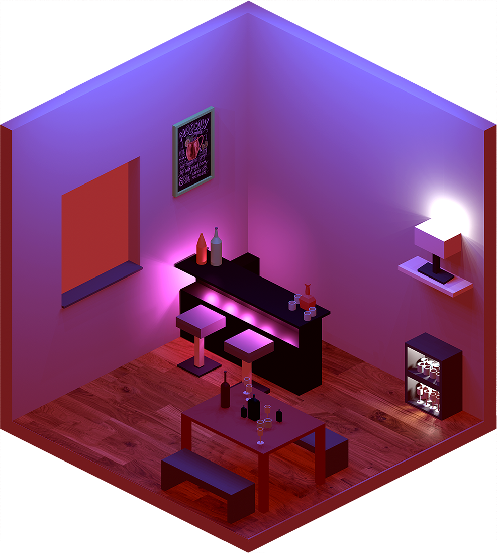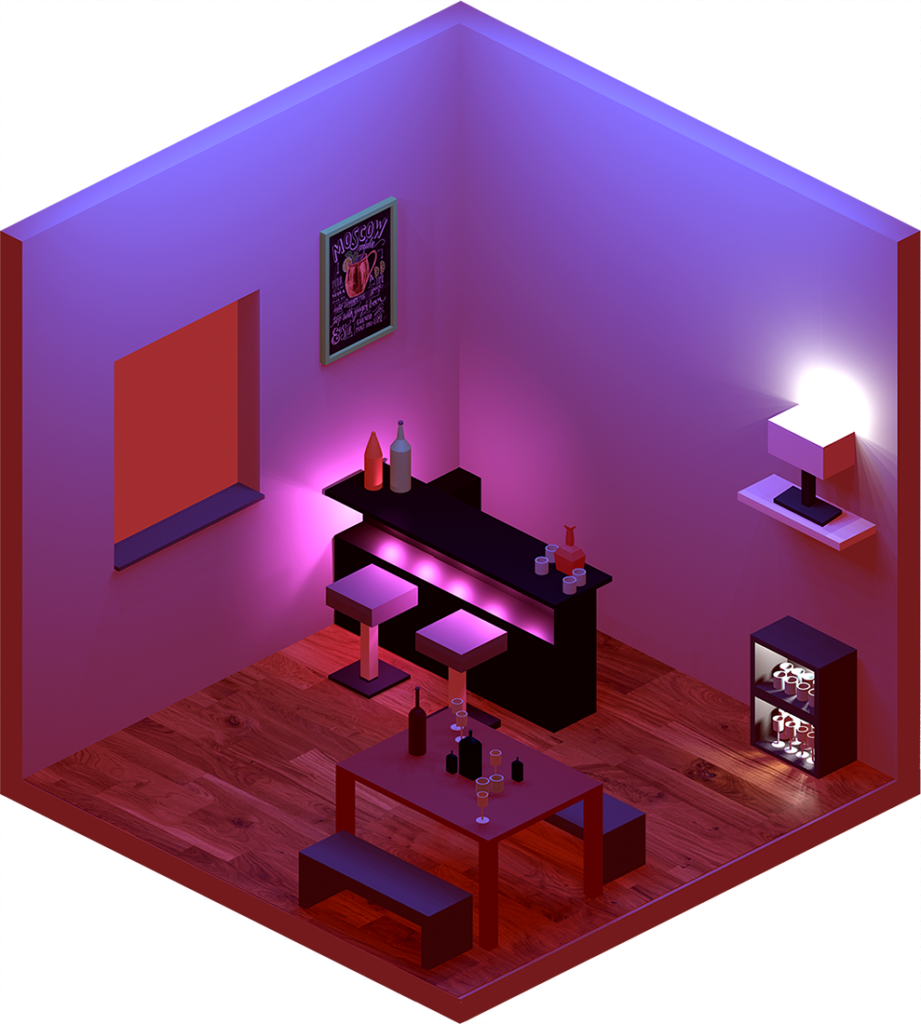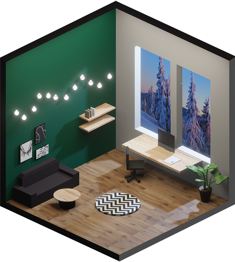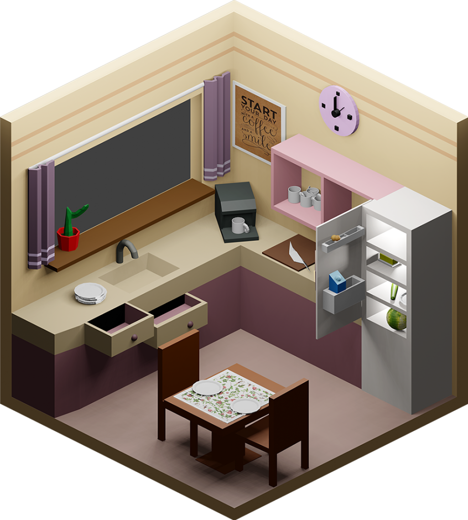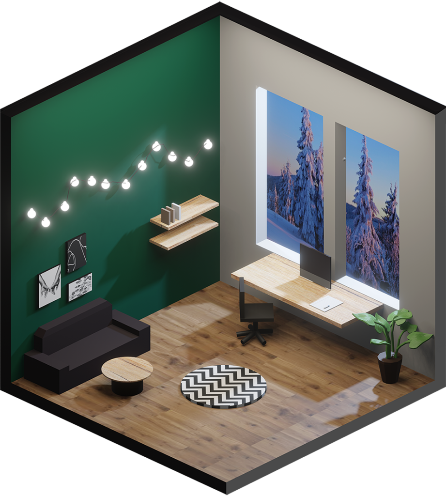 Innenraumgestaltung war im weitesten Sinne unser Thema bei diesem Projekt, in dem die Schülerinnen und Schüler aus drei Jahrgängen ihr Können im Programm Blender hervorkehren konnten. Ausgehend von einem quadratischen leeren Raum sollte eine beliebige Szenarie geschaffen werden. Dafür mussten Möbel und architektonische Elemente modelliert, Farben und Texturen aufgetragen, sowie Lichtquellen passend gesetzt werden.