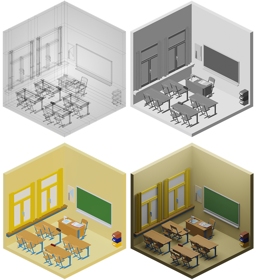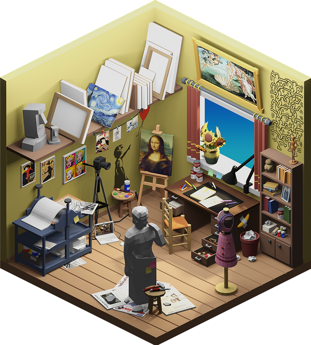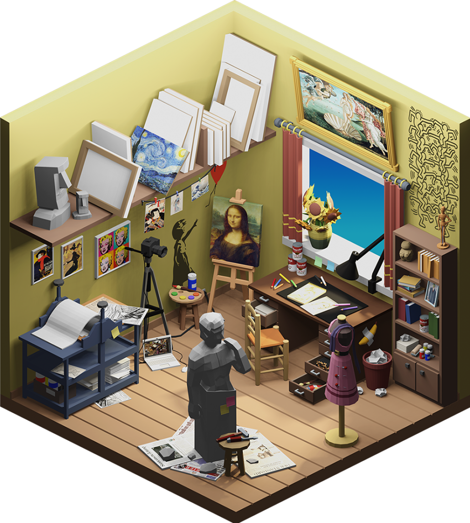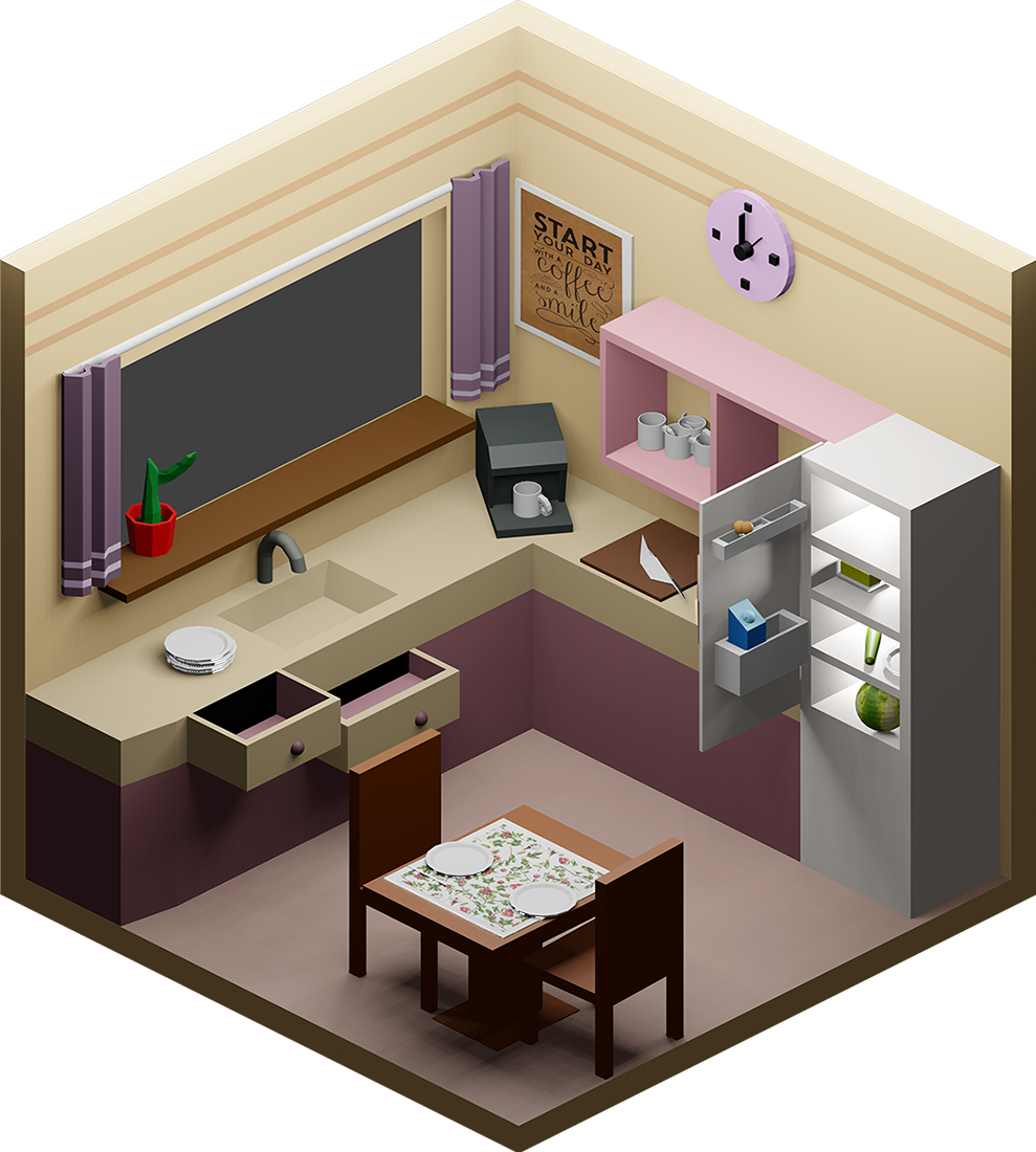 Innenraumgestaltung war im weitesten Sinne unser Thema bei diesem Projekt, in dem die Schülerinnen und Schüler aus drei Jahrgängen ihr Können im Programm Blender hervorkehren konnten. Ausgehend von einem quadratischen leeren Raum sollte eine beliebige Szenarie geschaffen werden. Dafür mussten Möbel und architektonische Elemente modelliert, Farben und Texturen aufgetragen, sowie Lichtquellen passend gesetzt werden.