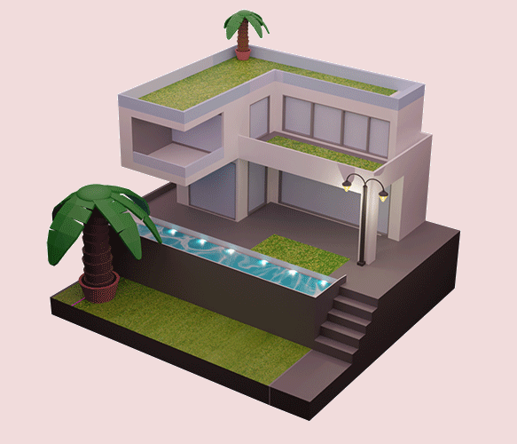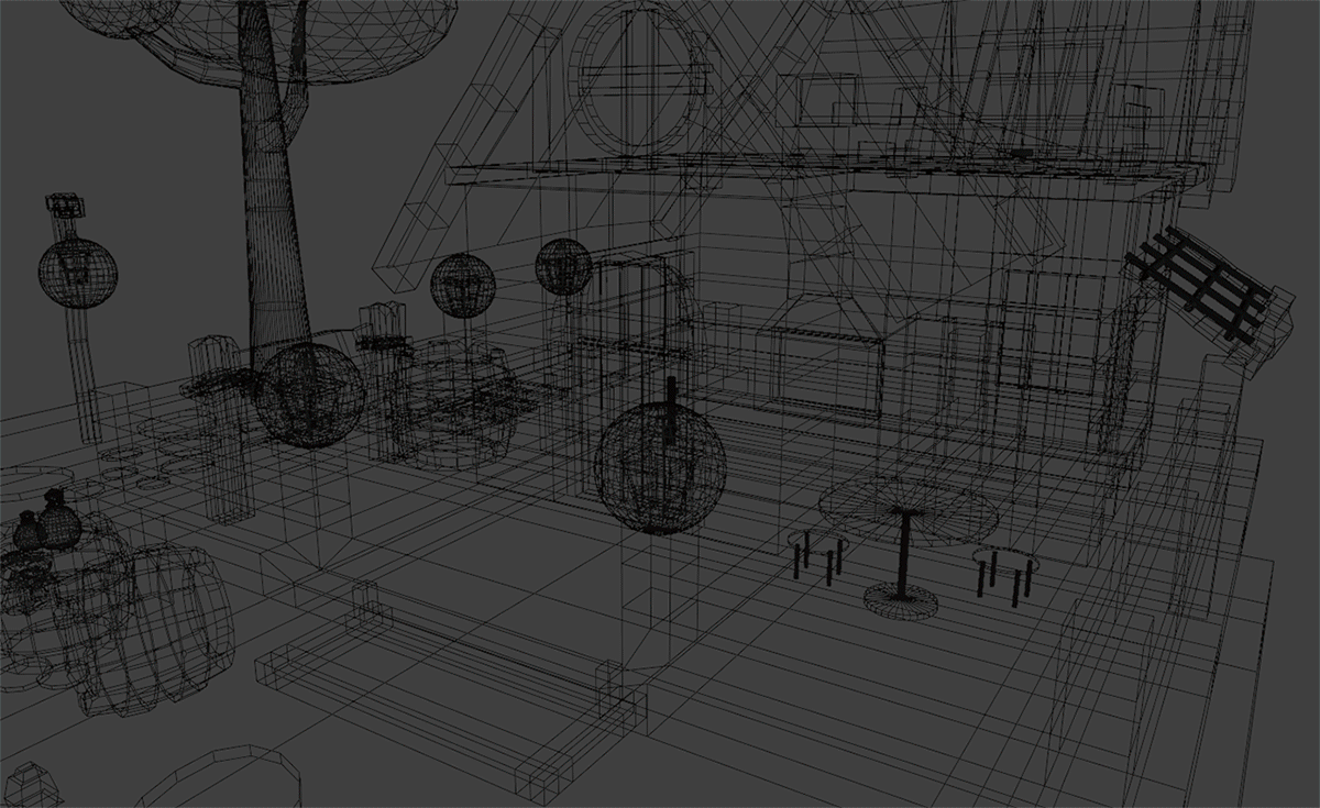 Im Wahlpflichtgegenstand Mediengestaltung wählten wir einen etwas anderen Zugang zum Thema. Diesmal standen keine Innenräume im Fokus sondern Außenansichten von Gebäuden und Arealen. Als Ausgangspunkt diente zunächst eine quadratische Fläche, auf die dann Stück für Stück die einzelnen Elemente platziert wurden.