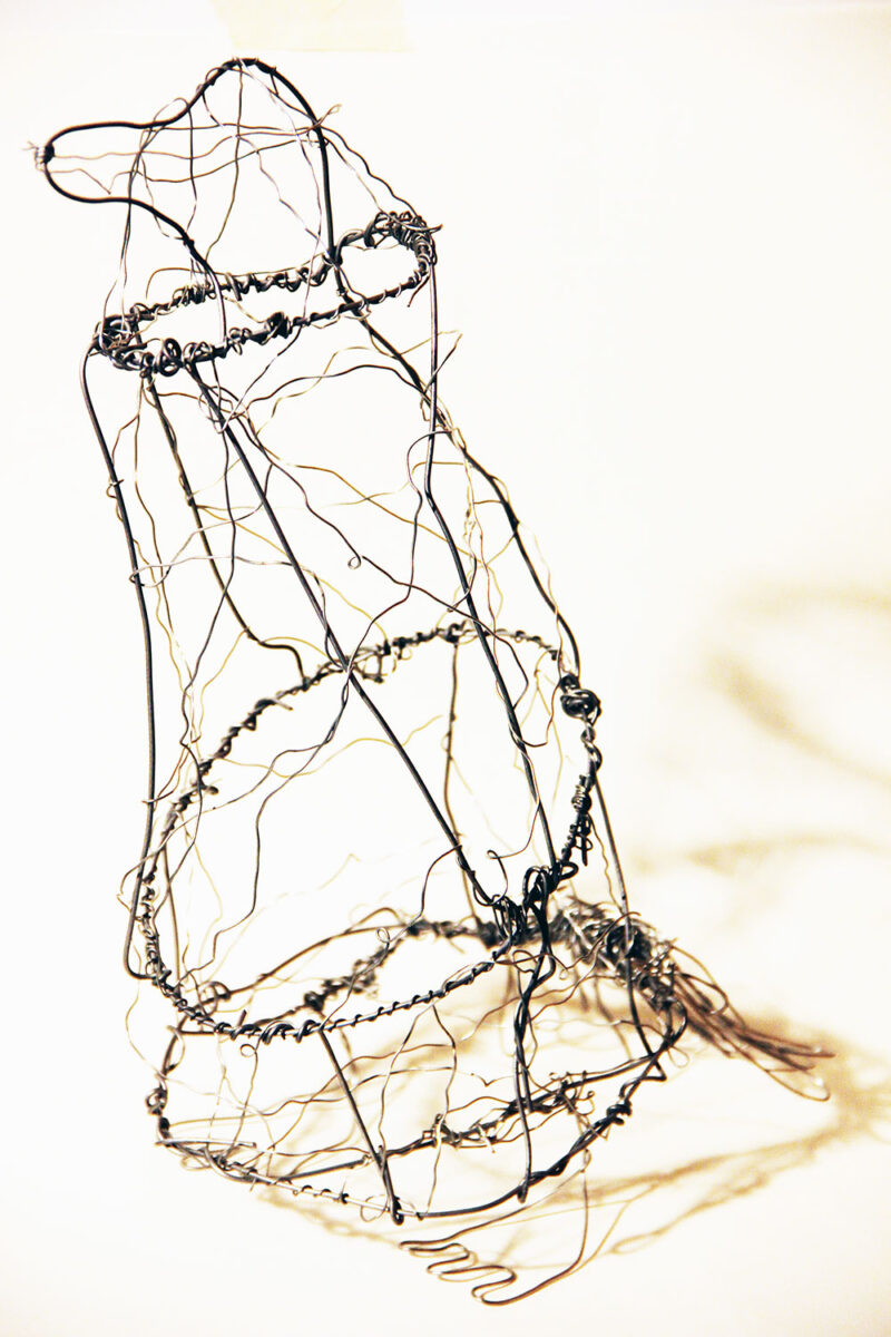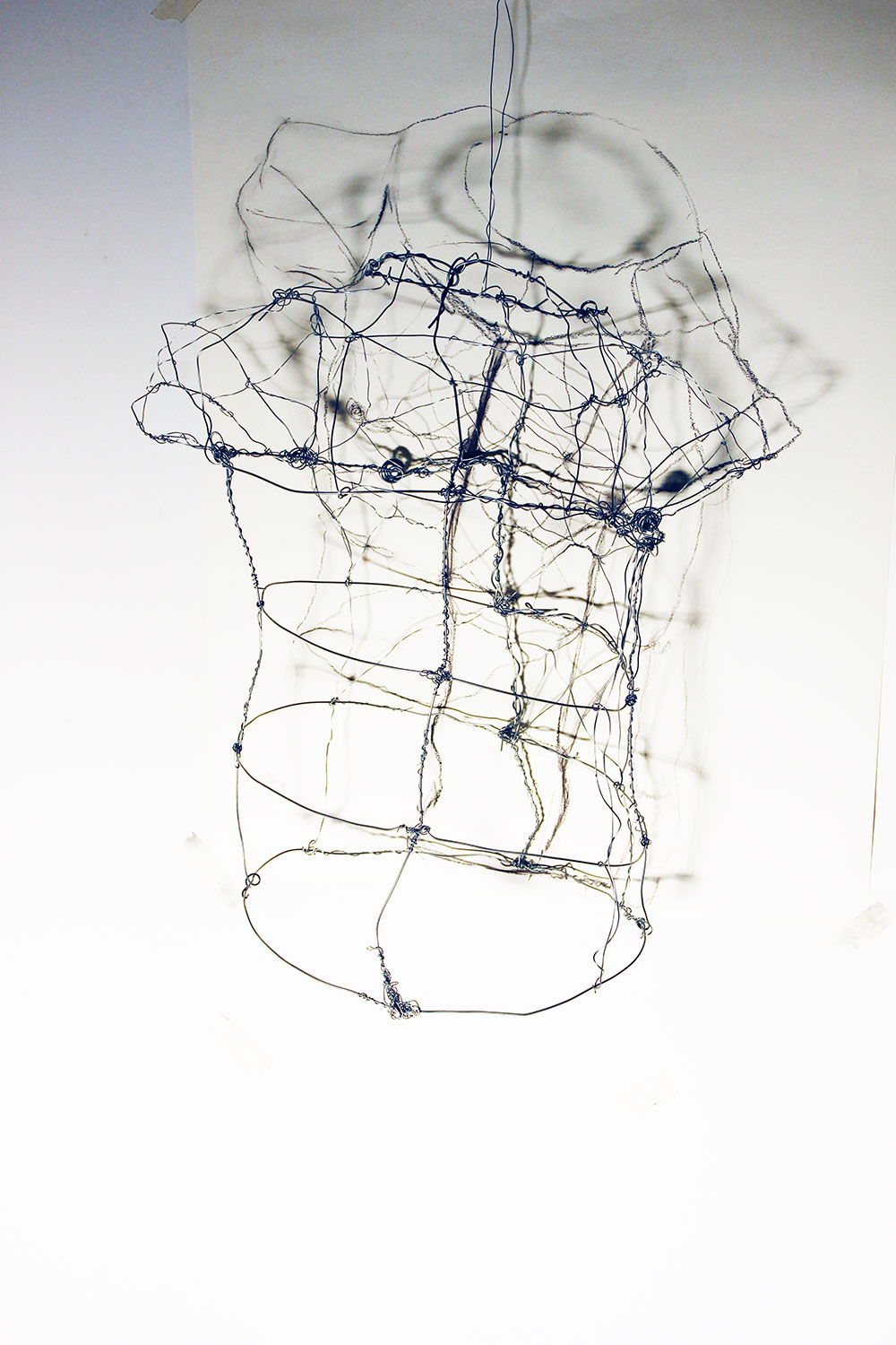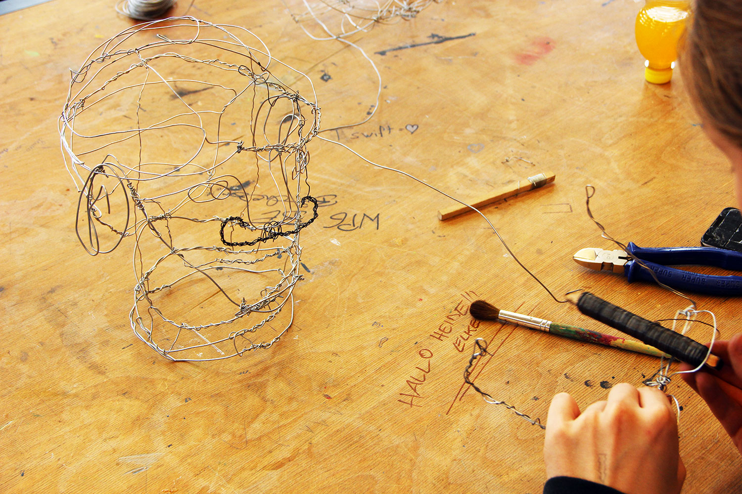 Die praktische Aufgabenstellung des räumlich-lineares Gestaltens ist inspiriert durch Künstler wie David Oliveira, Martin Senn oder Fritz Panzer. Obwohl alle gebogenen Draht für ihre 3dimensionalen Zeichnungen nutzen, finden die SchülerInnen dennoch eine Reihe von Unterscheidungsmerkmalen in ihrer Bildsprache heraus. Anhand des Schattenwurfs der entstandenen Plastiken studieren wir danach unsere Möglichkeiten, die zuvor erzeugte Räumlichkeit wieder in die zweidimensionale Fläche zu übersetzen.