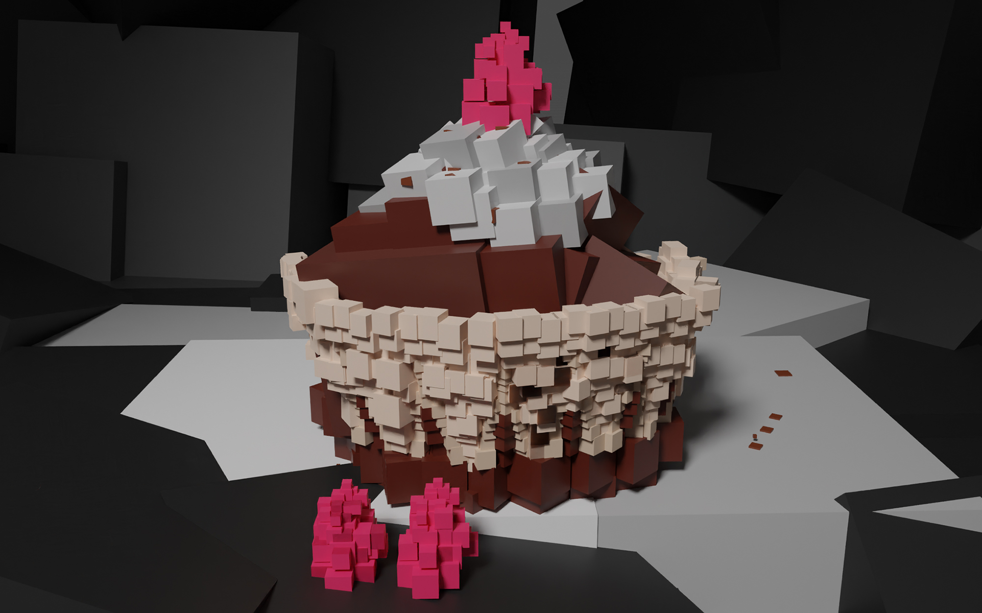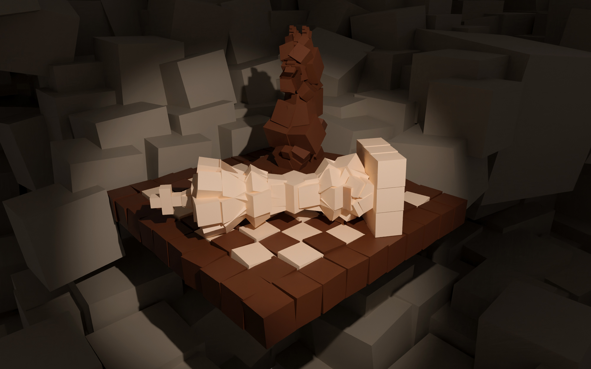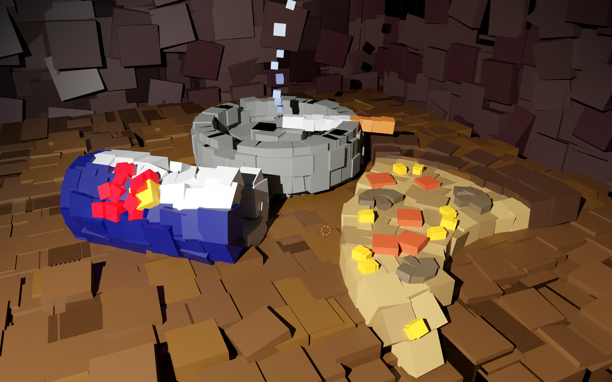 Nachdem sich die Schülerinnen und Schüler der 8C im Rahmen des Projekts “Diorama” in der Vergangenheit schon ausführlich mit 3D-Modeling auseinandergesetzt hatten, kehrten wir noch einmal zum Programm Blender zurück, als wir uns in Kunst & Gestaltung mit dem Kubismus beschäftigten. Mit dem selbst auferlegten Dogma nichts weiter als den Kubus zu verwenden, versuchten wir Gegenstände in Form von Stillleben zu modellieren. Durch Setzen von Lichtquellen und dem entsprechenden Schattenwurf entstand so eine sehr ungewöhnliche Ästhetik.