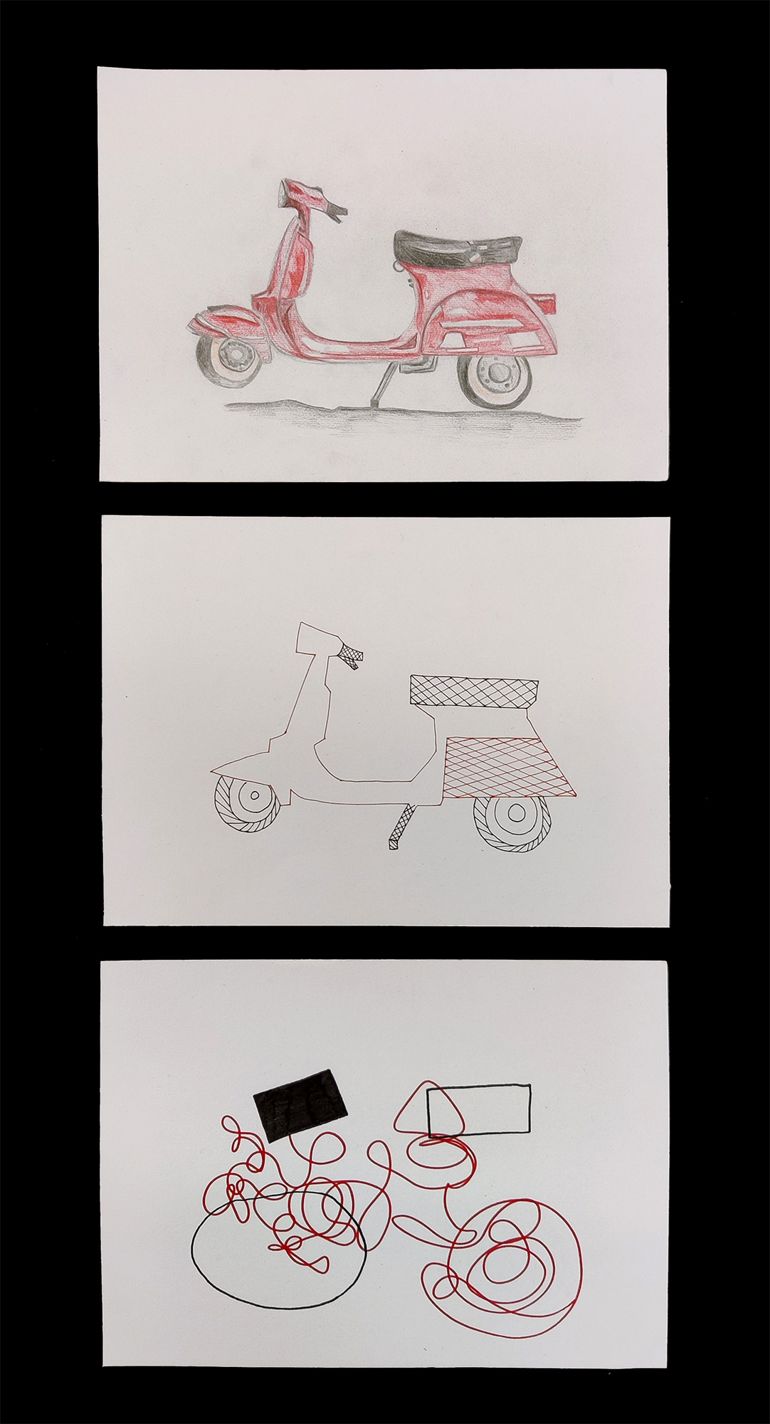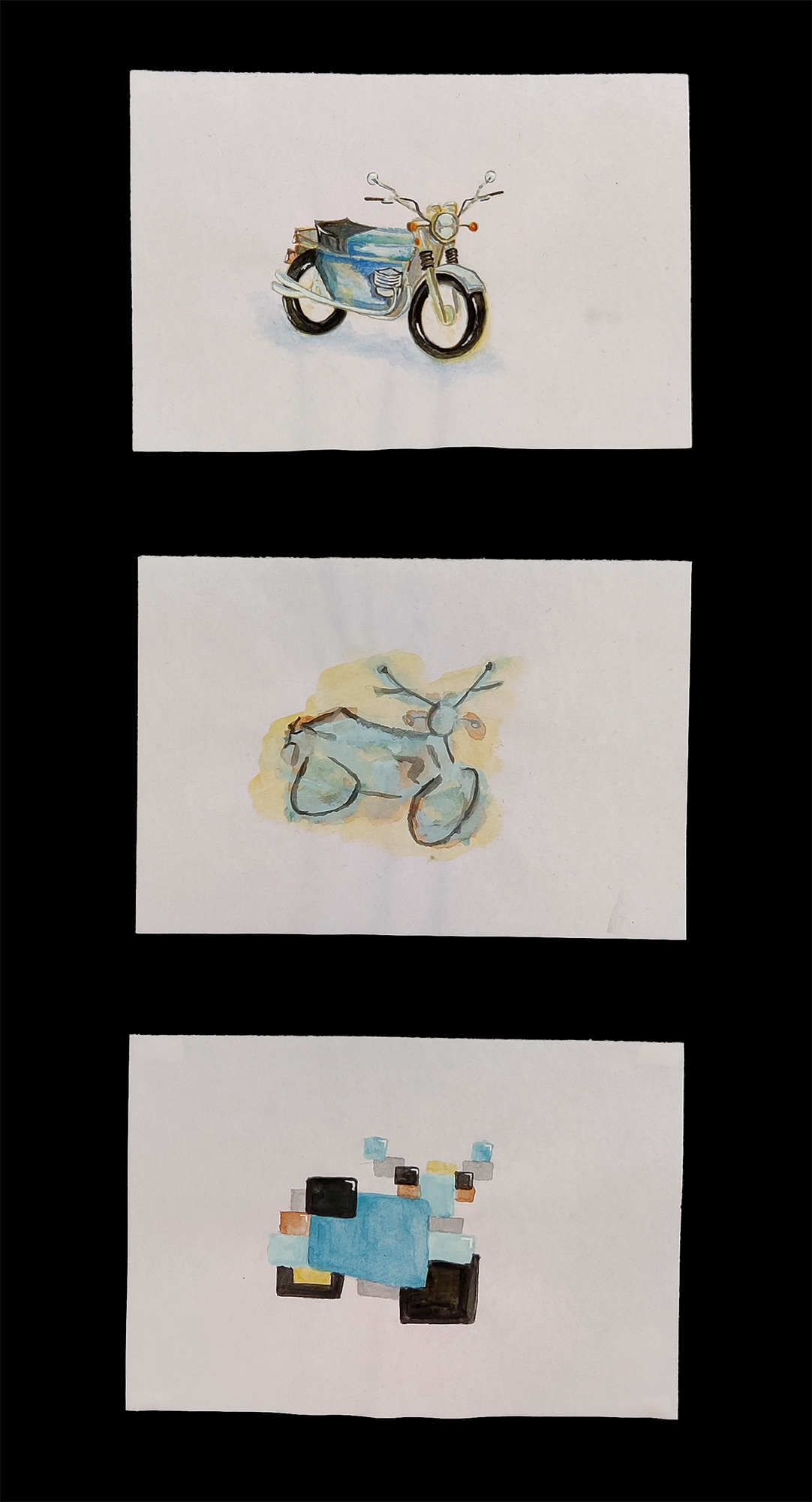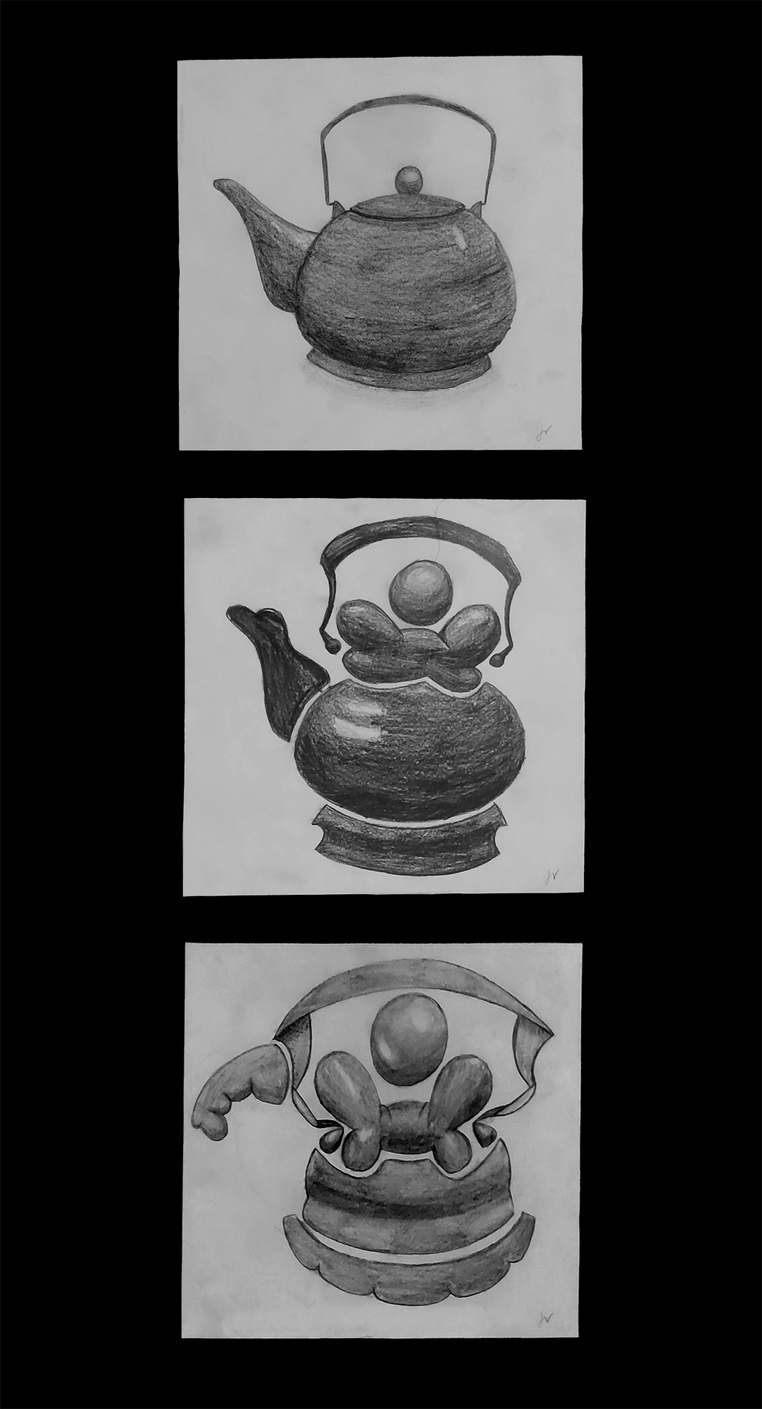 Abstraktion spielt in vielen Kunstepochen eine wesentliche Rolle. Immer wieder haben Künstler wie Wassily Kandinsky oder Pablo Picasso Wege entdeckt, Gegenständlichkeit zu dekonstruieren. Angelehnt an diese kunstgeschichtlichen Vorbilder, stellten sich unsere Schülerinnen und Schüler der Aufgabe einen alltäglichen Gegenstand zunächst realistisch darzustellen und dann in zwei Schritten immer weiter zu abstrahieren.