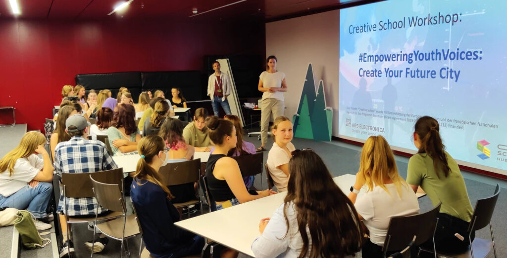 Unsere Künstlerinnen und Künstler der fünften, sechsten und siebten Klasse verbrachten heute einen Tag in der Landeshauptstadt. Nach einem ausführlichen Zeichen-Vormittag im Schlosspark waren sie im Ars Electronica Center zu einem Abschlussevent unserer Workshopreihe zum Thema Planet B eingeladen. Auch ein Abstecher in den Deep Space durfte dabei natürlich nicht fehlen.