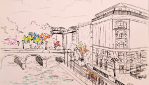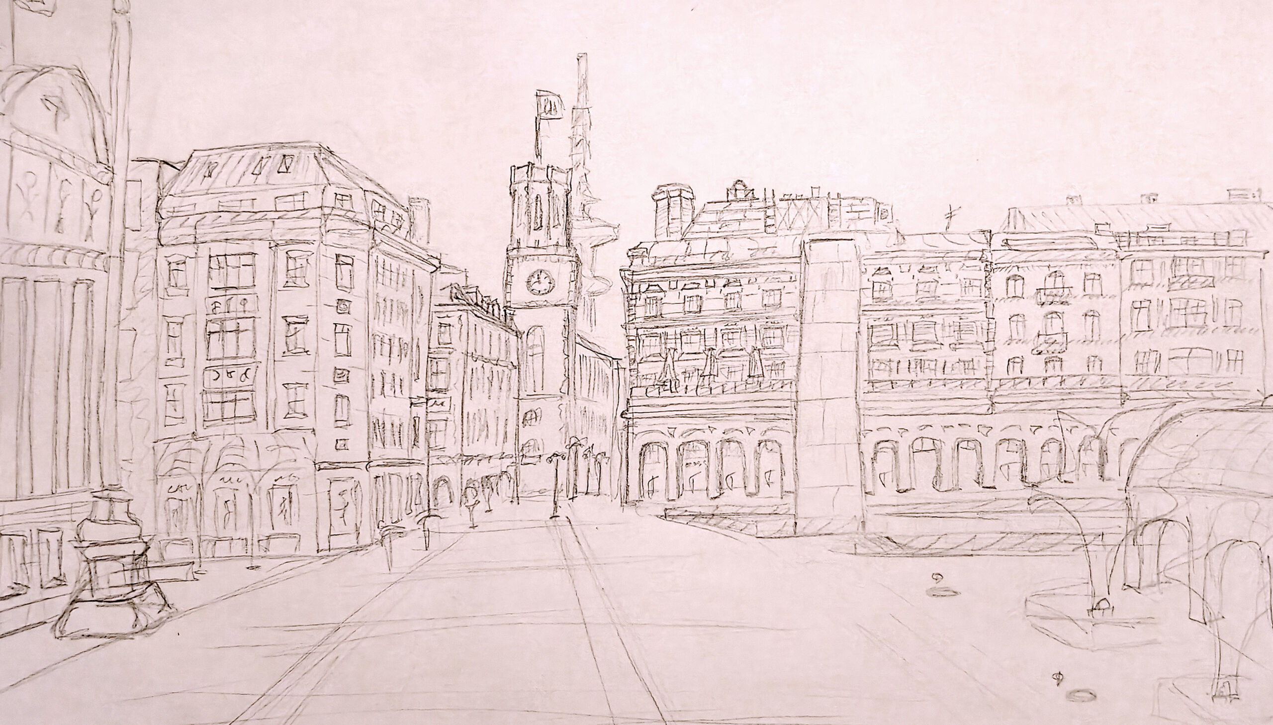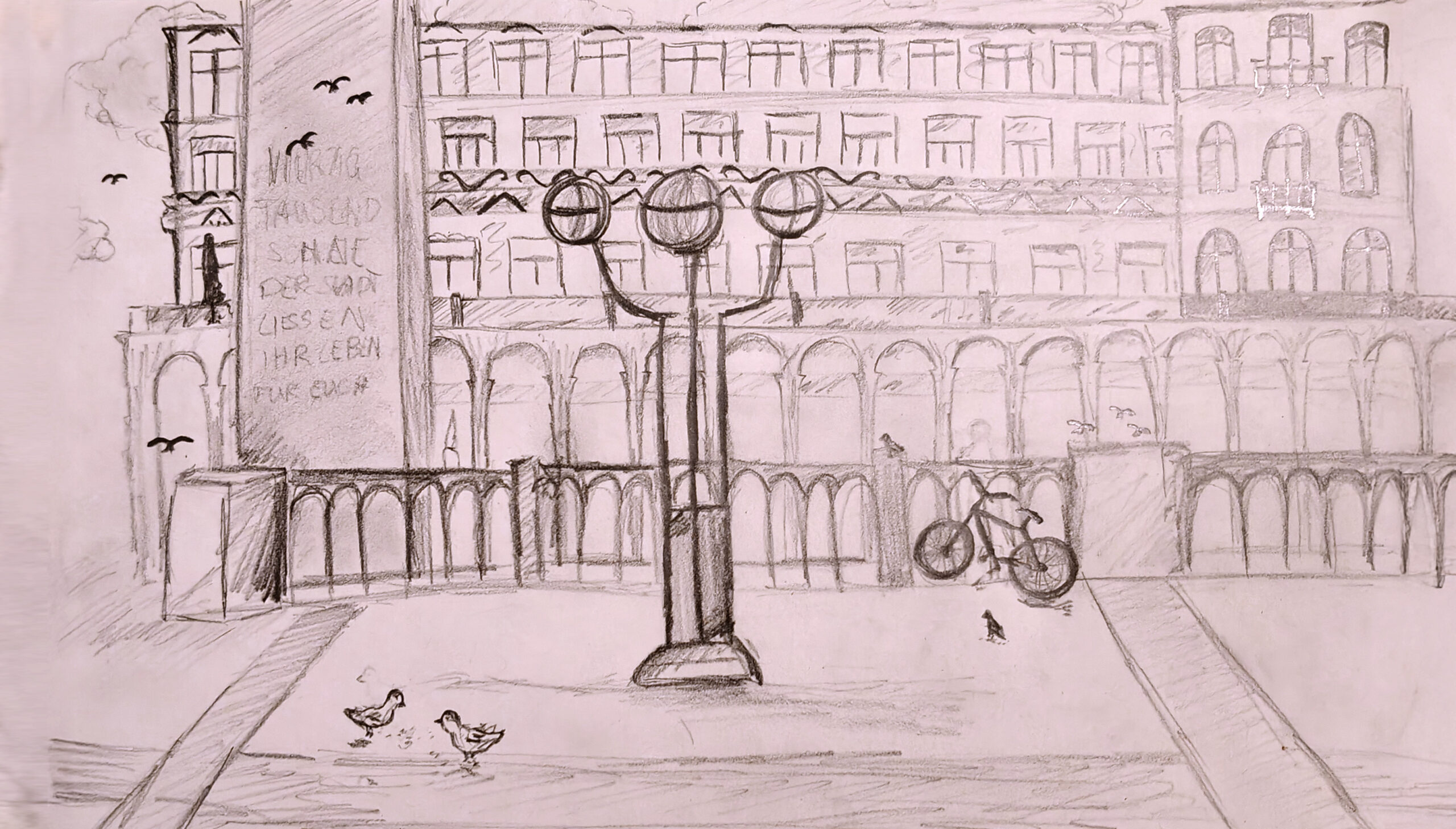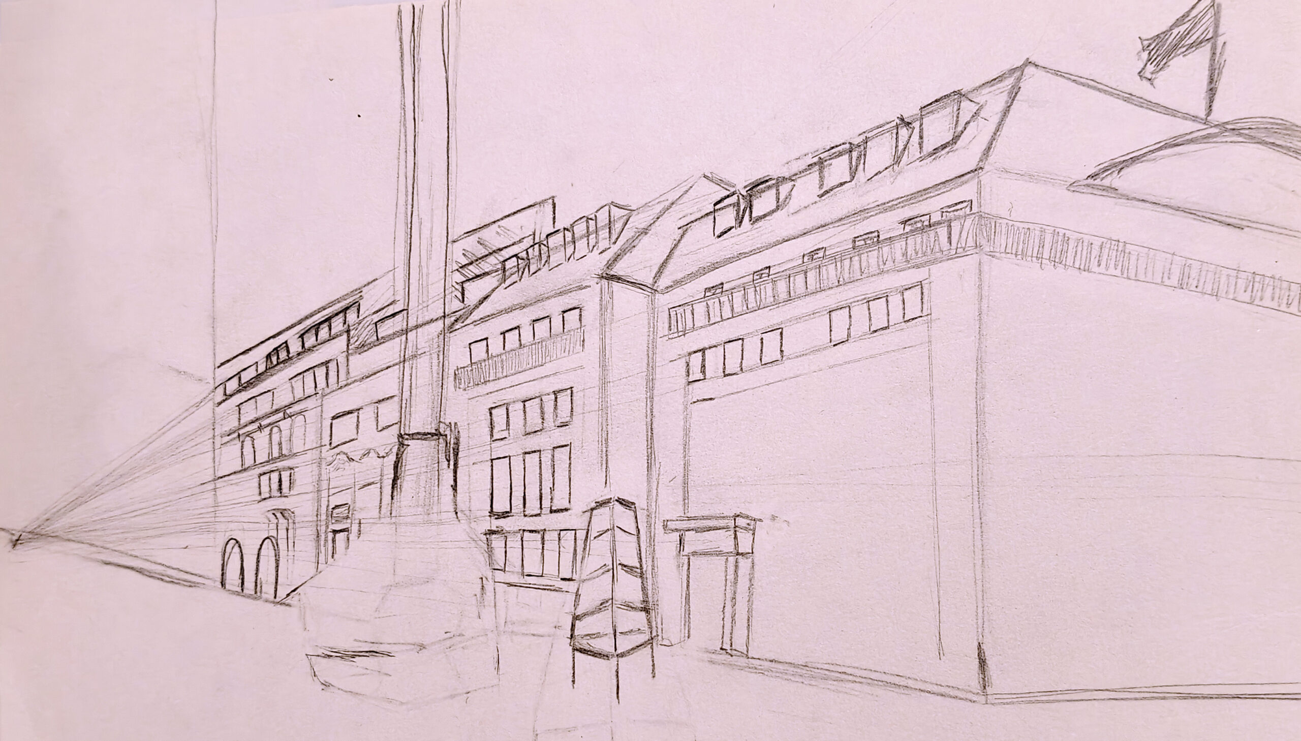 Am Donnerstag ging es wieder zurück in die Innenstadt von Hamburg. Diesmal mit dem Zeichenblock. Am Platz vor dem Rathaus bewunderten wir die Kunstvollen Fassaden der Gebäude und versuchten, unter den Augen manch interessierten Passanten, unsere Perspektivenübungen aus der Schule in die Tat umzusetzen.