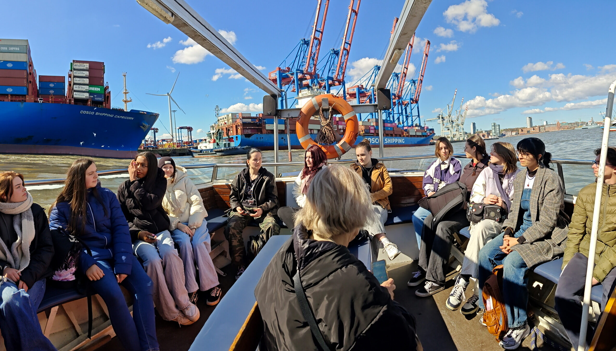 Direkt danach ging es weiter zu den Landungsbrücken, wo bereits Kapt’n Schwarz und sein Schiff auf uns warteten. Während der ausführlichen Hafenrundfahrt bestaunten wir die gewaltigen Kräne, endlose Containerreihen und majestätische Schiffe, bevor wir schließlich in die verwinkelten Kanäle der Speicherstadt eintauchten – eine Fahrt, die uns Hamburgs maritimen Charme aus nächster Nähe erleben ließ.