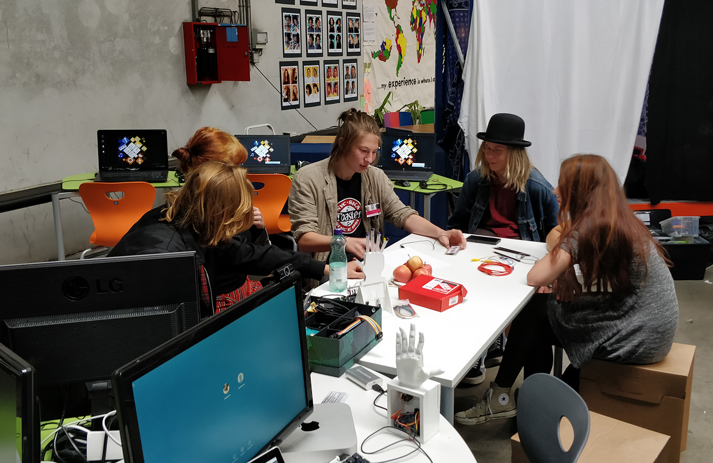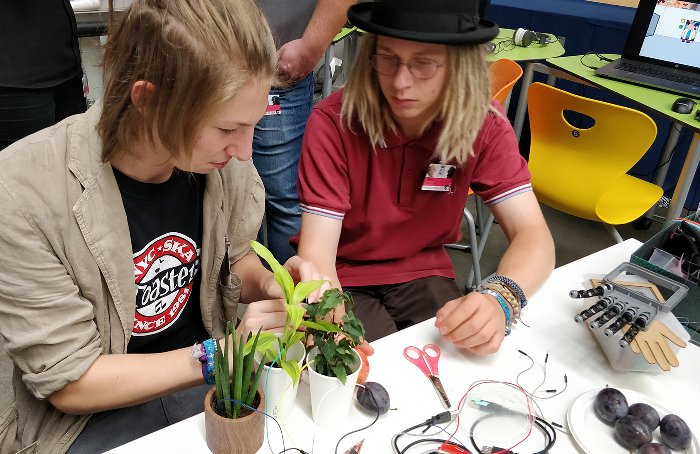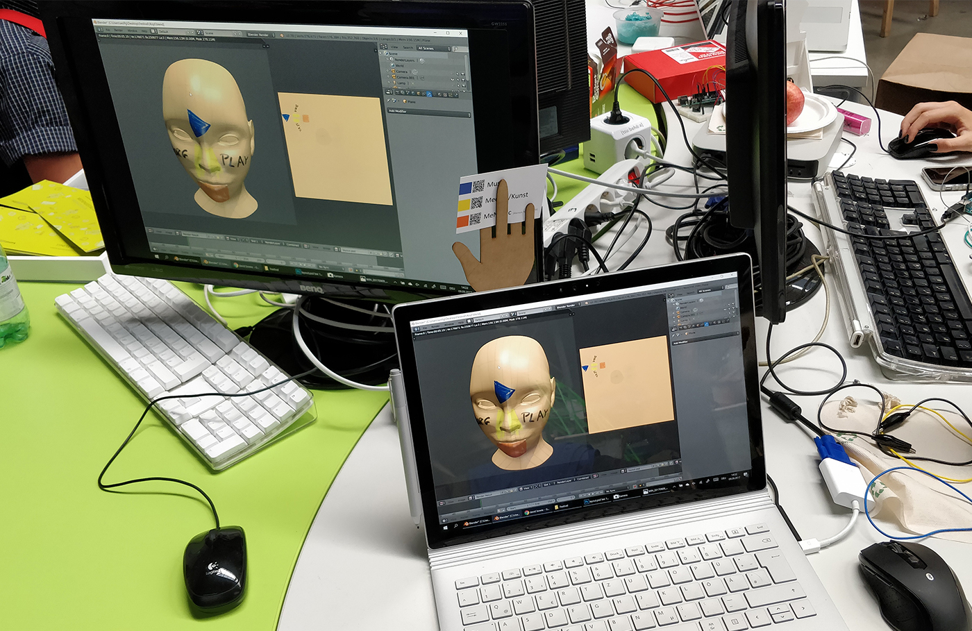 Zum zweiten Mal bespielte unser Medien/Kunst Zweig heuer einen Stand in der Postcity des Ars Electronica Festivals. Gemeinsam mit Studenten der Kunstuniversität Linz demonstrierten unsere Schülerinnen und Schüler fünf Tage lang kreative Programmierprojekte. So konnte gegen Hände aus dem 3D-Drucker Stein-Schere-Papier gespielt oder eine selbst gebaute Spielkonsole ausprobiert werden. Außerdem konnten Besucher ihr Gesicht auf verschiedenen, im 3D-Programm Blender gefertigte, Figuren legen und die großartigen Adventuregames ausprobieren, die in den letzten Jahren an unserer Schule entstanden sind.
