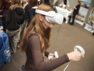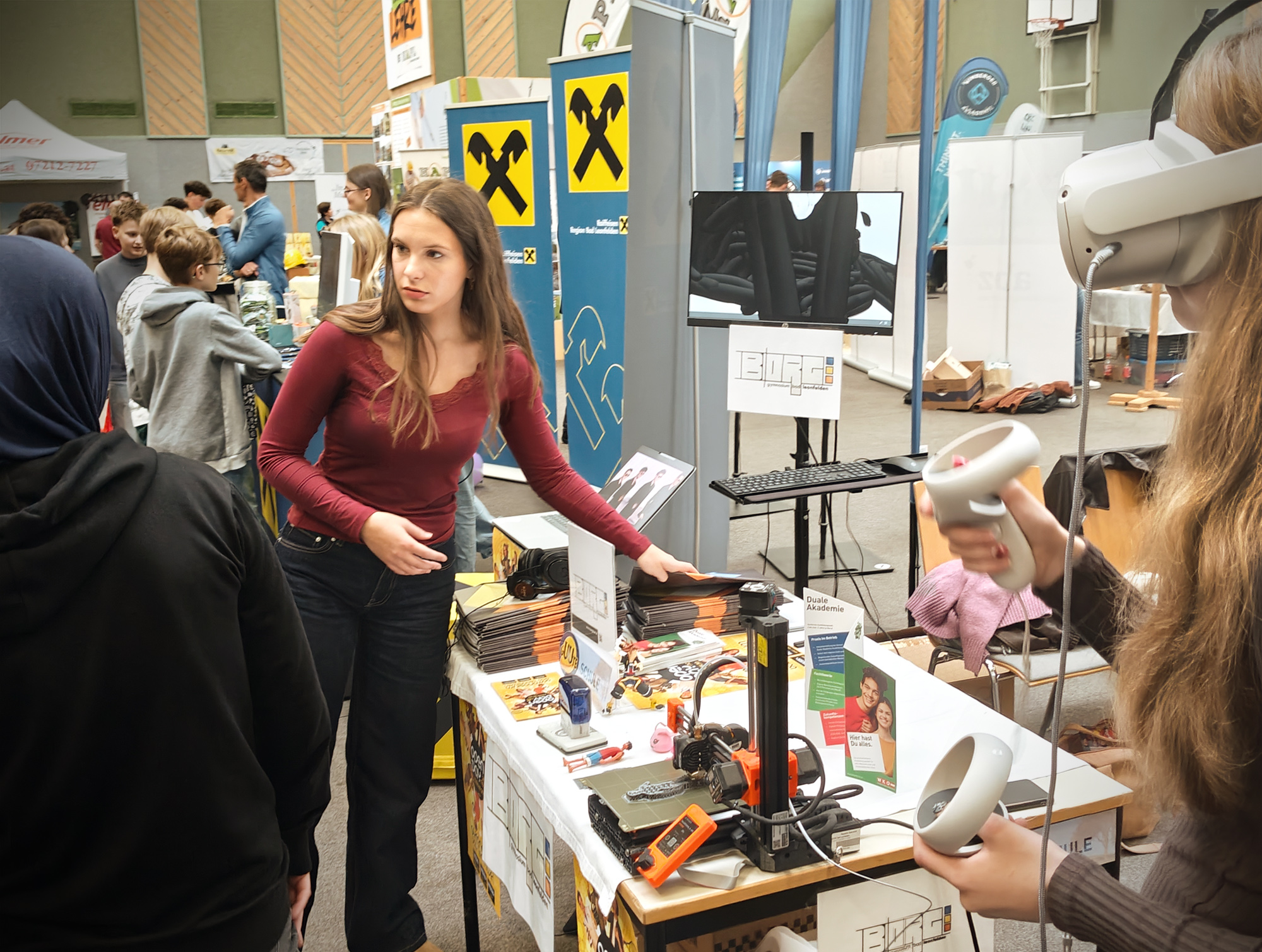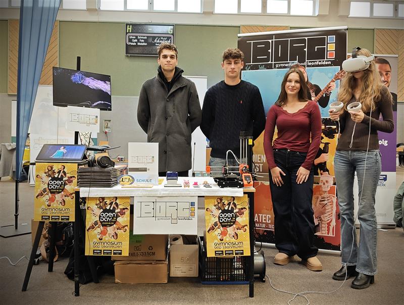 Ein engagiertes Team aus Lehrer:innen und Schüler:innen präsentierte das vielfältige Angebot und die zahlreichen Möglichkeiten unseres Gymnasiums. Besonders großes Interesse weckten unsere VR-Brille und der 3D-Drucker, die eindrucksvoll zeigten, wie moderne Technologien bei uns im Unterricht eingesetzt werden.