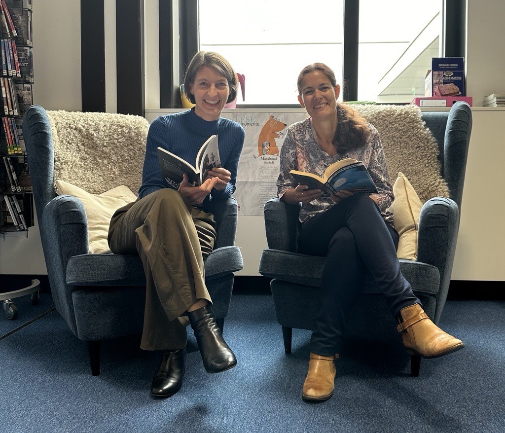 Neu in der Bibliothek: Sobald neue Medien ihren Weg in die Bibliothek gefunden haben, werdet ihr bereits am Bildschirm beim Eingang und in den Auslagen links und rechts des Eingangs zur Bibliothek darüber informiert!