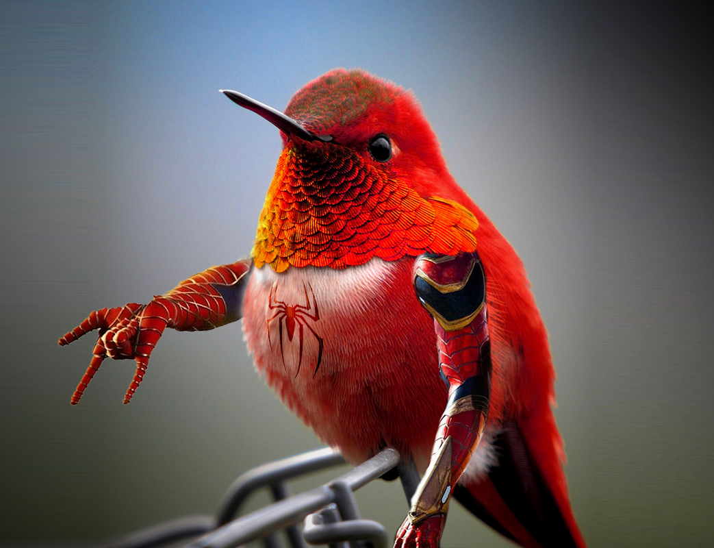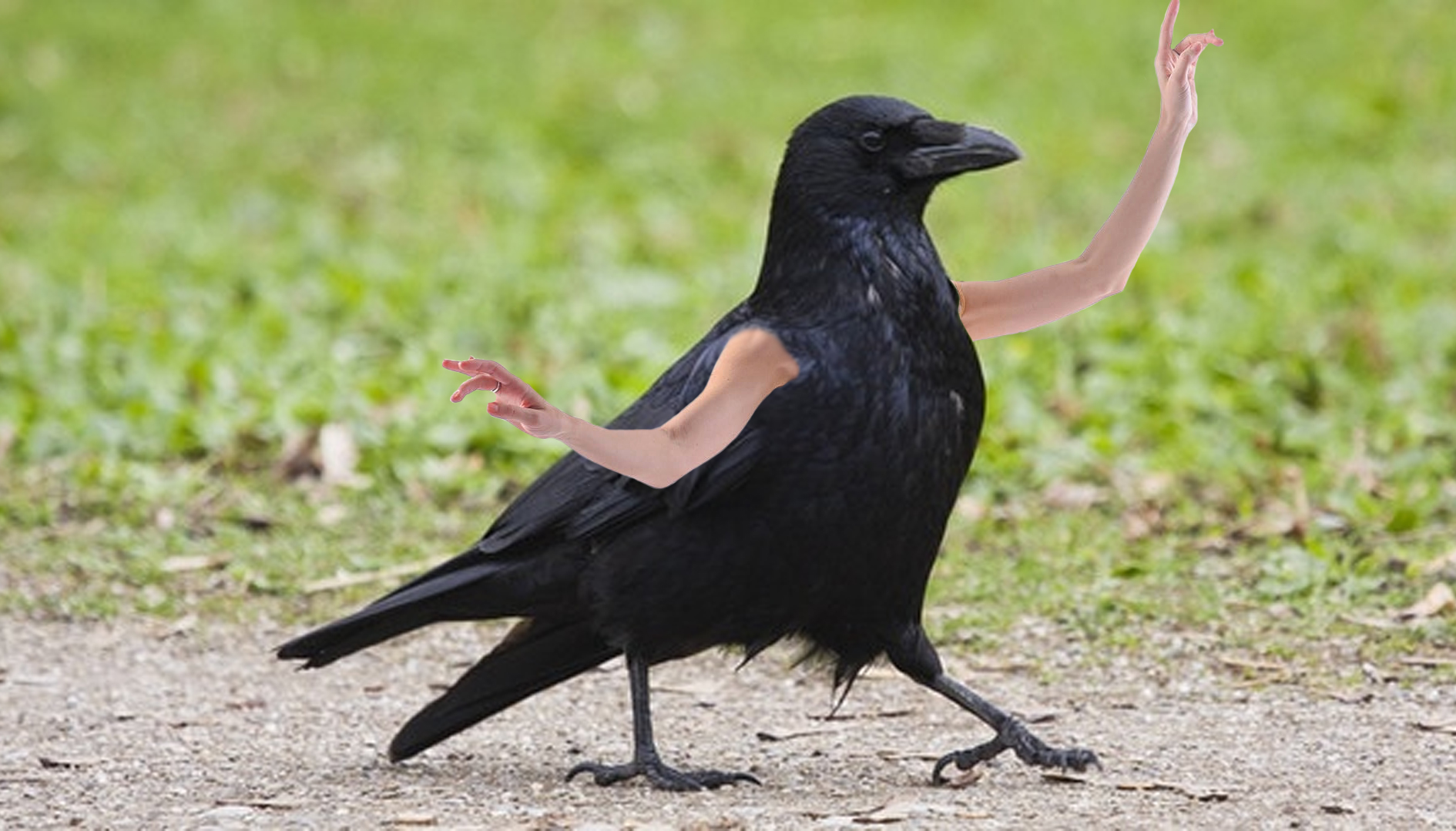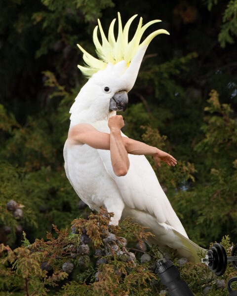 Die Arme konnten entweder selbst fotografiert oder ebenfalls in Bilddatenbanken gesucht werden. Besonders herausfordernd war ein halbwegs glaubwürdiger Übergang vom Federkleid zur Haut. Einige der  ausgesprochen witzigen Ergebnisse sehen Sie hier.