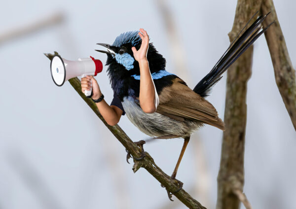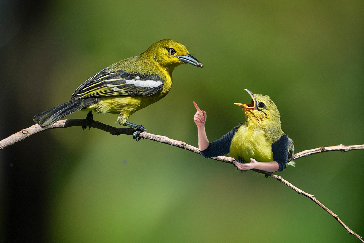 Einem recht populären Trend folgend, nutzten wir die sogenannten “Birds with arms” für eine kleine Fingerübung zu Ebenenmasken in Adobe Photoshop. Die Aufgabe bestand darin geeignete Fotos von Vögeln zu finden und die darauf abgebildeten Tiere mit Armen auszustatten.