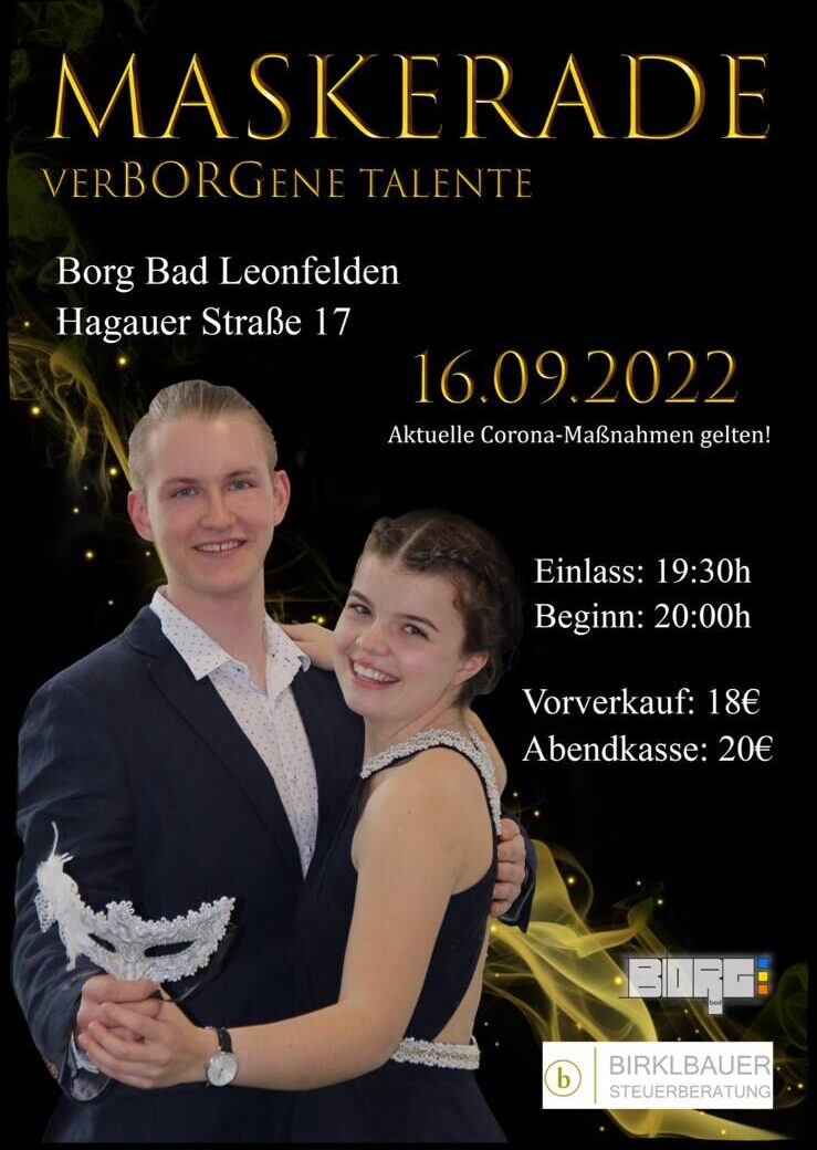 Nach dreijähriger Pause ist es nun bald so weit! Am Freitag,16.9.2022, geht der Maturaball unserer Abschlussklassen unter dem Titel „Maskerade – verBORGene Talente“ – über die Bühne.