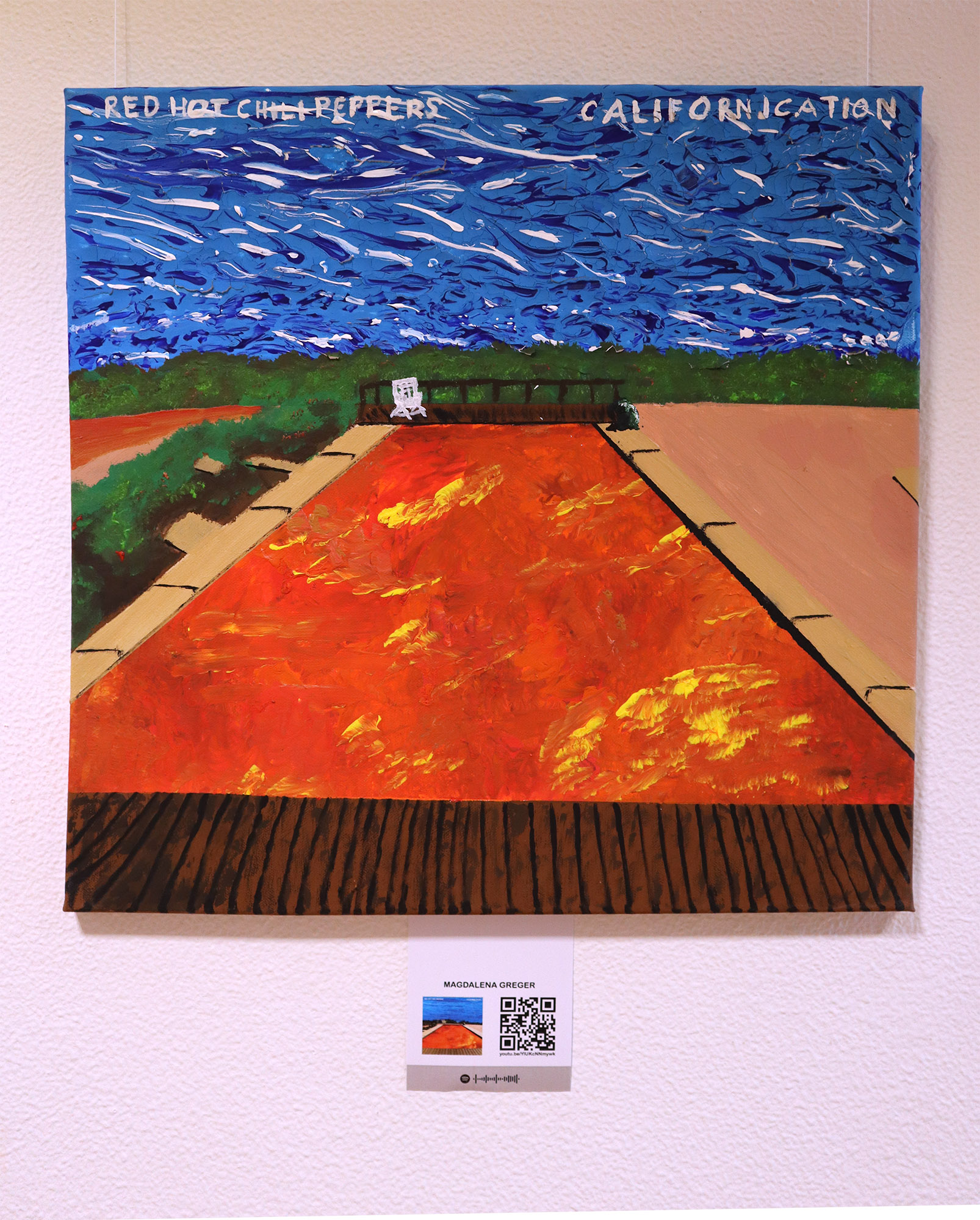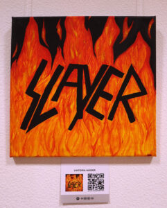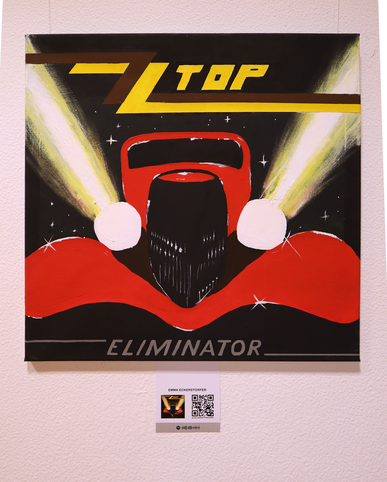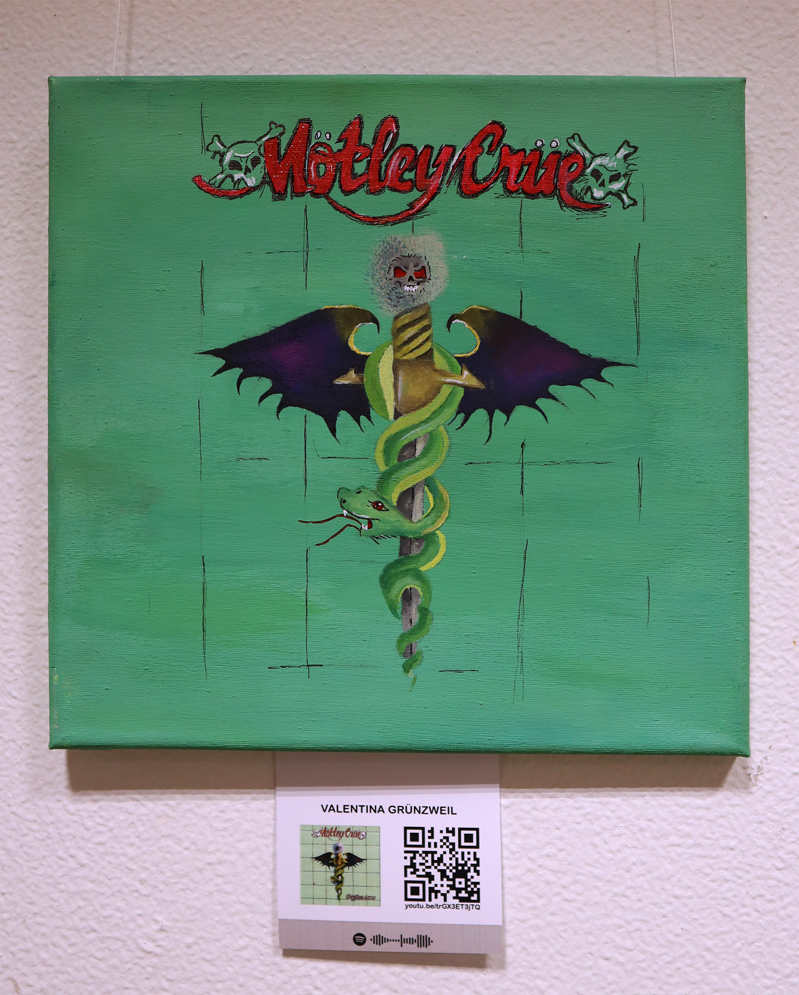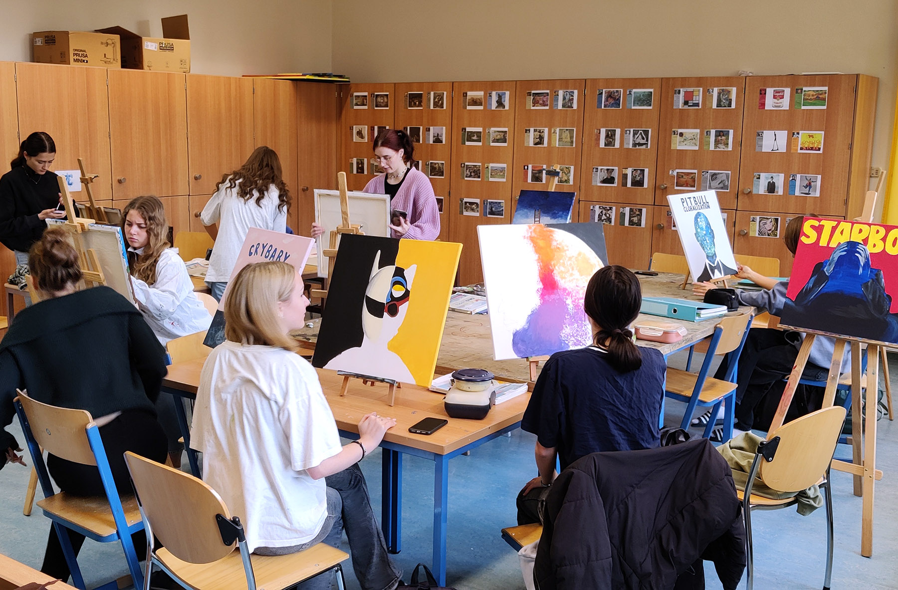 Dennoch spielen Covers immer noch eine wichtige Rolle in der Rezeption von Musik, weshalb wir beschlossen uns mit einem Projekt dieser Kunstform zu widmen. Die Schülerinnen und Schüler der 6C und der 8C setzten Covers, die sie besonders ansprachen großformatig mit Acrylfarbe auf Leinwand um.