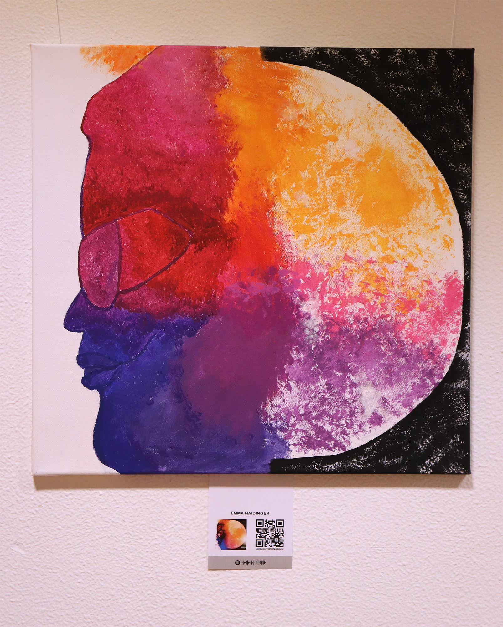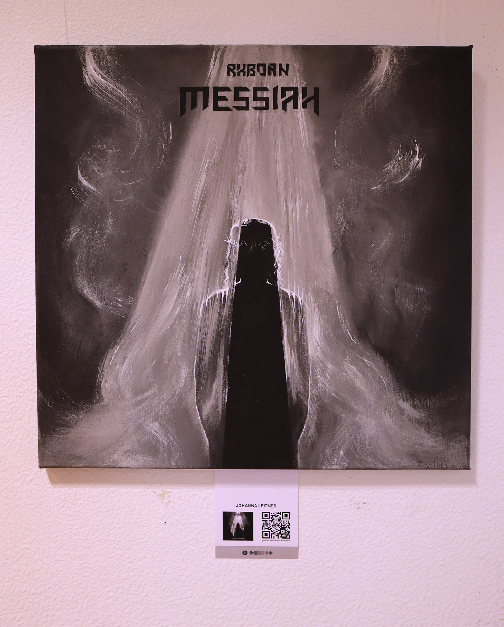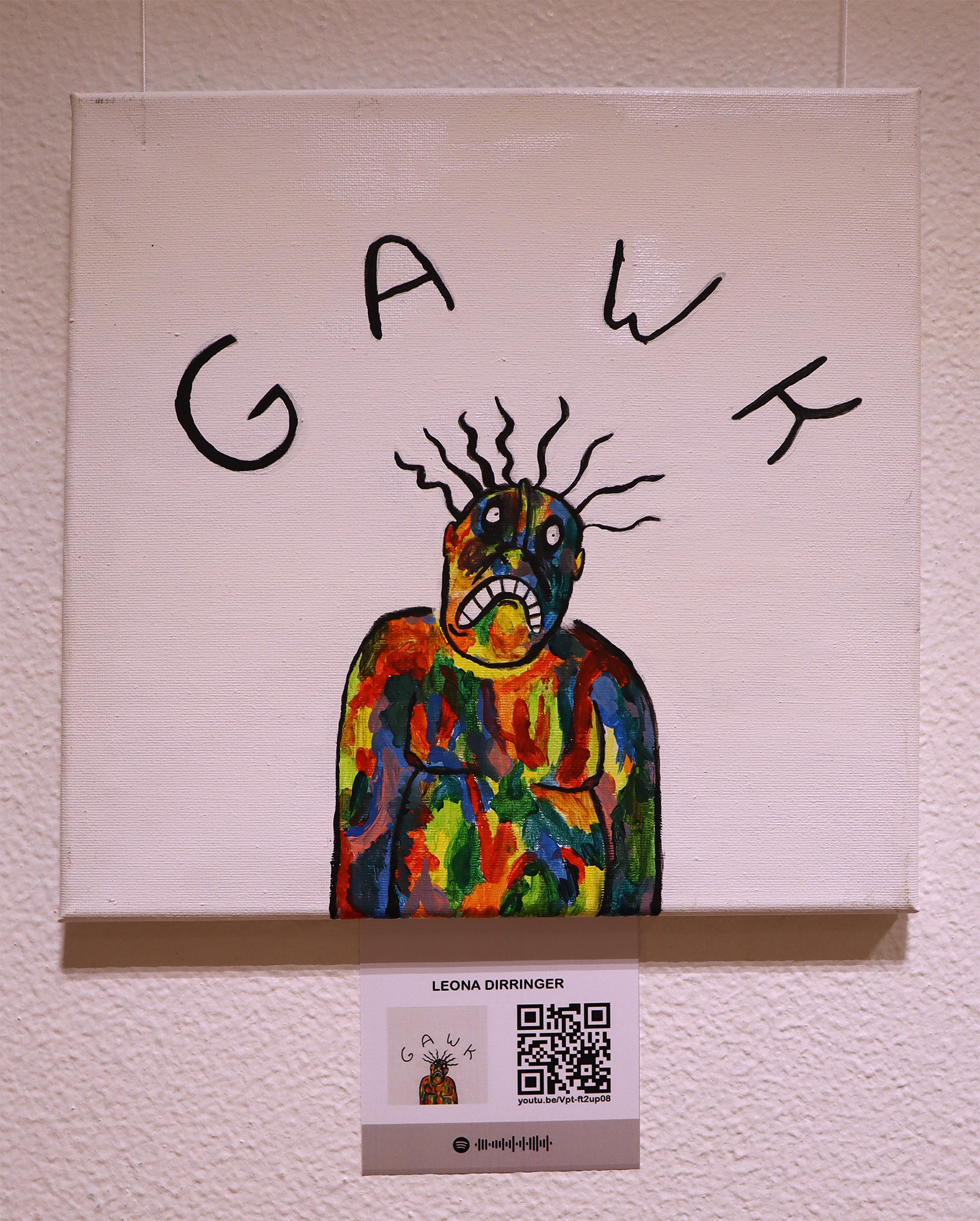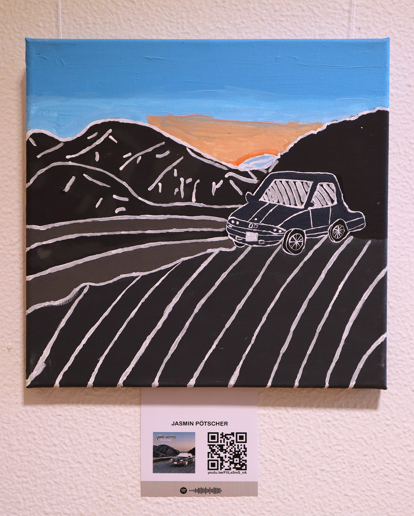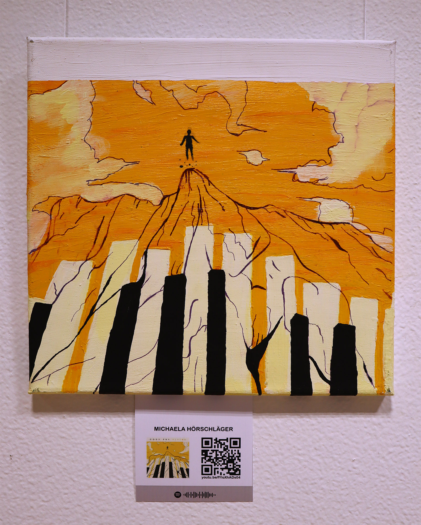 Die Ergebnisse stellten wir im Schulgebäude aus, begleitet von scanbaren Codes um die dazugehörigen Lieder schnell und einfach über das Handy anhören zu können.