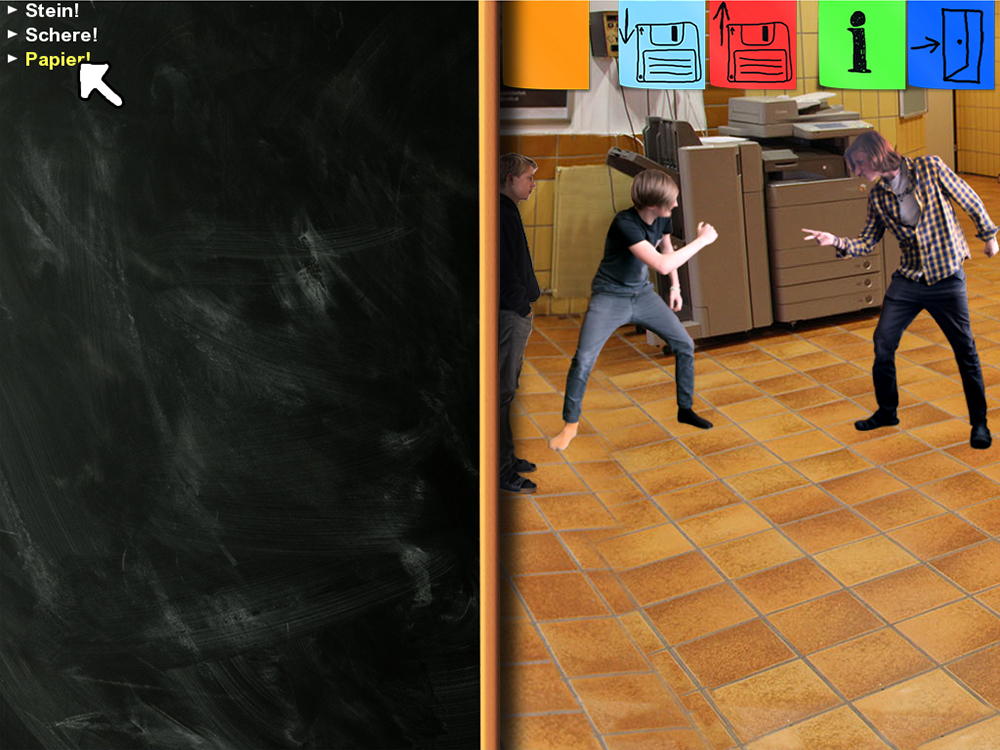 Zur Feier der Fertigstellung von Version 1.0, ließen es sich die Schüler nicht nehmen das Spiel selbst ausführlich durchzuspielen und dabei ein „Let’s Play“ zu produzieren. Hier sehen sie die vollständige Version vom harmlosen Beginn bis hin zum skrupellosen und furchterregenden Endboss: