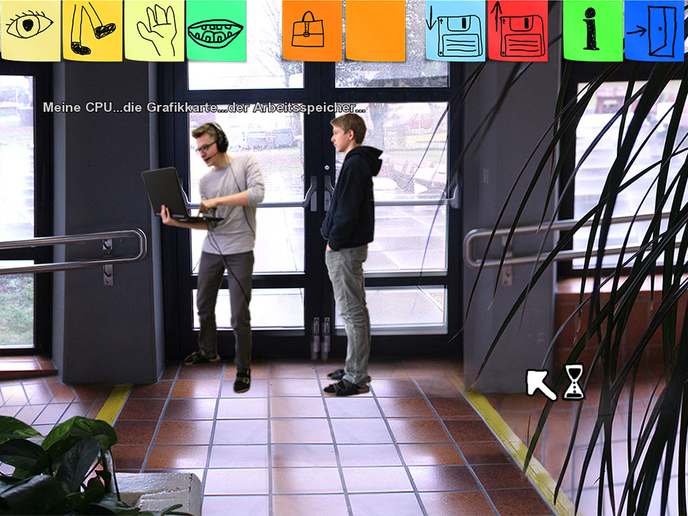 In den letzten Jahren sind einige bemerkenswerte Adventurespiele an unserer Schule entstanden. Mit Hilfe des Freeware Porgramms „Adventure Game Studio“, das eine einsteigerfreundliche Programmierumgebung bietet, gelang es den Schülerinnen und Schülern immer wieder aufregende, absurde und komische Welten zu kreieren und die Charaktere darin zum Leben zu erwecken. In diesem Jahr wagte sich die Gaming-Taskforce aus dem WPG Informatik an dieses Unterfangen. Als bisher größtes Entwicklerteam wollten sie mehr aus dem Programm herausholen als alle anderen Kleingruppen vor ihnen.
