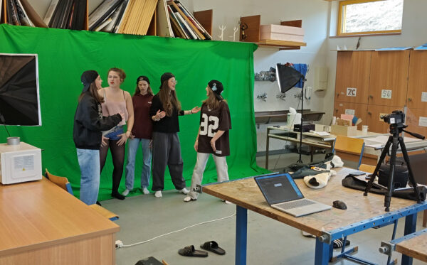 In diesem Kooperationsprojekt zwischen Musik- und Medienzweig, versuchten wir, zwei konträre Musikstile miteinander zu verbinden. Zunächst studierte die Gesangsgruppe der 5. Klasse ein äußerst sanftes und ruhiges Stück ein und song dieses im Tonstudio ein.