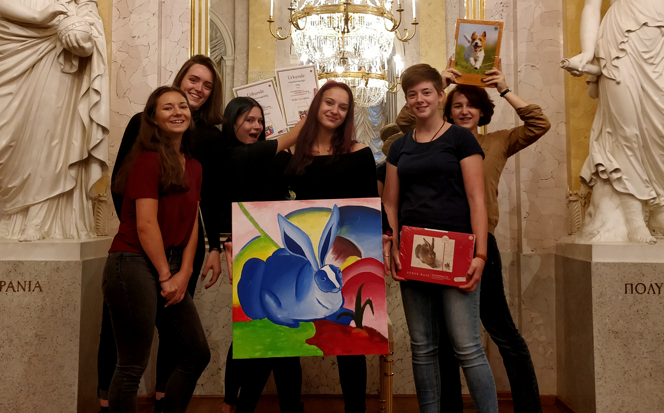 Im letzten Jahr wurde unsere Abstraktionsreihe zum Feldhasen von Albrecht Dürer beim Wettbewerb der Albertina mit dem Preis in der Kategorie “Oberstufe” ausgezeichnet. Heuer konnten unsere Schülerinnen das Motiv, mit dem sie beim Projekt “Styleswap” arbeiten wollten selbst wählen. Nicole Mülleder, die sich entschied Dürers Hasen im expressionistischen Stil von Franz Marc zu malen, wurde für ihre Arbeit heute in der Albertina mit einem Sonderpreis ausgezeichnet. Wir gratulieren sehr herzlich!