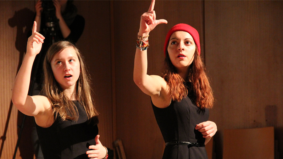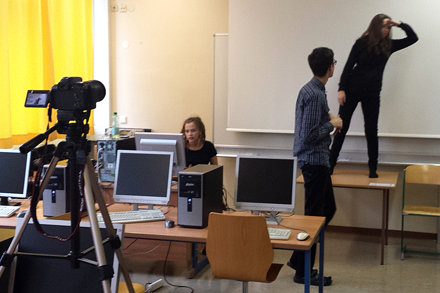 Den Schnitt realisierten wir dann mit Adobe Premiere und der Hilfe einer Tonaufnahme, die während der Proben in Berlin entstanden war. Die Tonspur des fertigen Videos zeichneten wir am 12. Februar 2015 bei der ersten öffentlichen Aufführung im Haus am Ring in Bad Leonfelden auf.