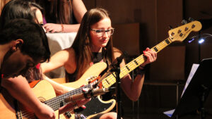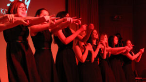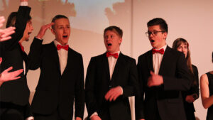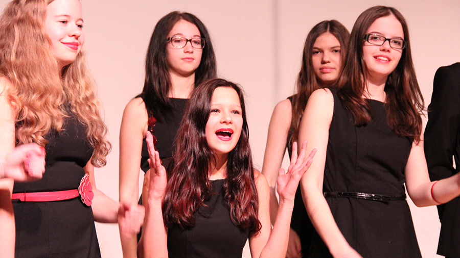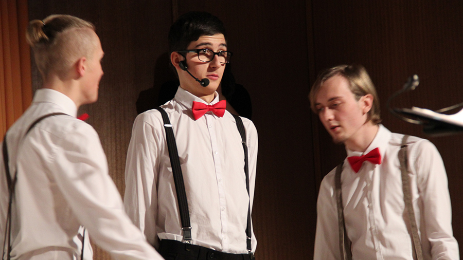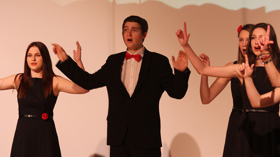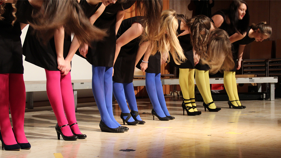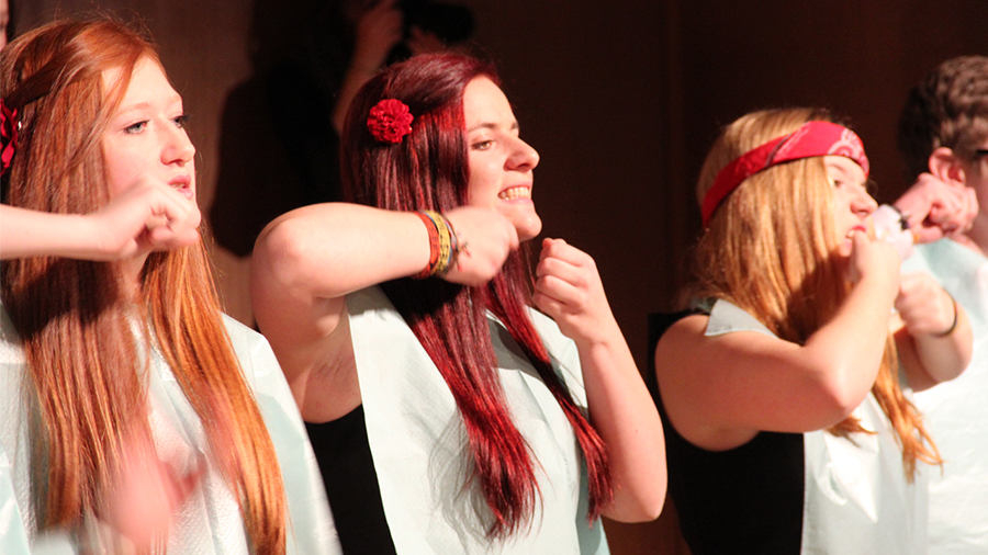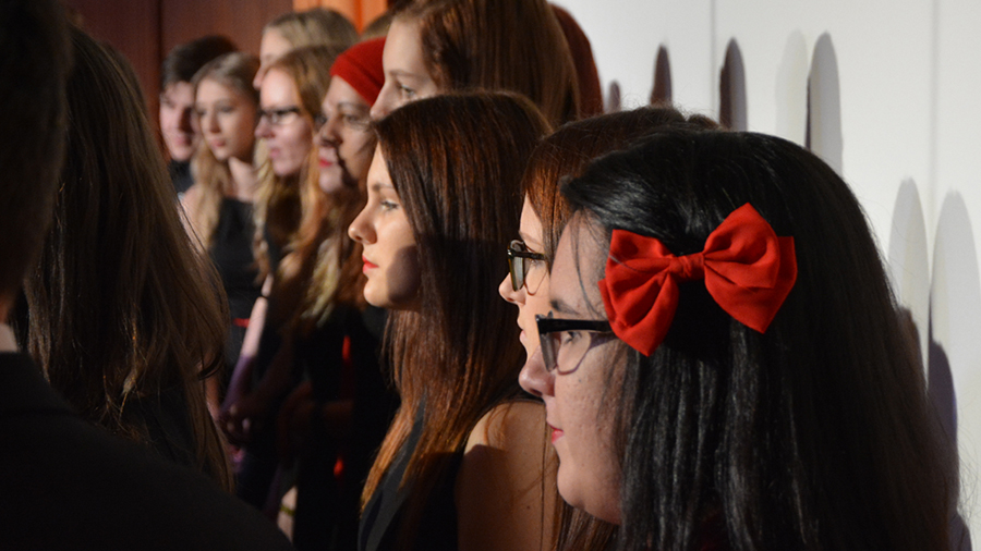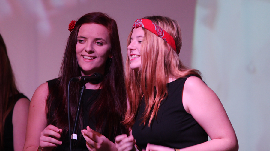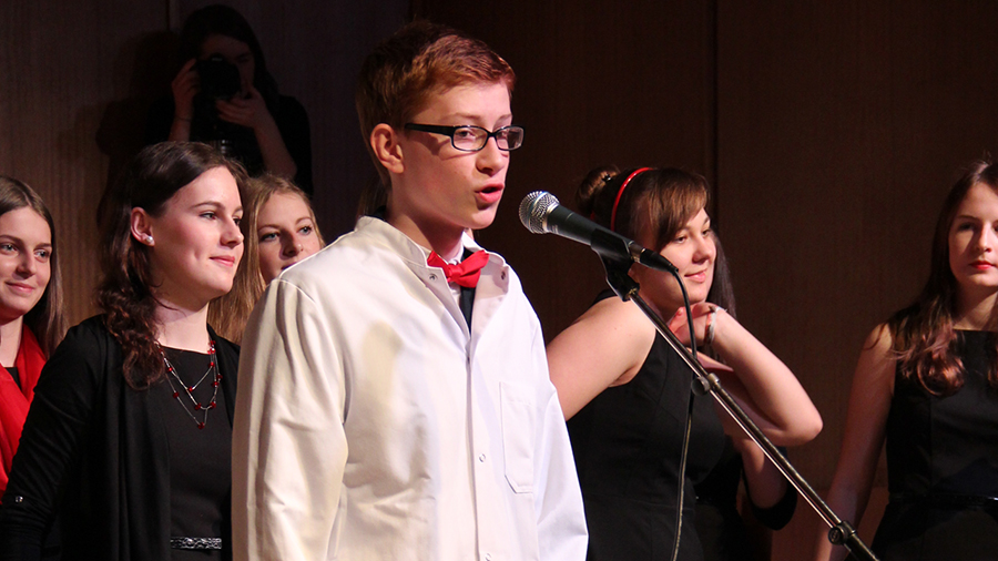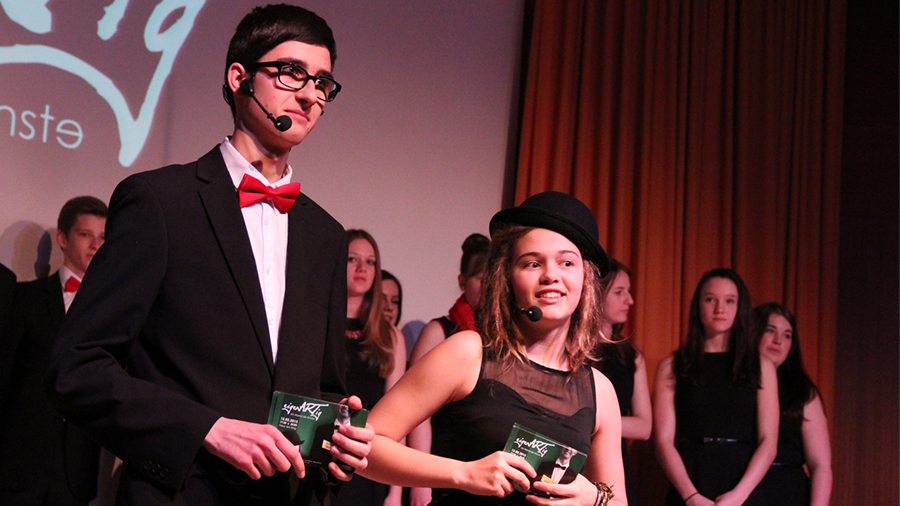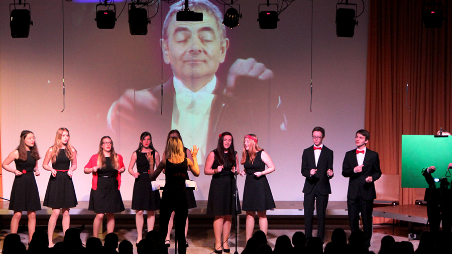 Der Song „Applaus, Applaus“ von „Sportfreunde Stiller“ war eine der ganz großen Nummern, die den gesamten Chor auf die Bühne brachten. Im WPG Mediendesign erstellte die 6A dazu passende Visuals.