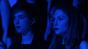Vor unserem großen Whiteboard führten die Schülerinnen hierfür, möglichst dunkel gekleidet, diverse Gesten aus. Diese Aufnahmen wurden anschließend in Adobe Premiere stärker kontrastiert und der Weißanteil transparent geschaltet. Übrig blieb eine schwarze Silhouette, die wir dann auf einen beliebigen Hintergrund setzen konnten. Hierbei handelt es sich um einen automatisch generierten Particle Flow aus After Effects.