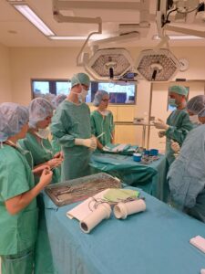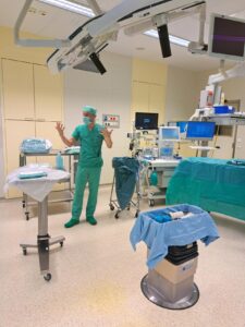 Ein besonderes Highlight war das Beisein bei einer Sectio caesarea (Kaiserschnitt) sowie die Anfertigung einer Knie-Endoprothese. Dabei wurde uns deutlich, wie entscheidend ein eingespieltes Team für den reibungslosen Ablauf in der Chirurgie ist. Besonders beeindruckend war für uns, dass für Notfälle, wie eine dringende Sectio, jederzeit ein OP vollständig vorbereitet bereitsteht und eine OP nach nur wenigen Sekunden nach Eintreffen des/der Patient:in starten kann.