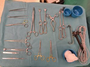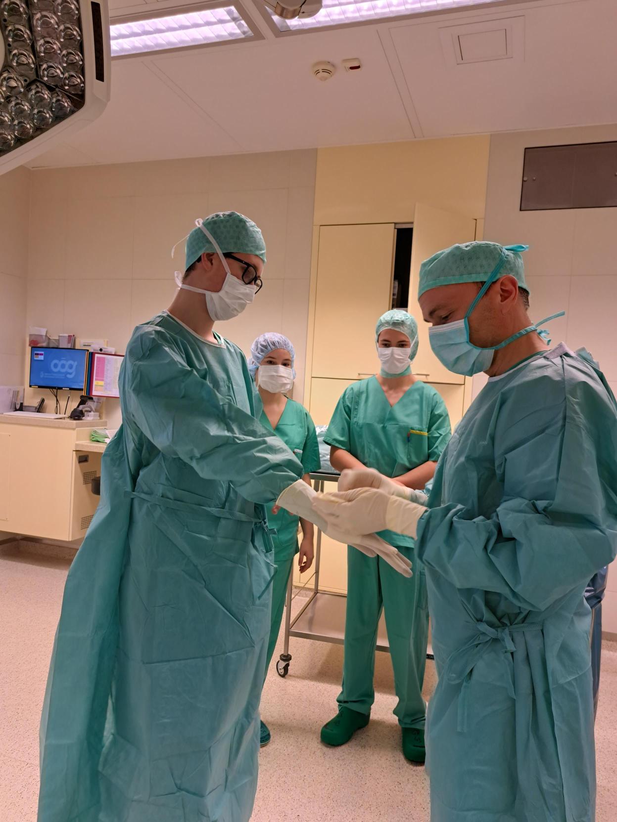 Neben dem Beobachten der Operationen durften wir chirurgische Instrumente kennenlernen und uns gegenseitig steril einkleiden. Dabei wurde uns bewusst, wie routiniert und präzise das Personal im OP-Bereich arbeitet.