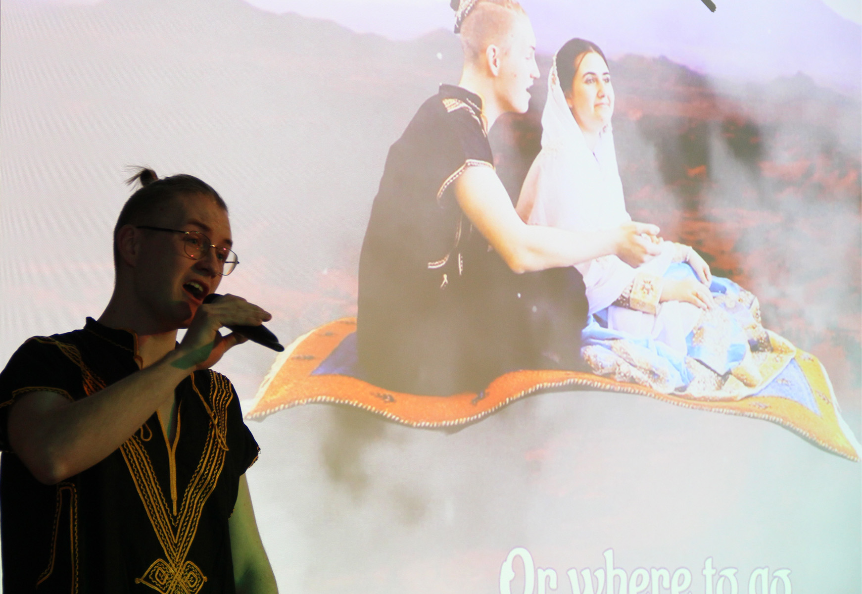 Bei diesem Projekt handelt es sich um eine Kooperation von Musik- und Medien/Kunstzweig. Der Song aus dem Film Aladdin wurde hierfür im Tonstudio produziert und anschließend in einer Greenbox effektvoll in Szene gesetzt.