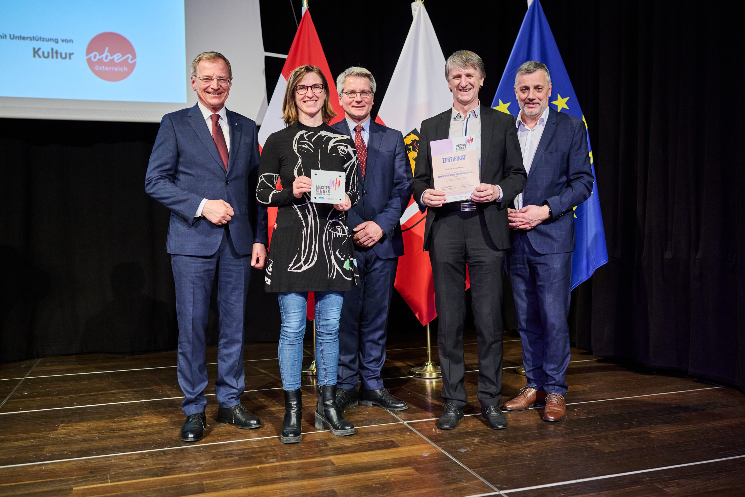 Landeshauptmann Mag. Thomas Stelzer überreichte das Zertifikat an Schulen als Auszeichnung für ihre vorbildlich qualitätsvolle Arbeit im Bereich der chorischen Jugendarbeit rückwirkend für das vergangene Jahr. Das von der Bildungsdirektion für OÖ, dem Chorverband OÖ und dem Land OÖ unterstützte Projekt honoriert die gute Zusammenarbeit von Schüler:innen, Chorleiter:innen und dem schulischen Umfeld.