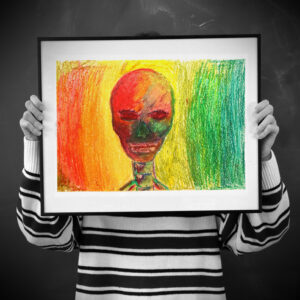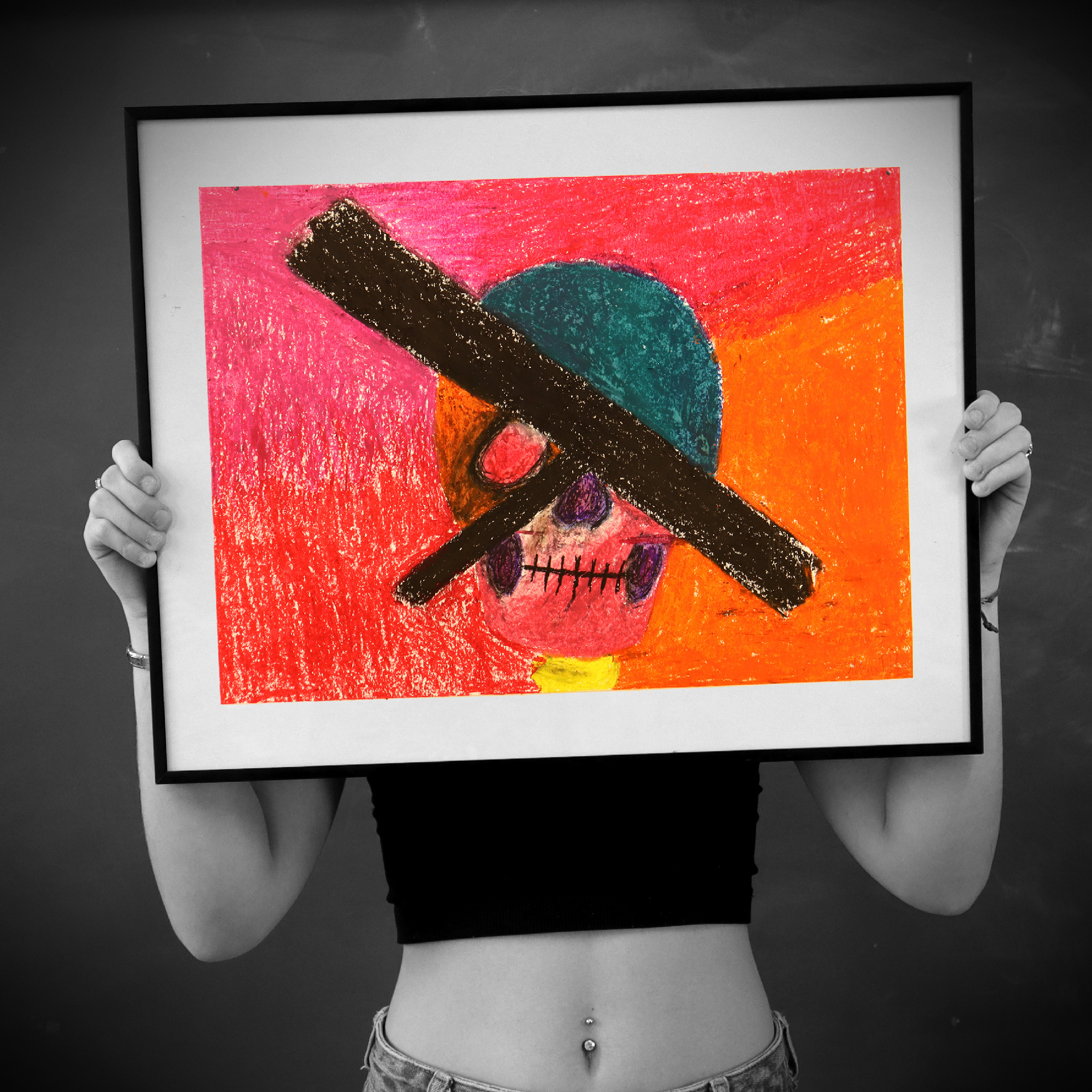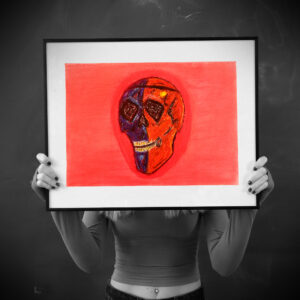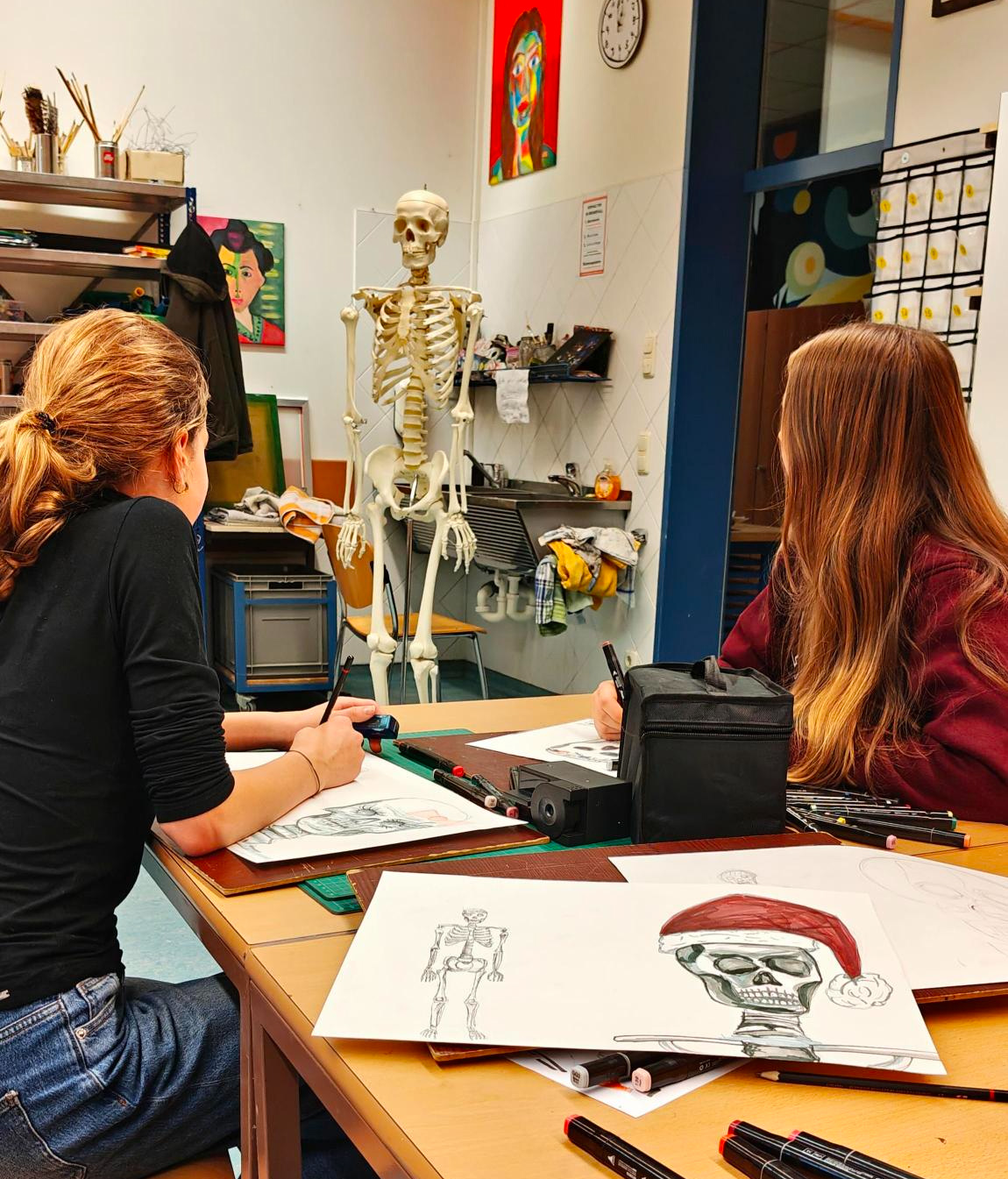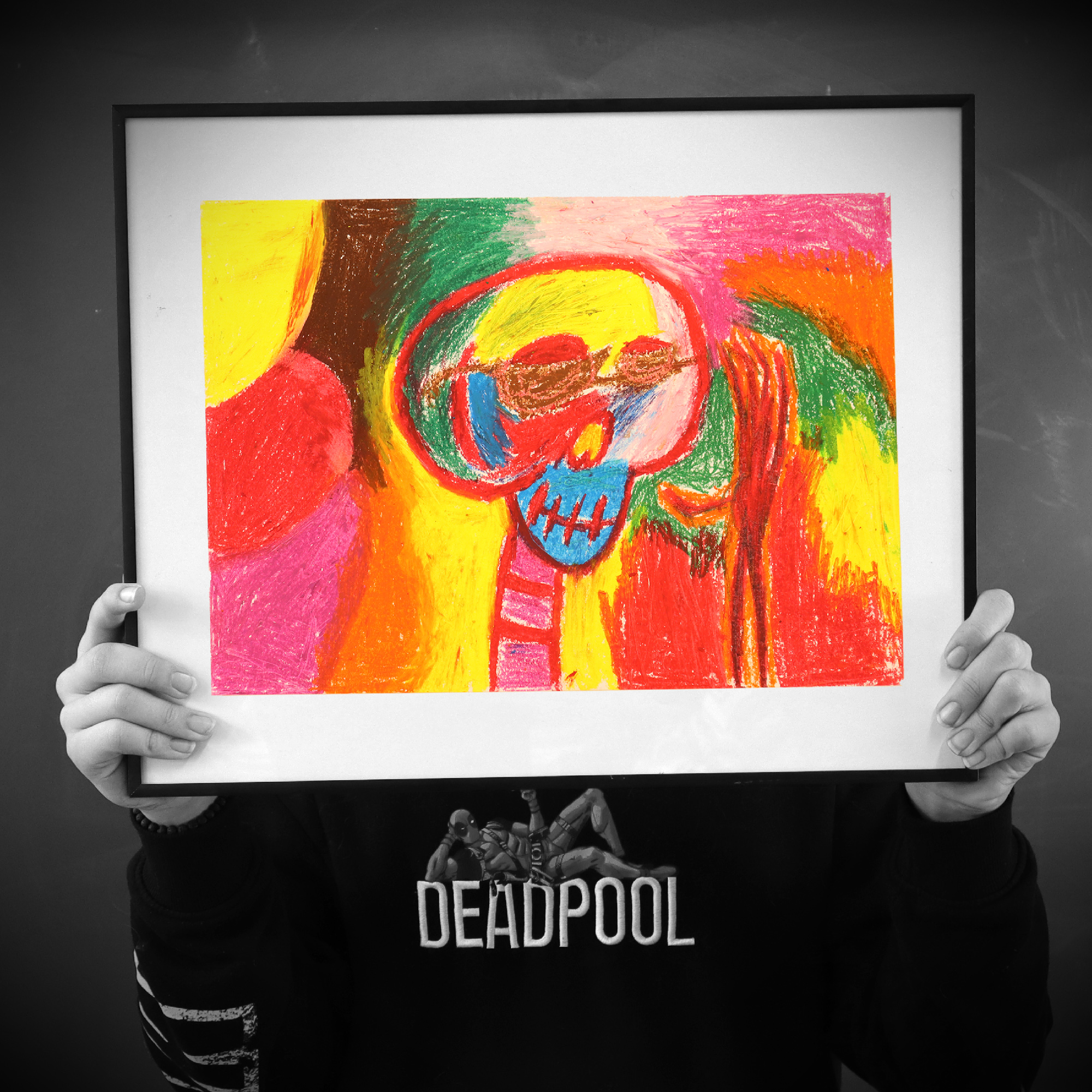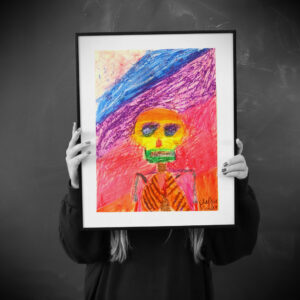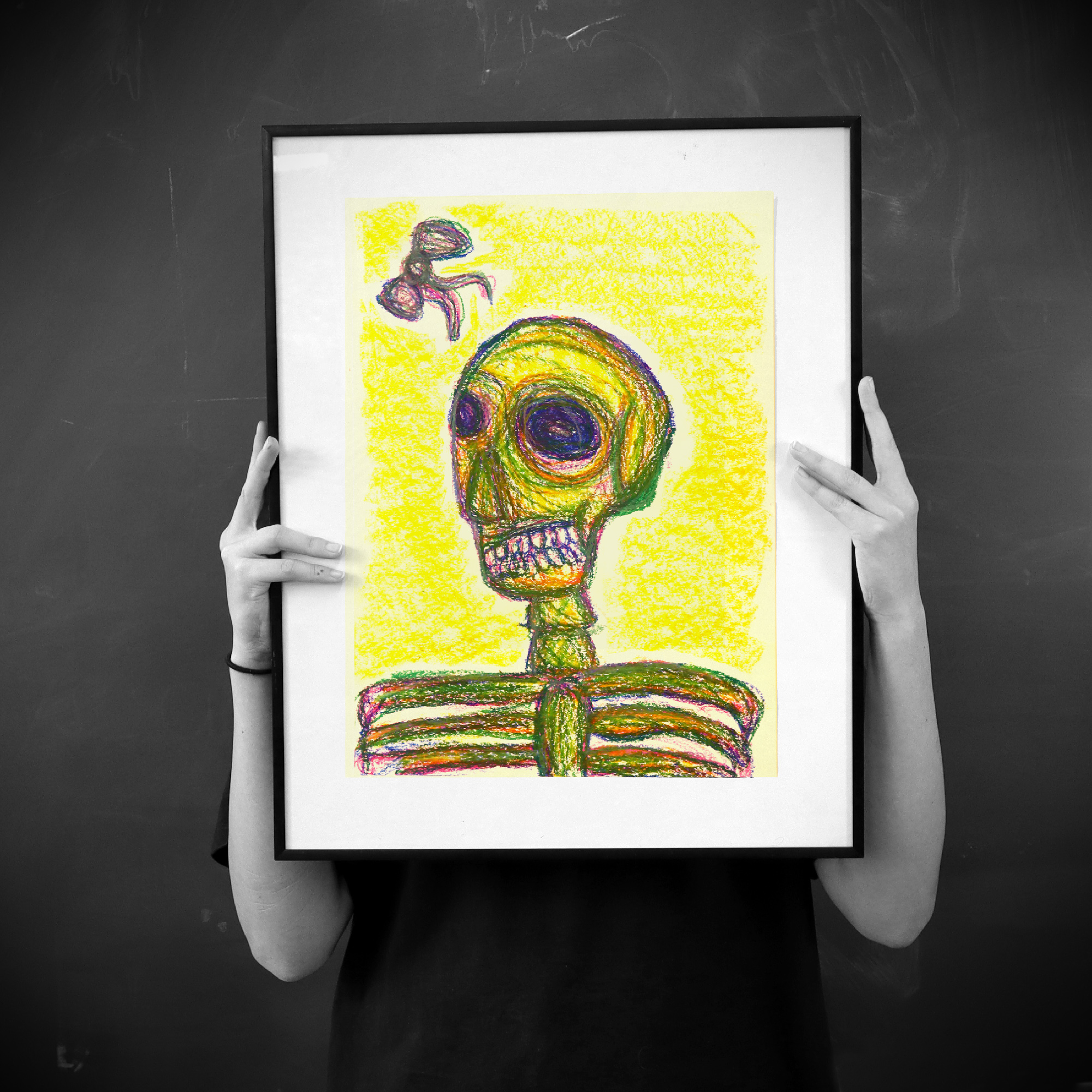 Dieses Projekt entstand eigentlich mehr aus Zufall. Nachdem wir im Zuge von Anatomieübungen auch Studien an einem Skelett angefertigt hatten, probierten wir – quasi als Kontrapunkt zu den exakten Beobachtungen und feinen Umsetzungen auf dem Papier – mit großen Bewegungen, schwungvolle Spuren in satten, lebendigen Farben zu Papier zu bringen, die weniger den Anspruch haben, die Realität abzubilden, als einfach eine expressive Interpretation des Themas darzustellen. Hierfür nutzten wir mit Ölkreiden absichtlich ein wenig exaktes Werkzeug, das uns half die Linie loszulassen und stärker in Flächen zu denken.
