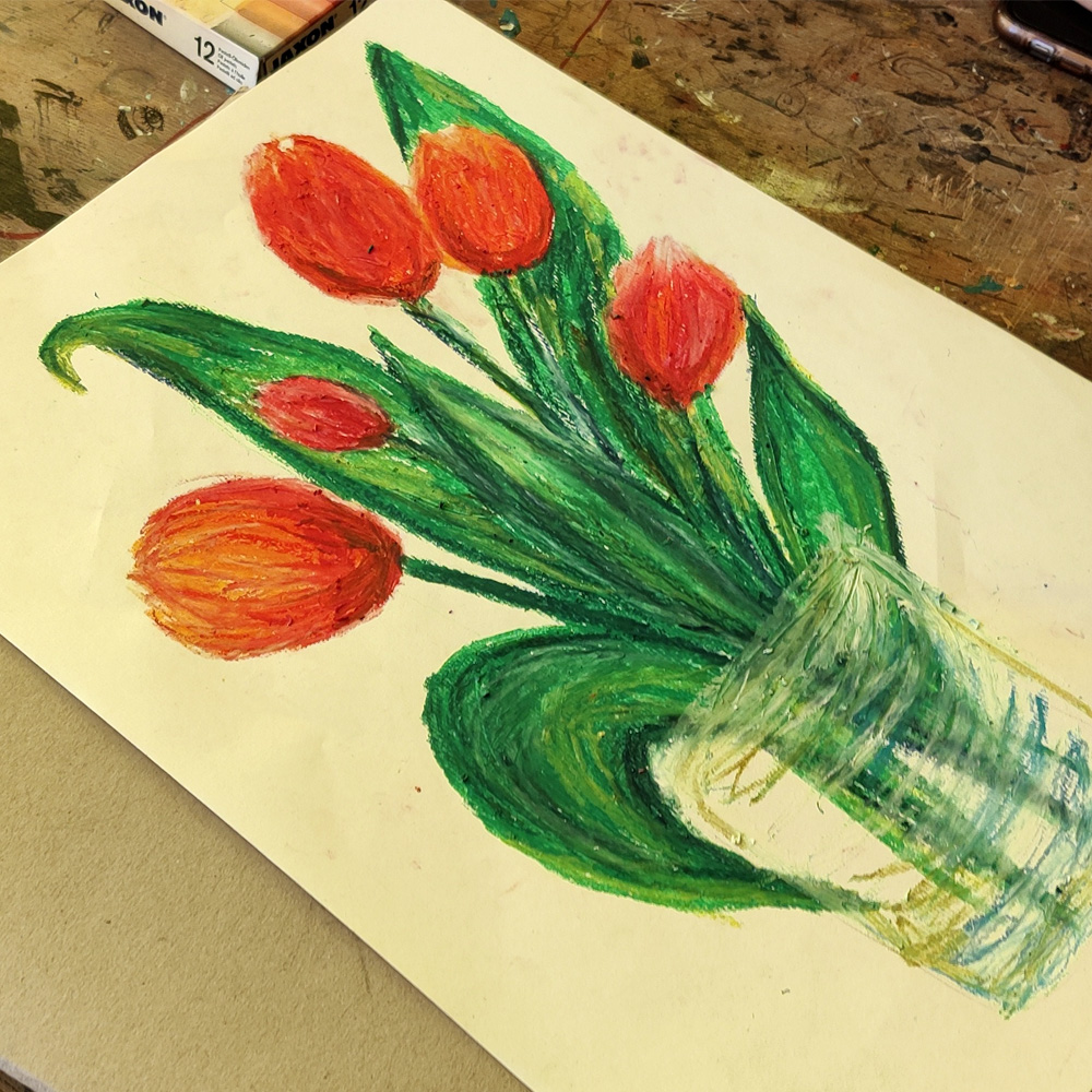 In diesem spannenden Kunstprojekt haben unsere Schülerinnen und Schüler ihre künstlerischen Fähigkeiten mit Ölkreide unter Beweis gestellt. Mit leuchtenden, expressiven Farben entstanden weitenwirksame Naturstudien, Stillleben und Portraits.