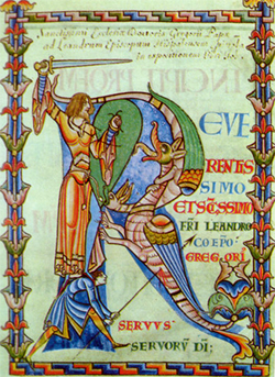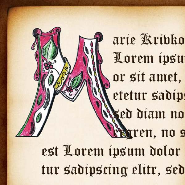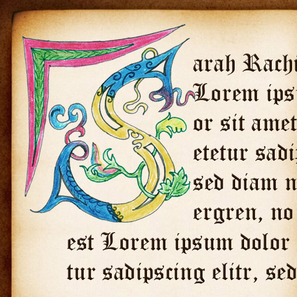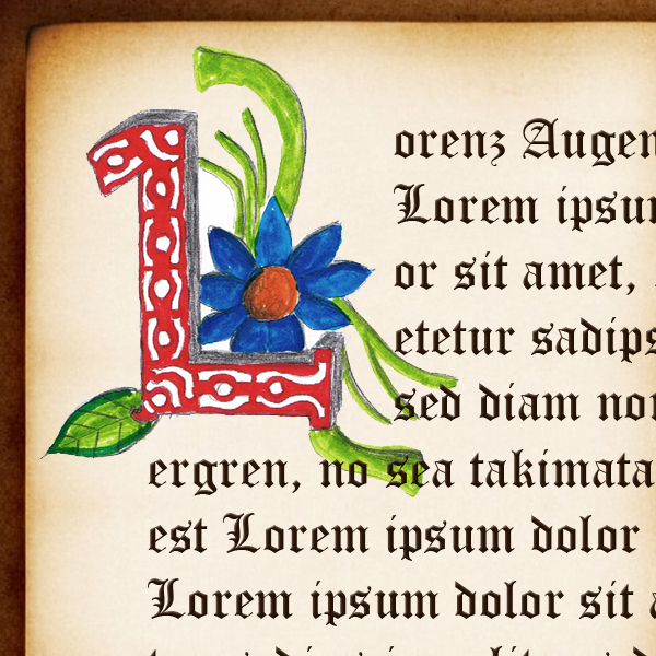 Hierbei handelt es sich eigentlich nicht um eine reguläre Arbeit. Im Zuge eines Referates von Ildiko Balogh und Sarah Rachinger zum Thema „Kunst der Romanik“ zeigten die beiden ein Beispiel zu typischer Romanischer Buchmalerei. So wurde speziell der erste Buchstabe, die Initiale, reich verziert und dominant gestaltet.