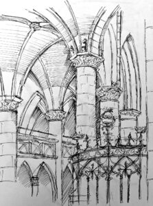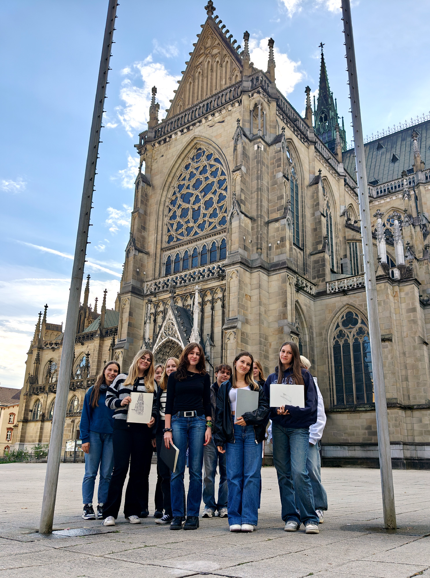 Während der Besichtigung hatten die Schülerinnen und Schüler die Gelegenheit, die beeindruckenden Details des Doms in ihren Skizzen festzuhalten. Besonders die filigranen Glasfenster, die imposanten Säulen und die kunstvollen Verzierungen des Hauptaltars weckten das Interesse der jungen Künstler und Künstlerinnen. Mit viel Engagement und Kreativität setzten sie die architektonischen Besonderheiten in ihren Zeichnungen um.