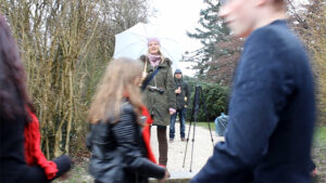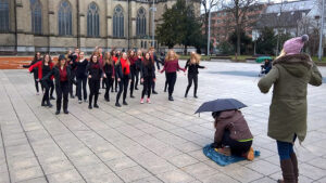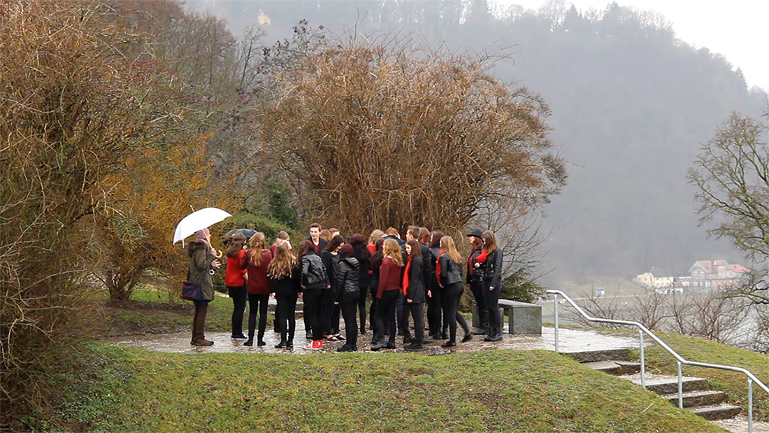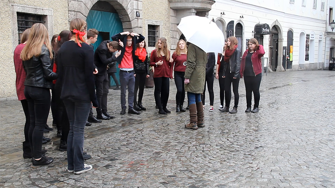 Das alles wurde festgehalten von den Medienzweig- Schülerinnen der 8C, die ihr bestes taten, trotz des völlig verregneten Drehtages in Linz, ein zur Stimmung der Musik passendes Video zu produzieren.