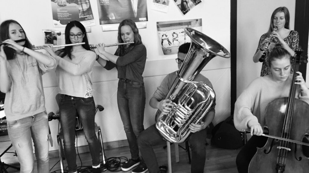 Unser Ensemble besteht aus den Schüler/innen der 6. Klasse des Musikzweigs unter der Leitung ihrer Musiklehrerin Barbara Wolfmayr. Wir verwenden für unseren Beitrag Ausschnitte aus unterschiedlichen Stücken von Strauss Vater und Sohn und erzählen damit eine Geschichte aus dem Alltag der Jugendlichen. Wir verwenden dafür unsere Stimmen und alle Instrumente, die in unserer Klasse vertreten sind. Inspiriert vom Genre Oper ist uns auch die szenische Umsetzung unserer musikalischen Geschichte von großer Bedeutung, darum haben wir uns dafür verschiedene Choreographien einfallen lassen, die wir beim Musizieren ausführen.