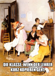 Als Jahres-Einstiegsübung in Mediengestaltung haben unsere SchülerInnen heuer ein ungewöhnliches Projekt umgesetzt: Mit einem Augenzwinkern und viel Fantasie wurden Bilder aus der Kunstgeschichte in moderne Memes verwandelt. Die Aufgabe bestand darin, klassische Werke mit pointierten Texten zu versehen, um humorvolle Einblicke in ihren Schulalltag zu geben – von Mathefrust bis Pausenhofdrama.
