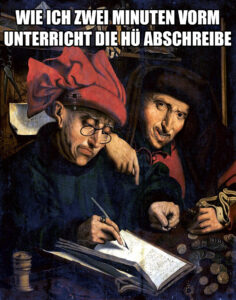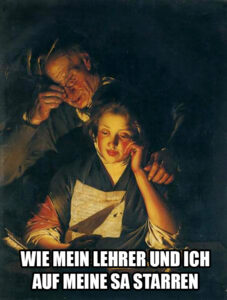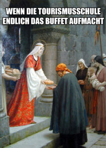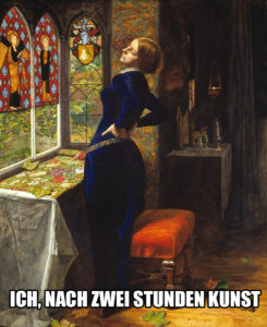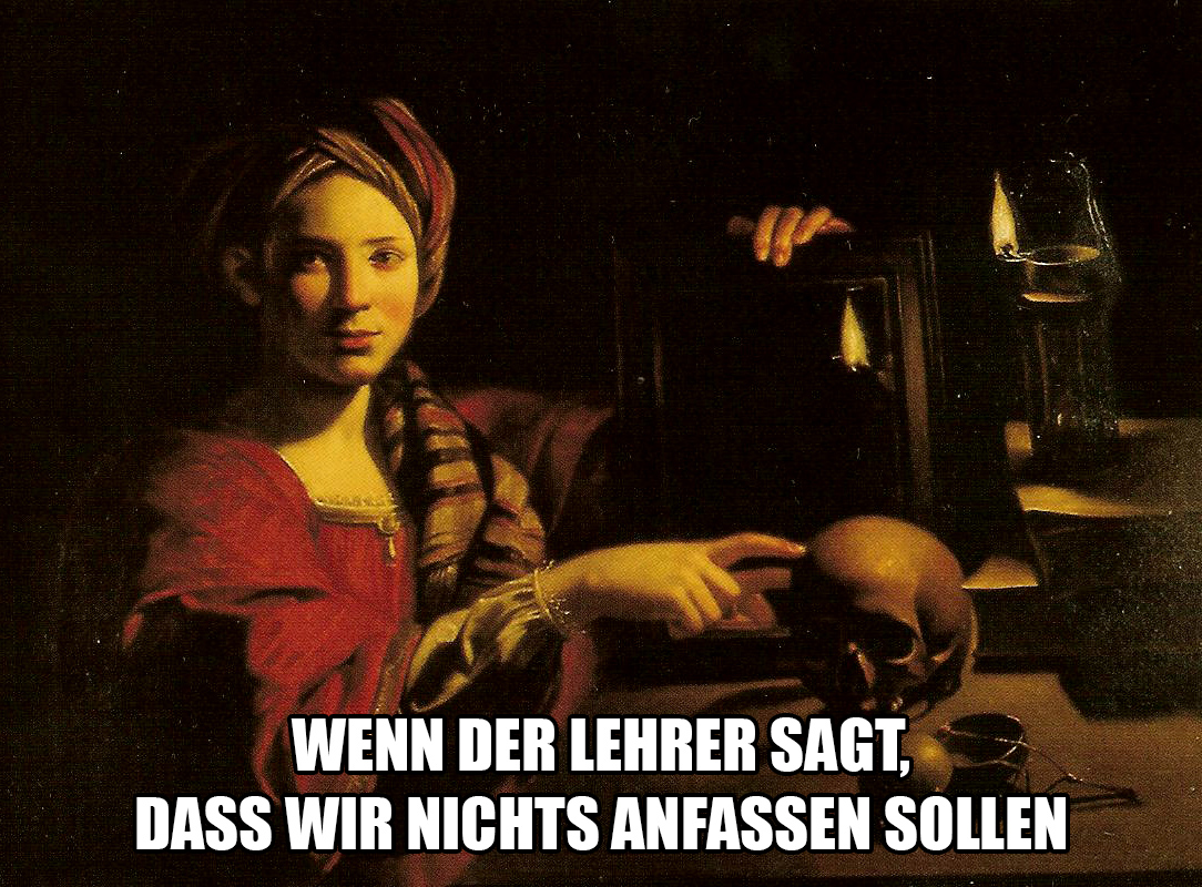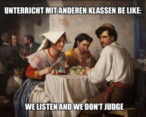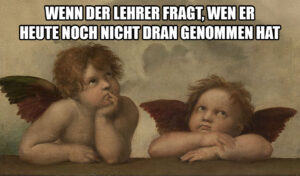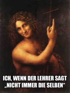 Eine kleine Auswahl aus den entstandenen Memes sehen Sie hier. Sie zeigen nicht nur ein kreatives Verständnis für Bildsprache und Kontext, sondern auch, wie lebendig und relevant Kunst sein kann. Ein Projekt, das zum Schmunzeln anregt und gleichzeitig zum Nachdenken über die Verbindung von Tradition und Gegenwart einlädt.
