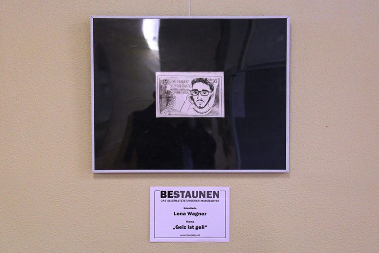 Die letzte Aufgabe, der sich die Schülerinnen und Schüler des Zweigs Medien/Kunst der Klasse 8C stellten, gab keinerlei Technik oder Arbeitsweise vor. Ein zufällig gezogenes Thema sollte auf kreative Art und Weise bearbeitet werden. Die Ergebnisse vielen dabei ausgesprochen unterschiedlich aus.