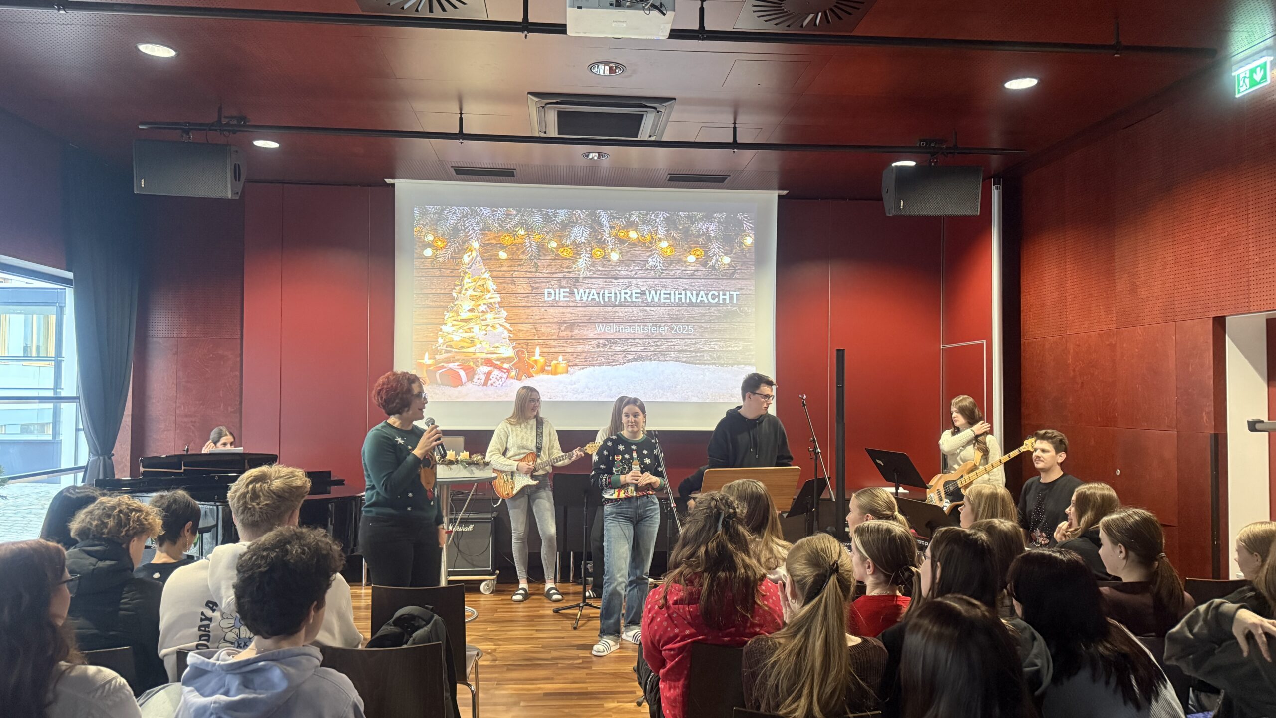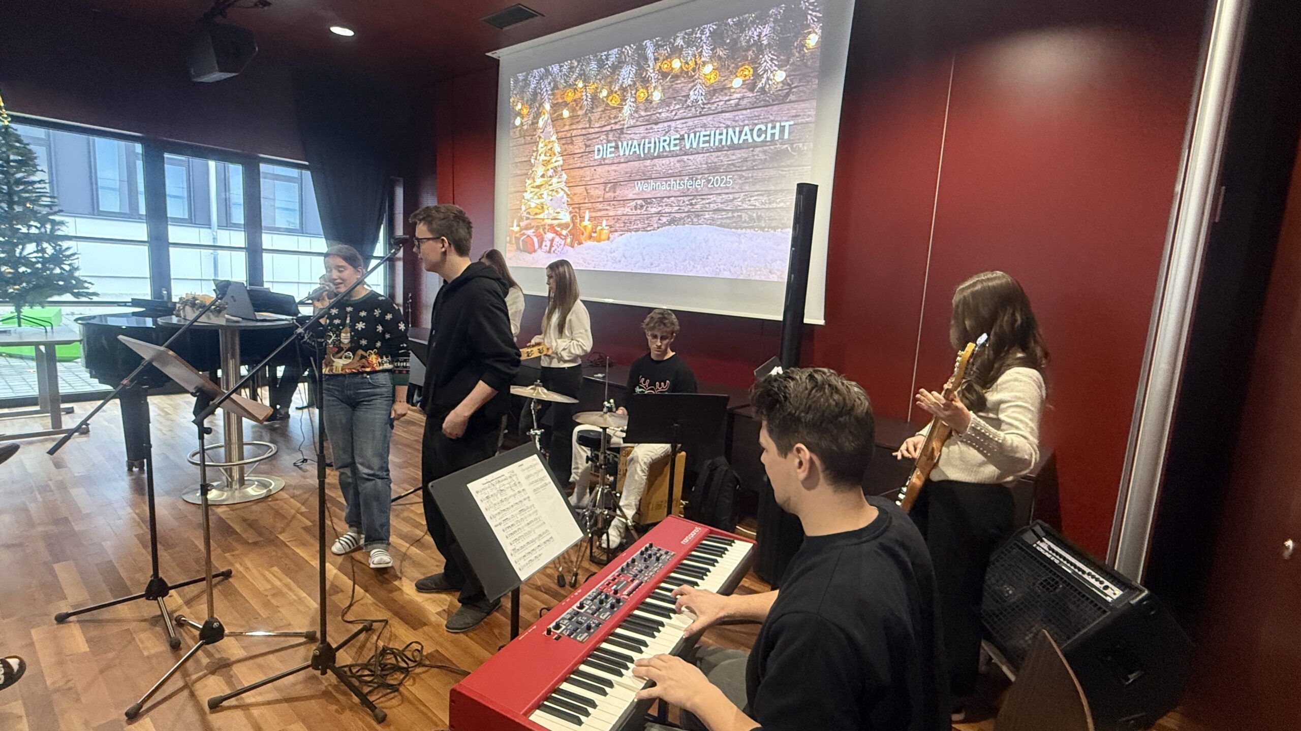 Am letzten Schultag vor den Ferien fand wieder die traditionelle Weihnachtsfeier statt: Nach einem besinnlichen Teil, gestaltet von den Religionslehrerinnen mit freundlicher Unterstützung der Musiker:innen, kochte die Schüler:innen-Vertretung leckeren selbstgemachten Punsch. So kann man die anstrengenden letzten Wochen definitiv gemütlich ausklingen lassen!