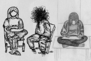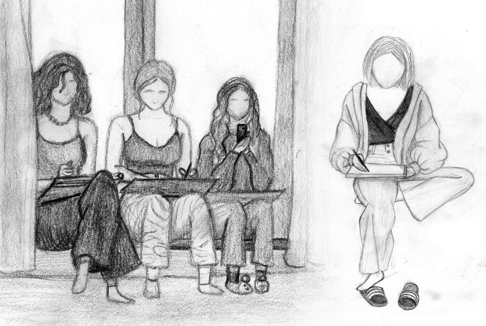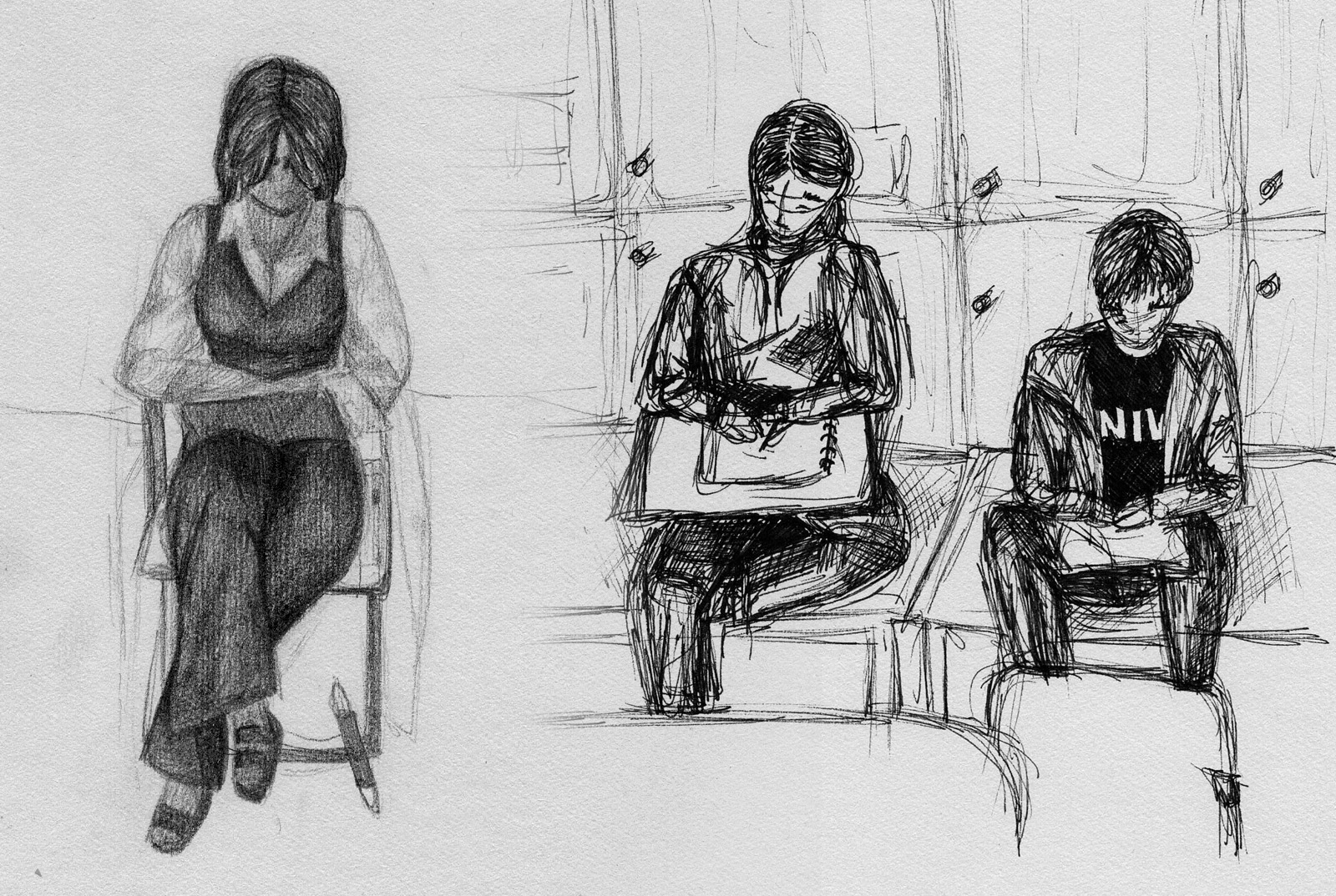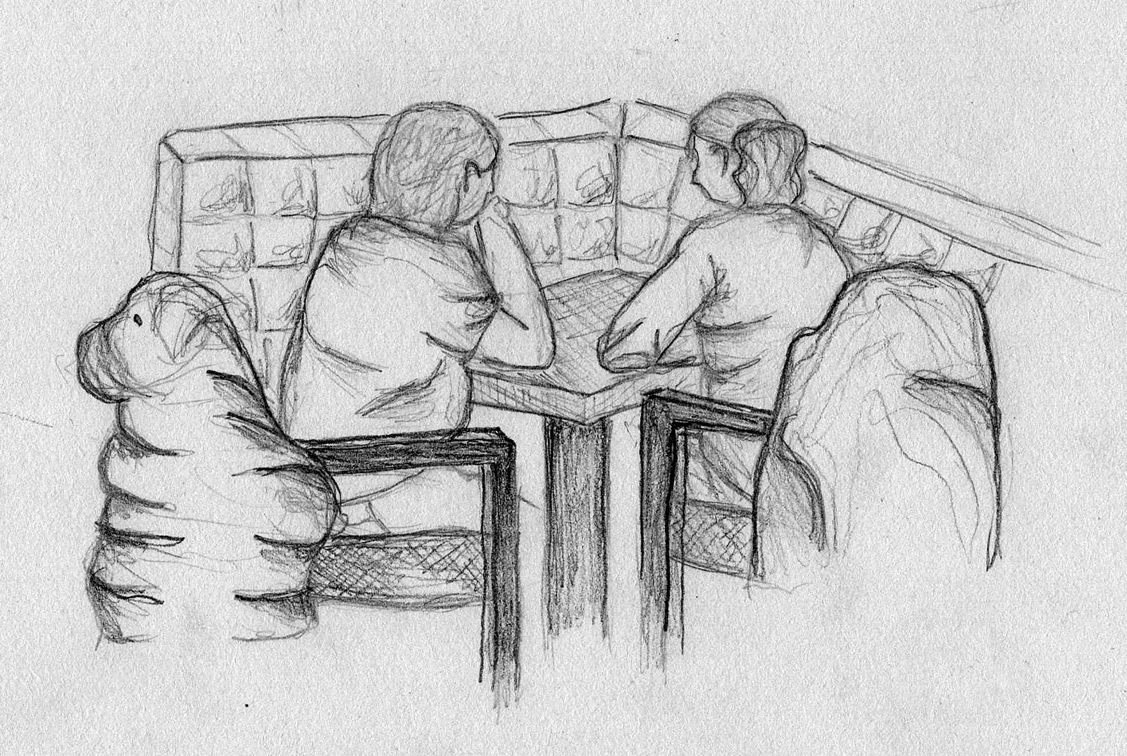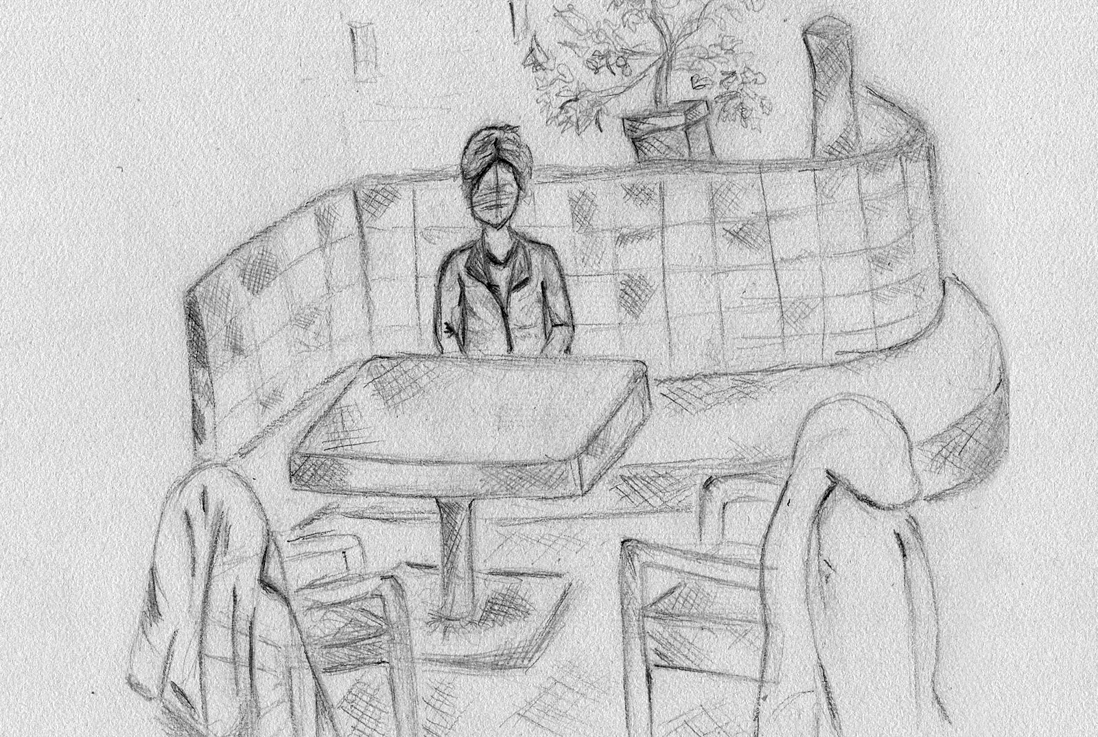 Nachdem wir uns intensiv mit der Darstellung von Raum und der menschlichen Figur auseinander gesetzt hatten, wagten wir uns ins Cafehaus um Milieustudien anzufertigen. Die Herausforderung bestand darin, die räumliche Situation und gleichzeitig die anwesenden Personen darzustellen. Alles unter einem gewissen Zeitdruck, da sich nicht voraussehen ließ wie lange die Gäste am Tisch bleiben würden.