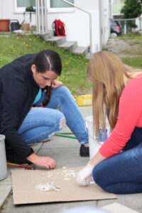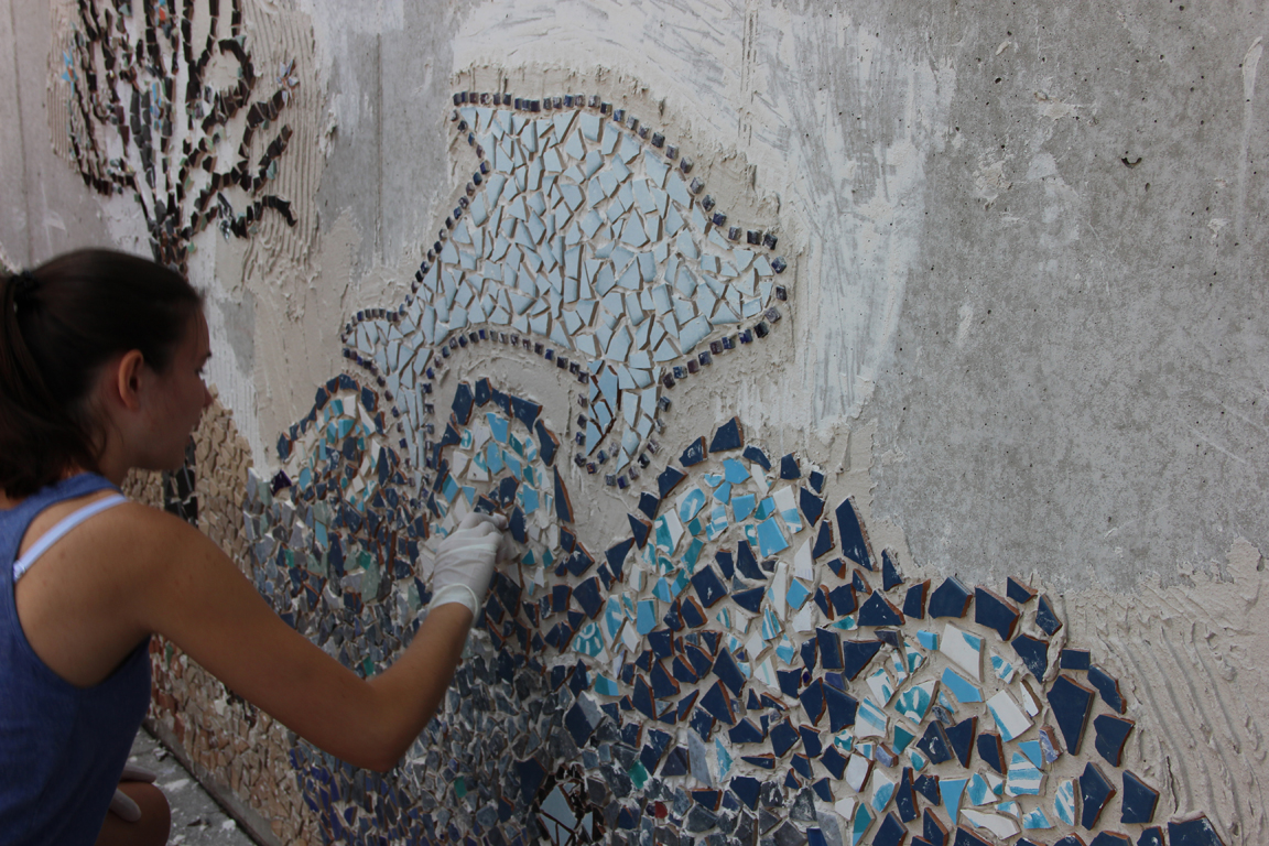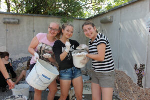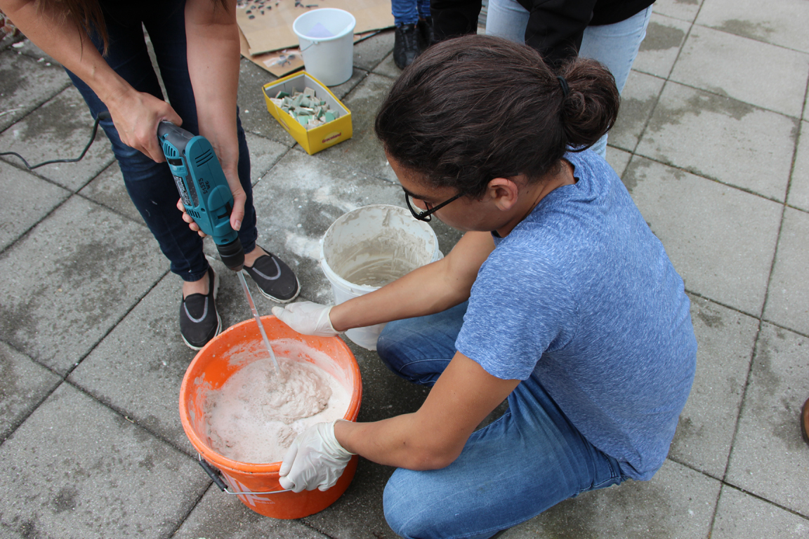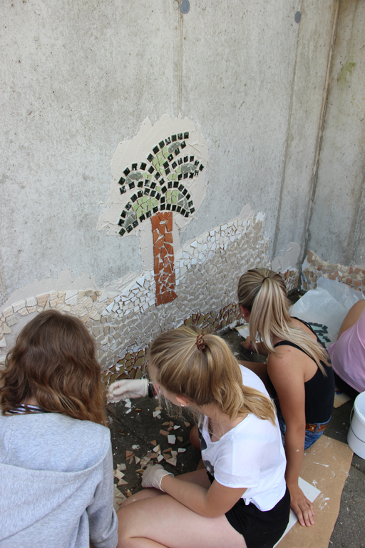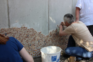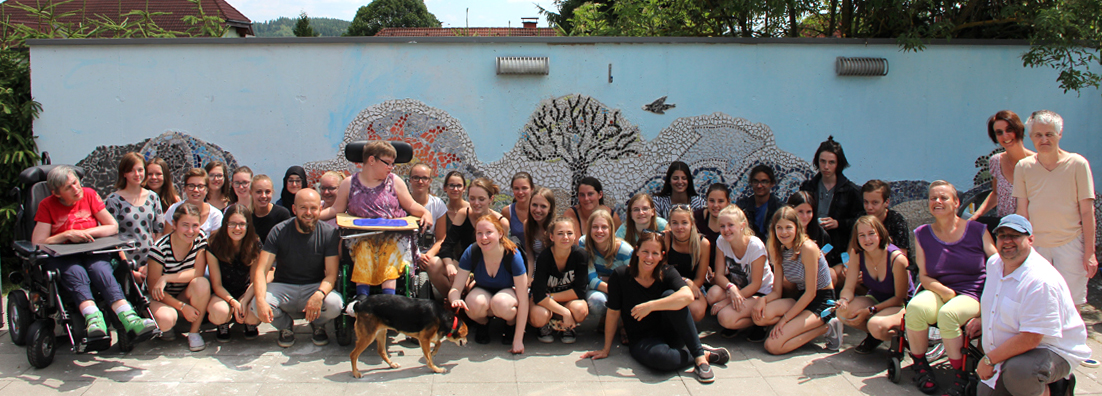 Auf Einladung des Wohnhauses des Diakoniewerks Bad Leonfelden, konnten die Schülerinnen und Schüler der 5A gemeinsam mit einigen Bewohnern und Bewohnerinnen eine Betonwand gestalten. Da wir in der 6.Klasse nach Barcelona reisen und diese Stadt voll von Mosaik-Kunstwerken von Antoni Gaudi ist, hatten wir die Idee, ein Mosaik zu entwerfen, um diesen Bereich attraktiver zu formen.