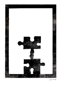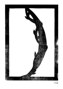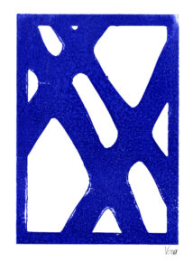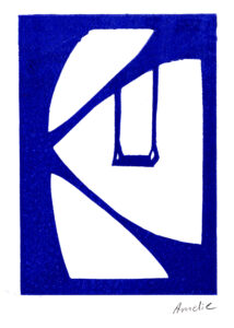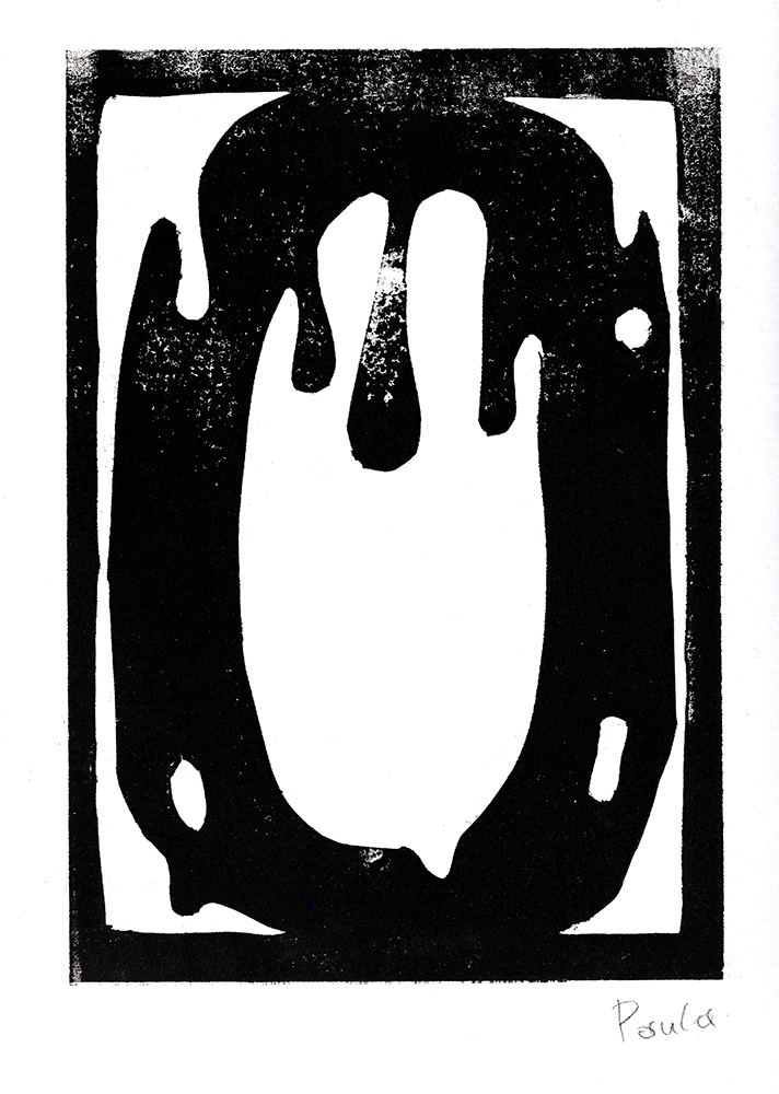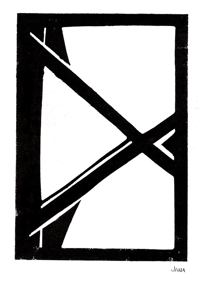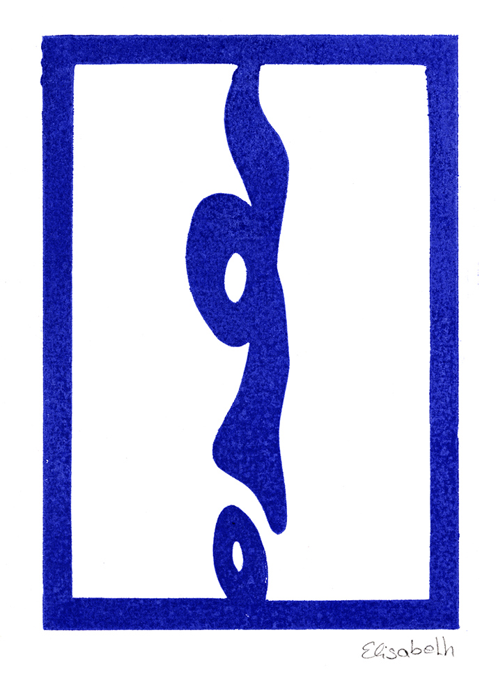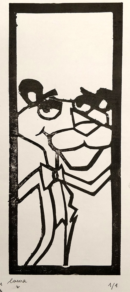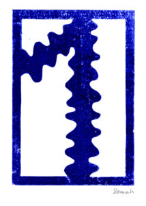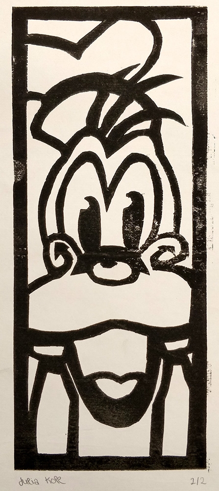 Bei der Beschäftigung mit den Vervielfältigungsmöglichkeiten von Kunstwerken betrachteten wir eingehend verschiedene Drucktechniken. Zunächst realisierten wir einen Papierschablonendruck. Hierfür wurde aus einem schmalen Streifen Papier ein Druckstock geschnitten.
