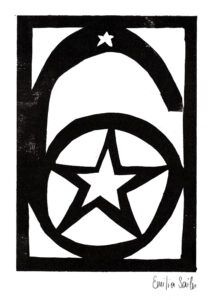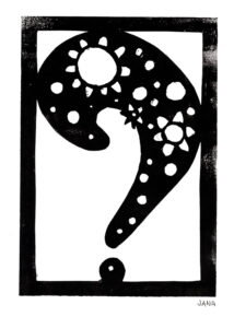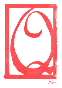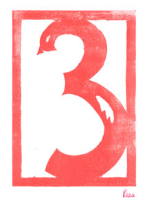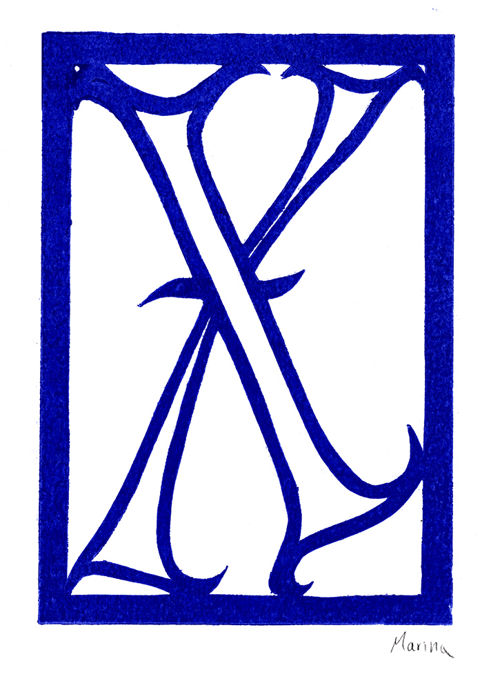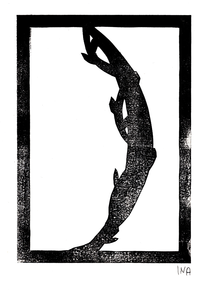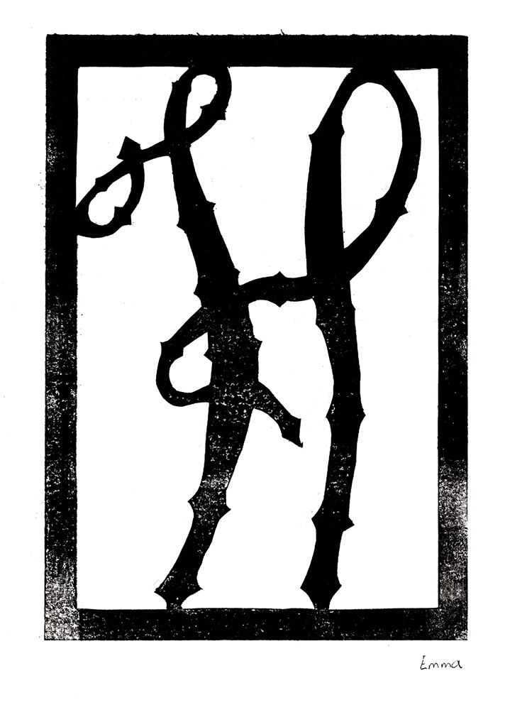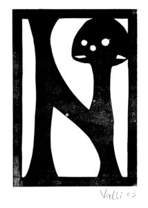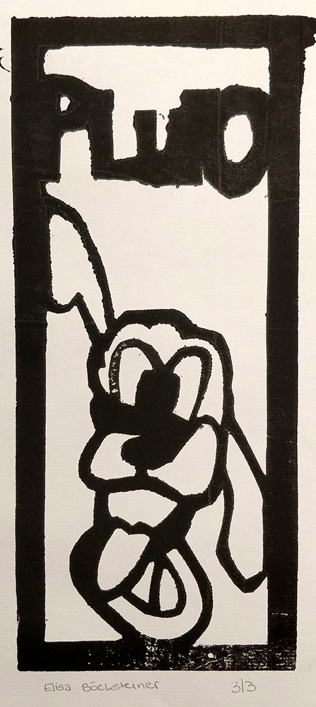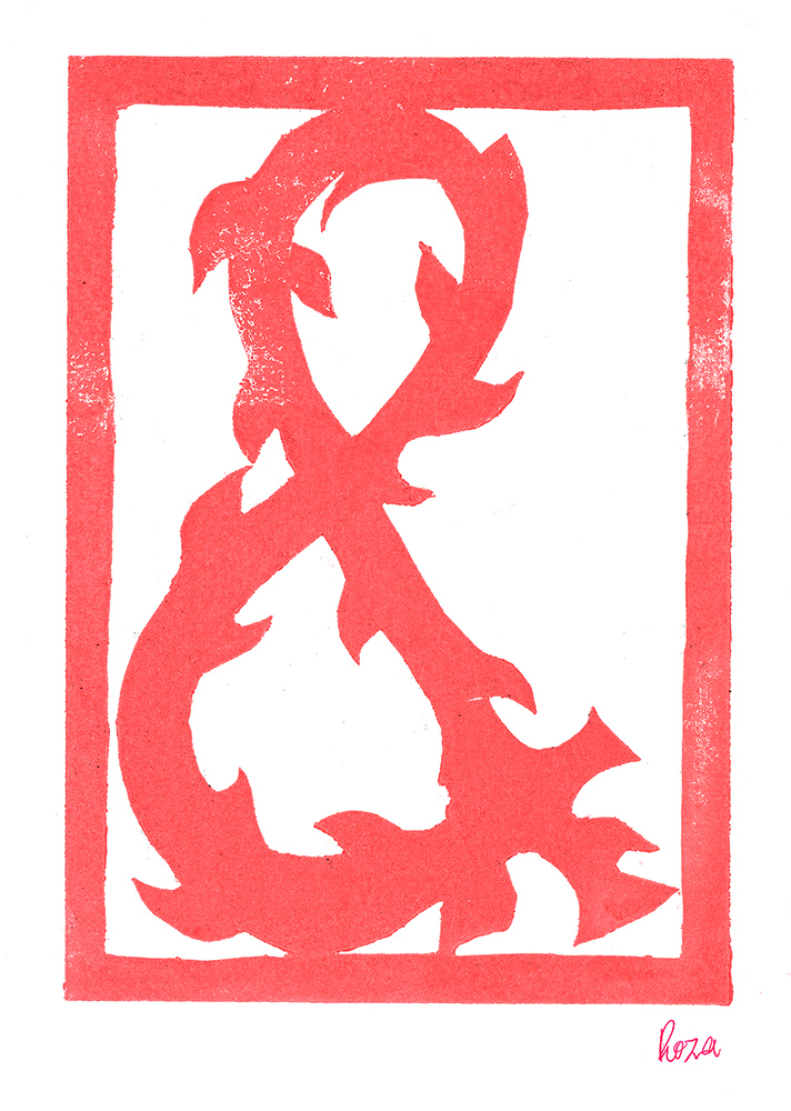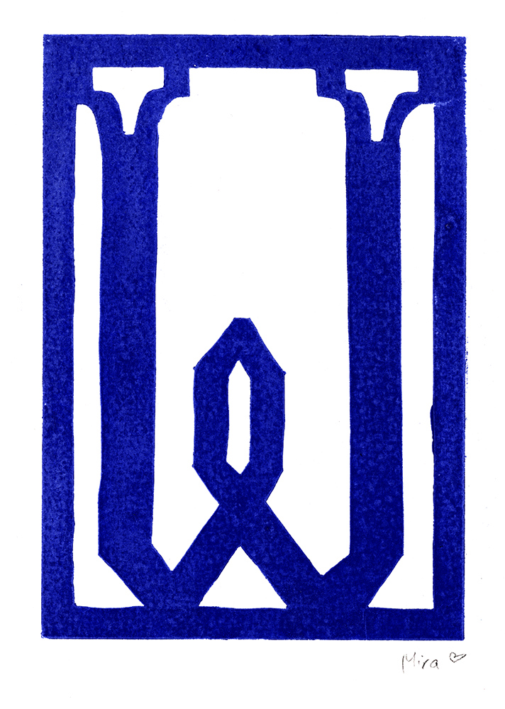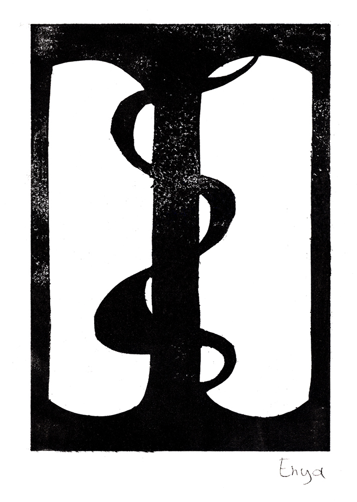 Den Papierschablonendruck haben wir auch eingesetzt um unser eigenes Alphabet zu erstellen. Jeder Schüler und jede Schülerin hat zwei Zeichen übernommen und diese nach dem Vorbild der Initialen in Romanischen Buchmalereien aus einem Papierstreifen ausgeschnitten um diesen dann durch die Druckerpresse zu walzen.