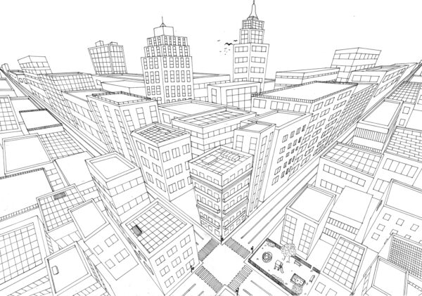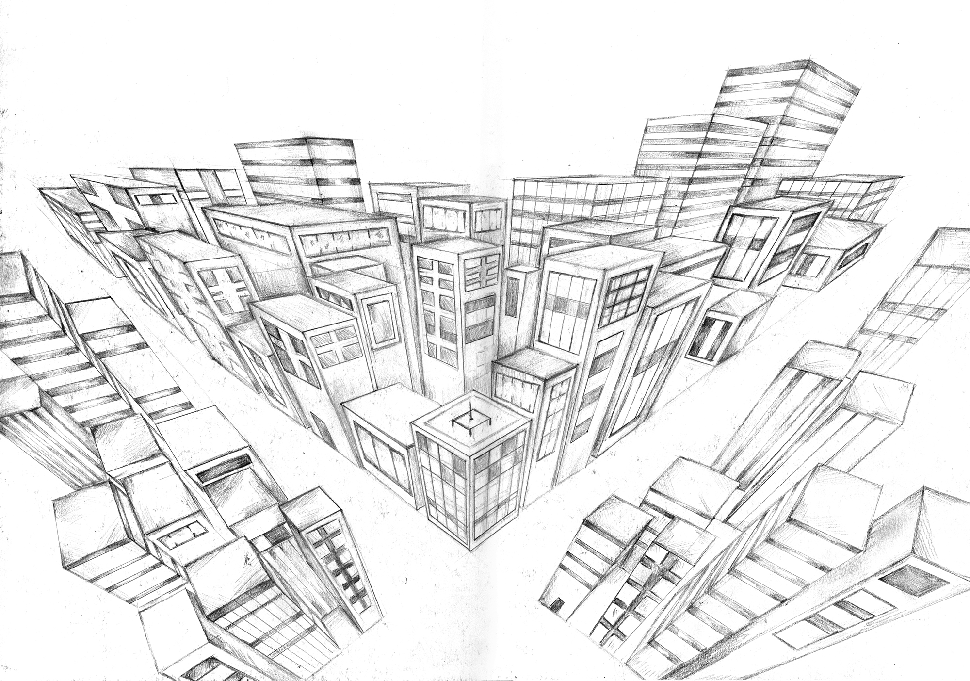 Besonders beeindruckend wirken Stadtansichten mit drei Fluchtpunkten. Diese Beispiele lassen erahnen wie viel Genauigkeit, Geduld und Feingefühl nötig ist um eine komplette Stadt in dieser Form zu Papier zu bringen.