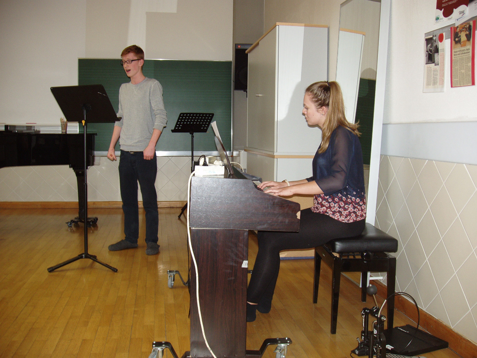 In diesem Schuljahr haben die Schülerinnen u. Schüler der Musikklassen die Möglichkeit, ihr Können vor Publikum zu präsentieren. Dieser Tage fanden die ersten dieser Präsentationen im Beisein von Lehrern und Schülern statt. Wir konnten uns vom hohem Ausbildungsniveau ein Bild machen.