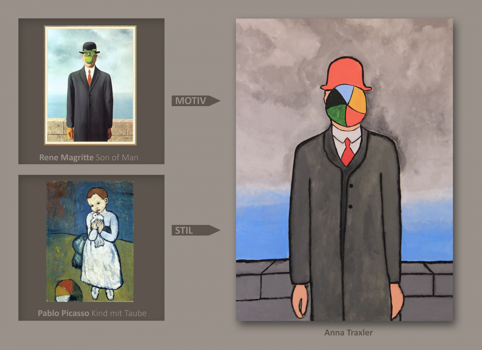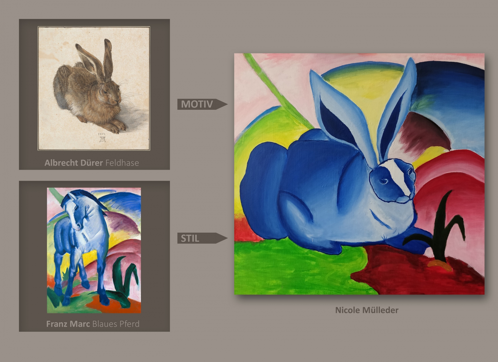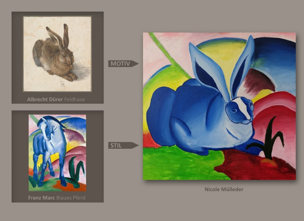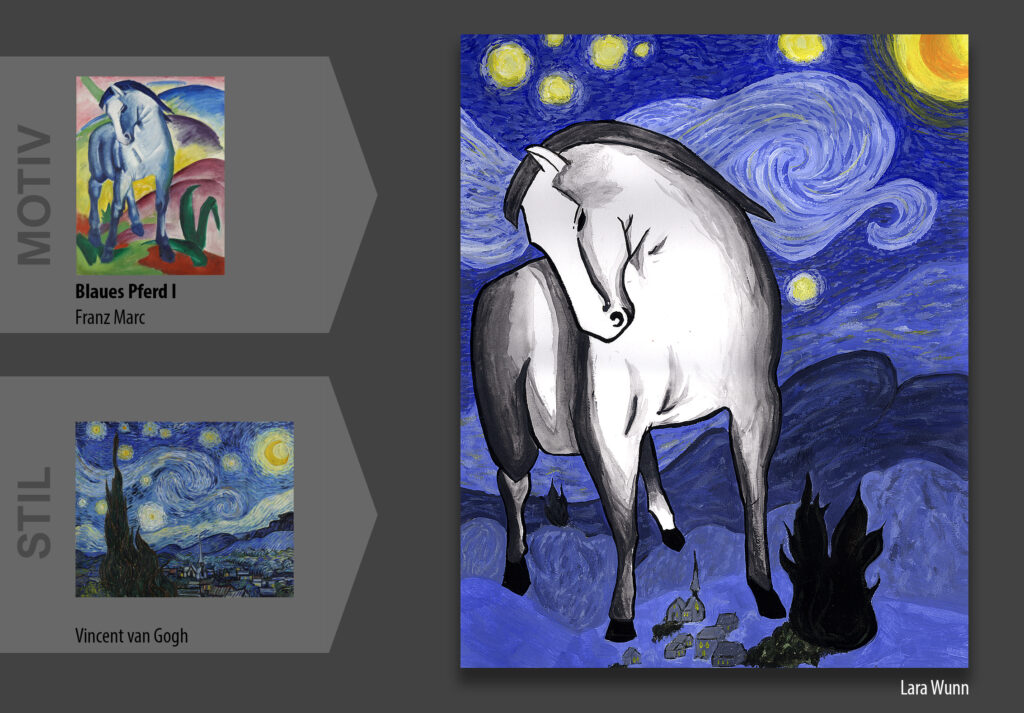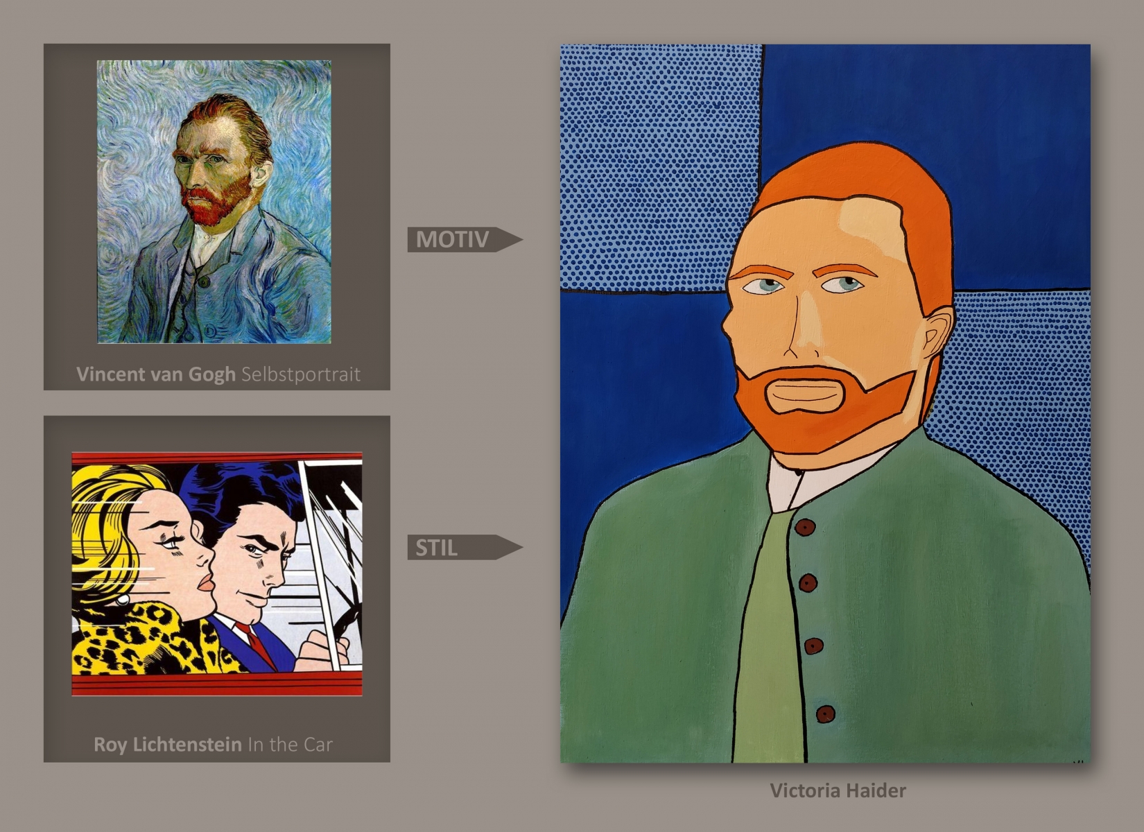 Mit Fragen dieser Art haben sich die Schülerinnen und Schüler der 7A auseinander gesetzt. Die Aufgabe bestand darin, ein bekanntes Werk aus der Kunstgeschichte zu wählen und das gleiche Motiv im Stil eines Künstlers einer anderen Stilepoche umzusetzen. Ein spannendes Experiment mit oft überraschendem Ausgang.