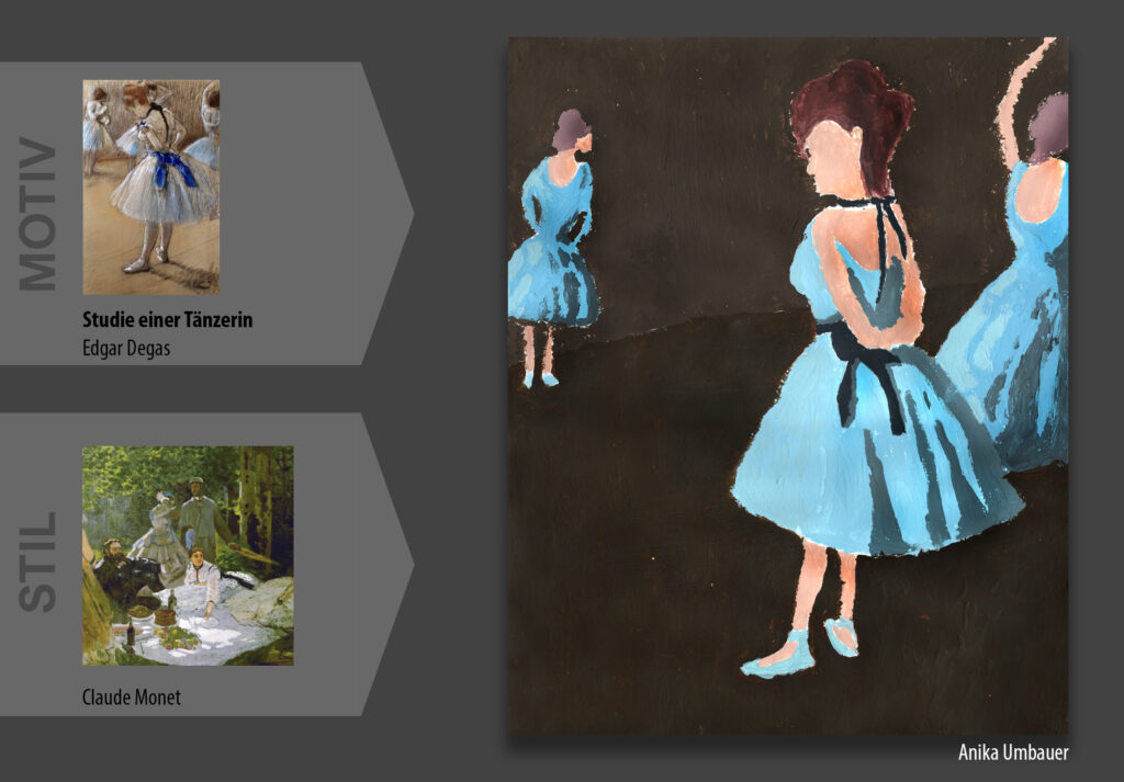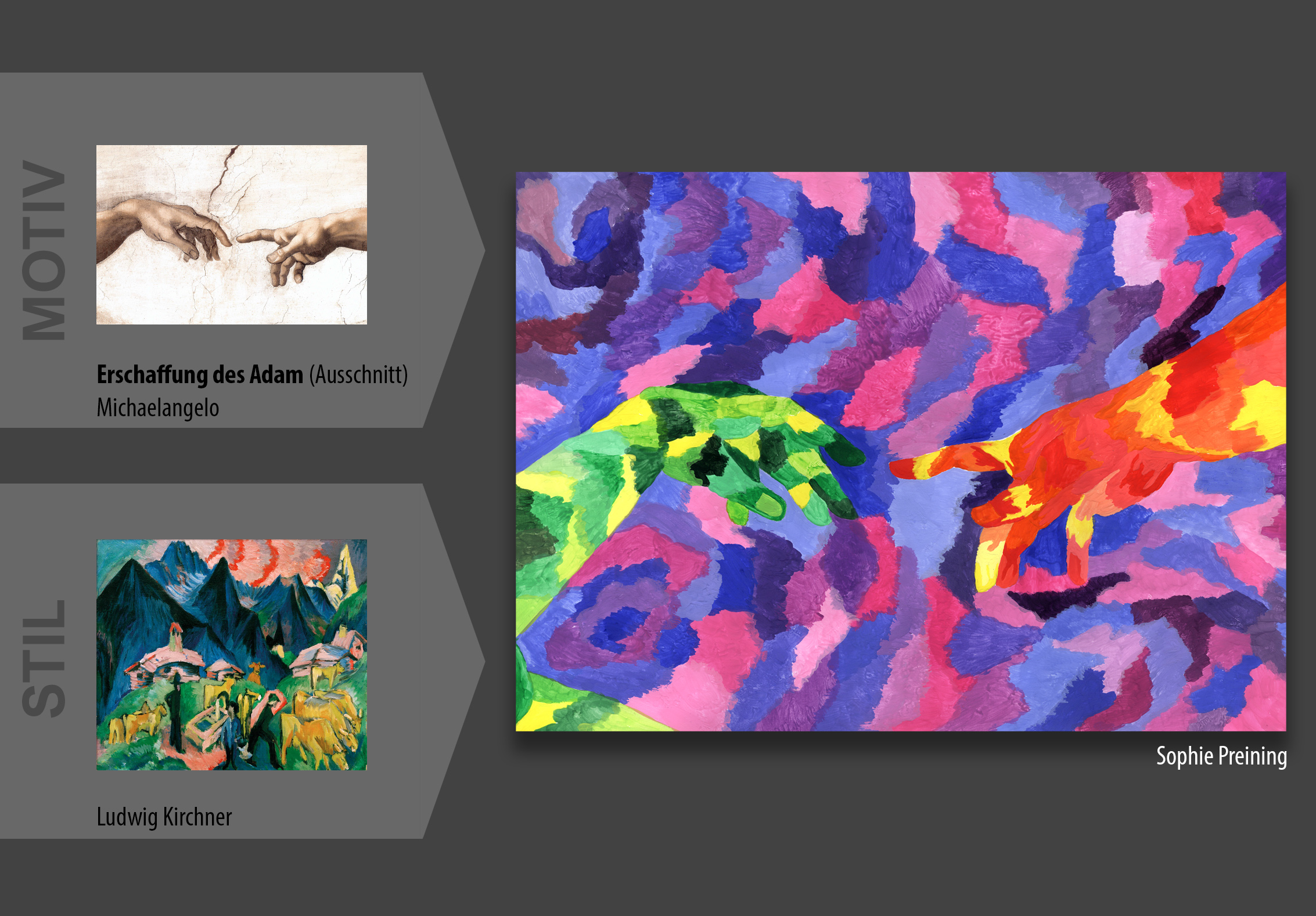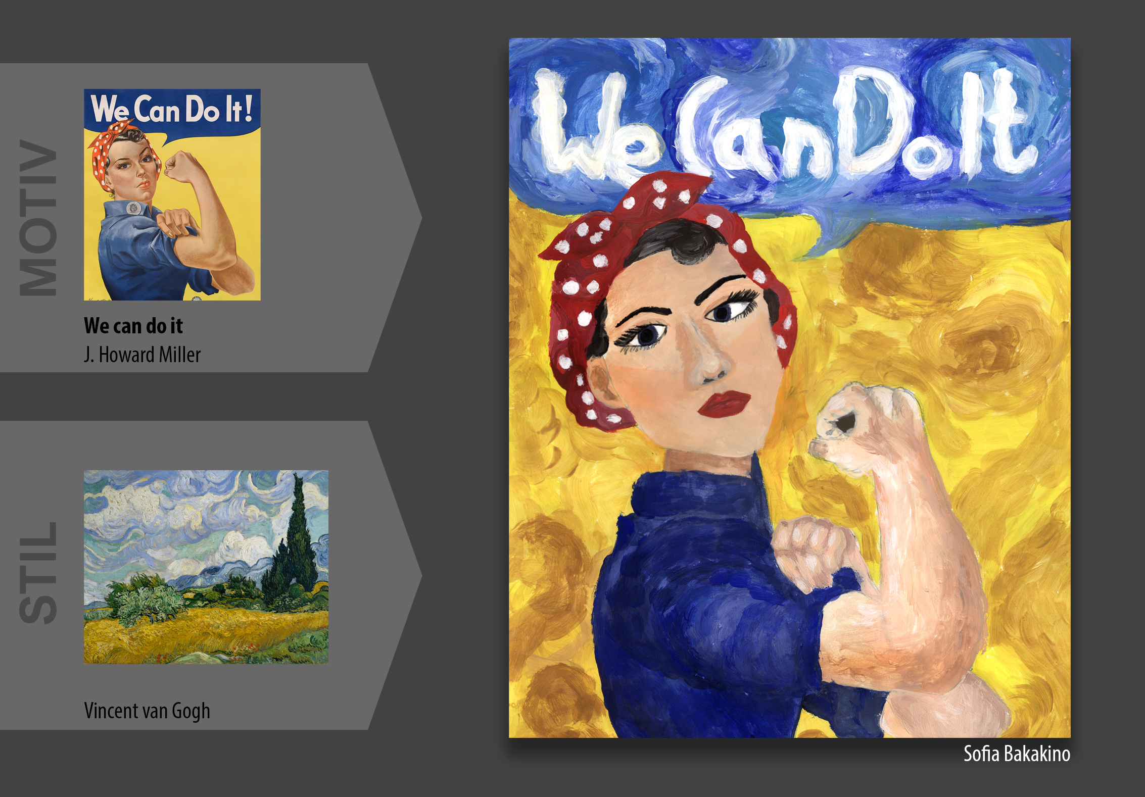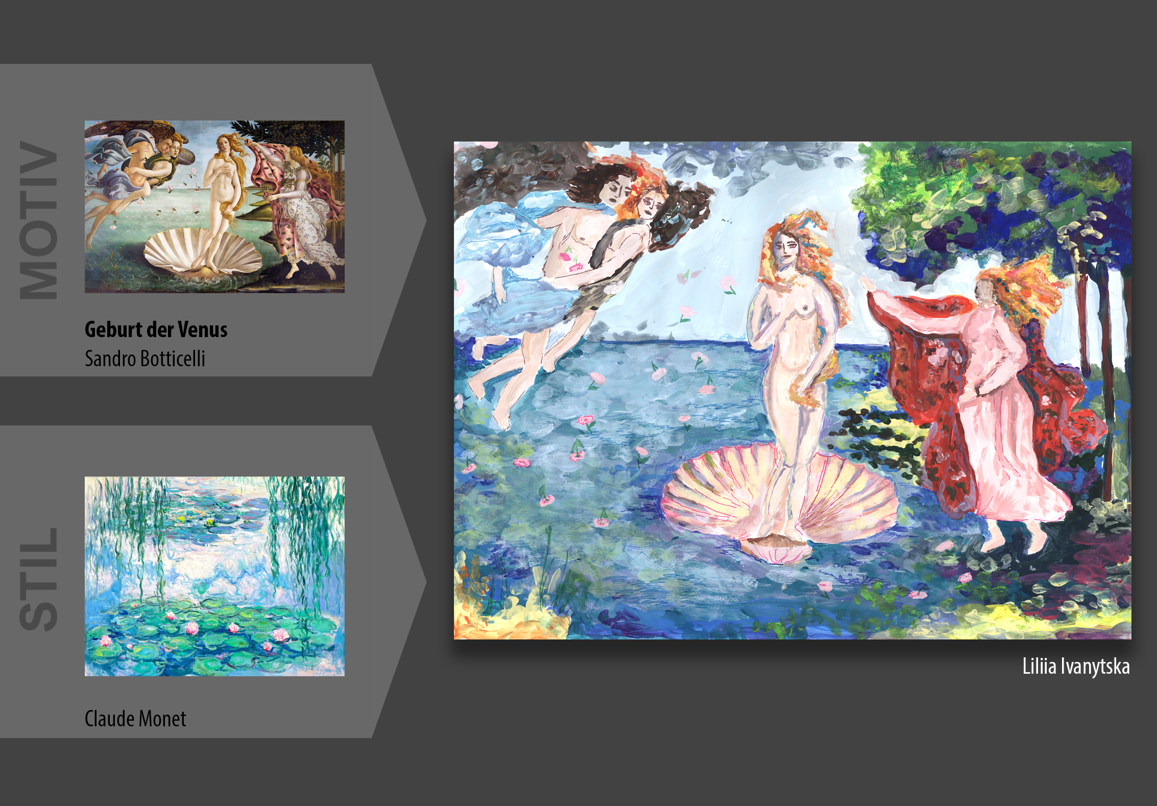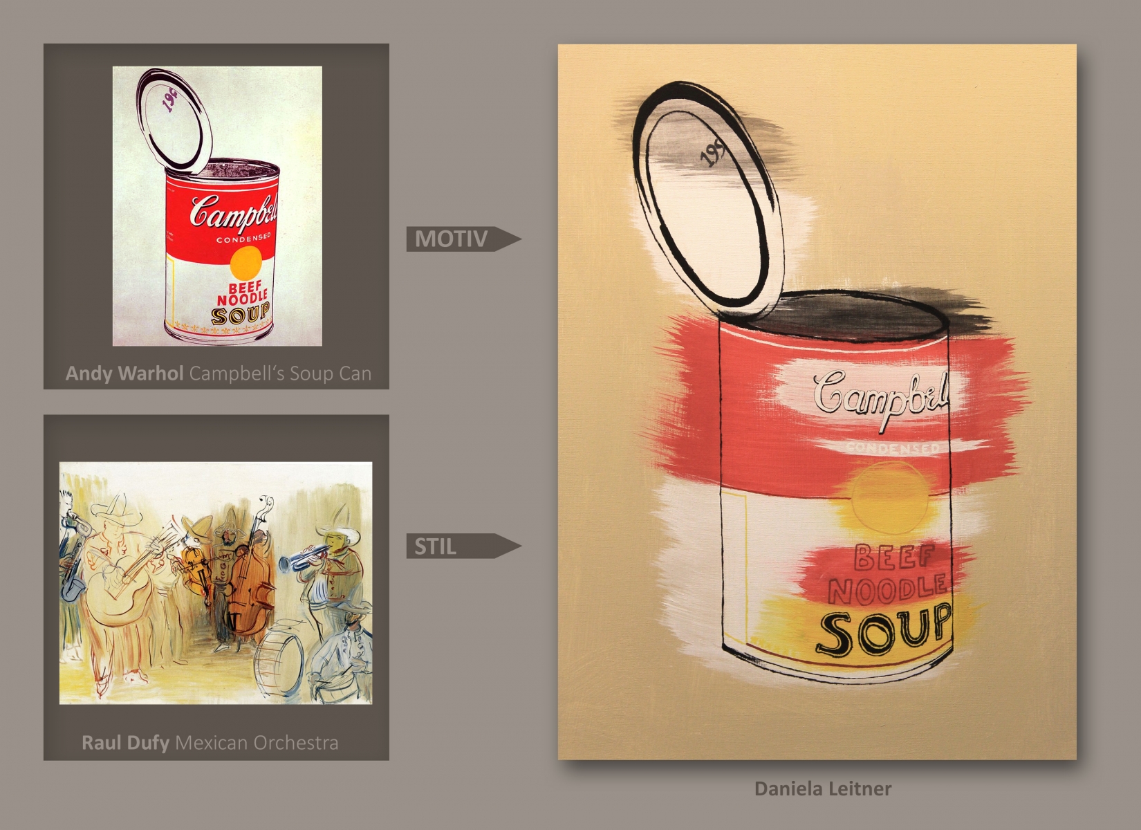 Mit Fragen dieser Art haben sich die Schülerinnen und Schüler der 7A auseinander gesetzt. Die Aufgabe bestand darin, ein bekanntes Werk aus der Kunstgeschichte zu wählen und das gleiche Motiv im Stil eines Künstlers einer anderen Stilepoche umzusetzen. Ein spannendes Experiment mit oft überraschendem Ausgang.