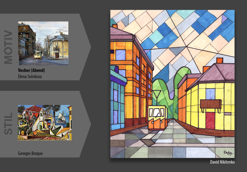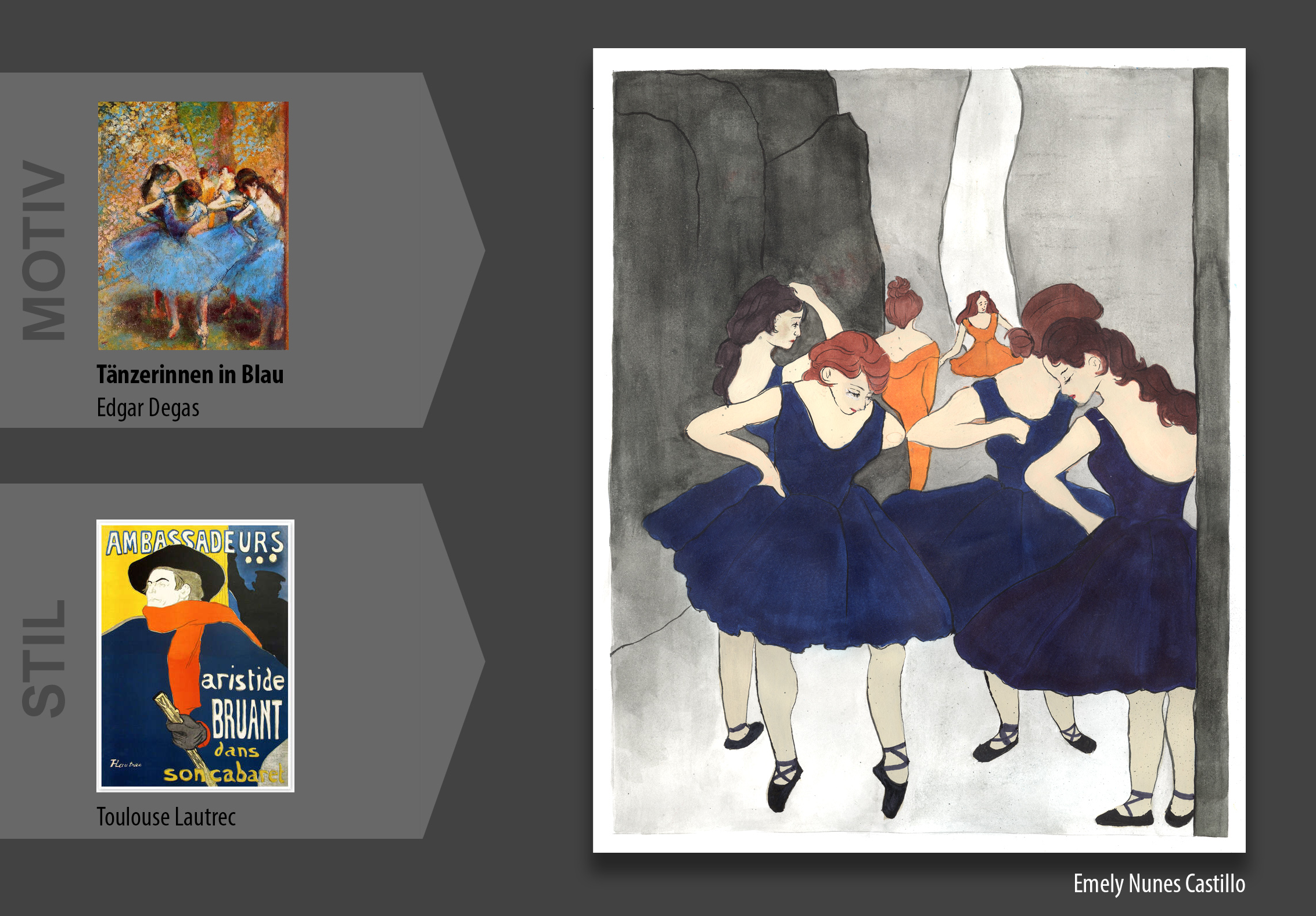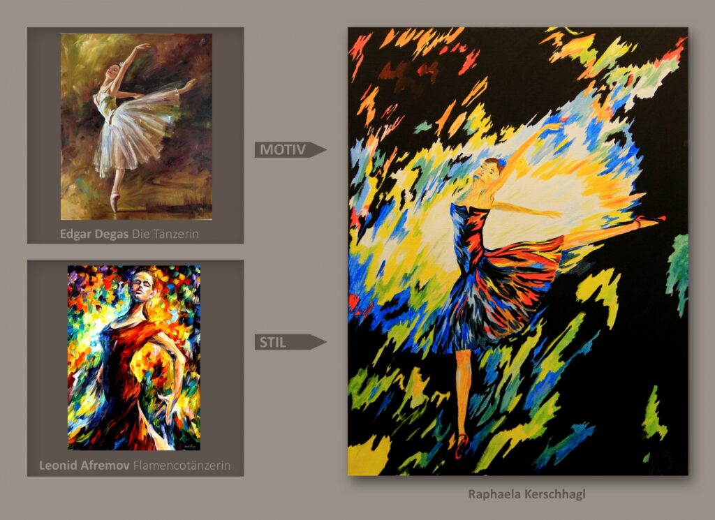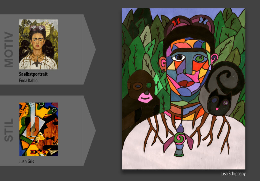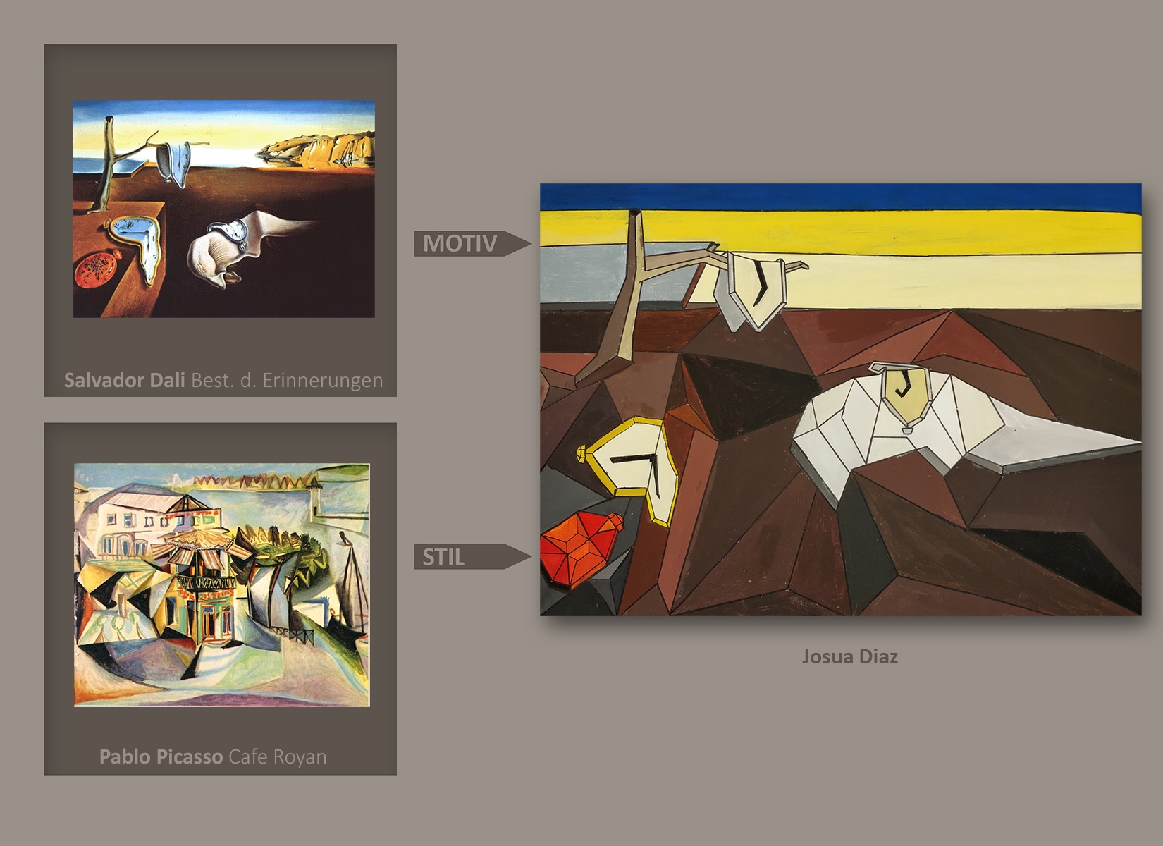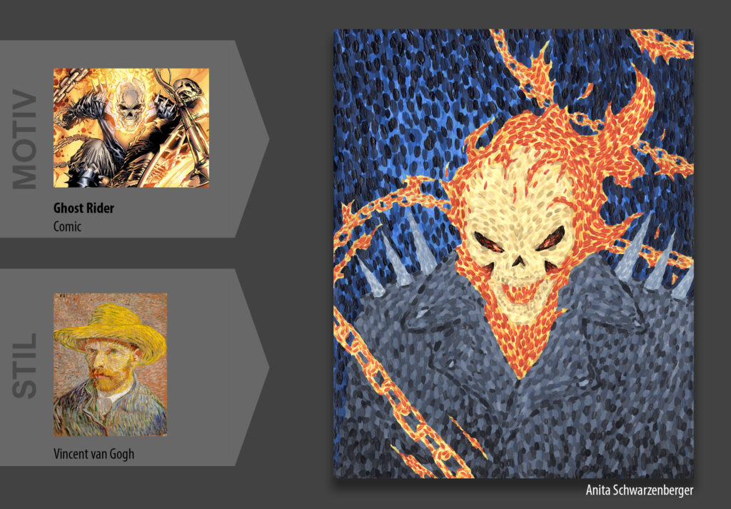 Mit Fragen dieser Art haben sich die Schülerinnen und Schüler der 7A auseinander gesetzt. Die Aufgabe bestand darin, ein bekanntes Werk aus der Kunstgeschichte zu wählen und das gleiche Motiv im Stil eines Künstlers einer anderen Stilepoche umzusetzen. Ein spannendes Experiment mit oft überraschendem Ausgang.